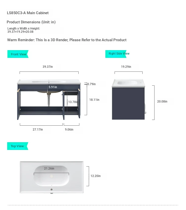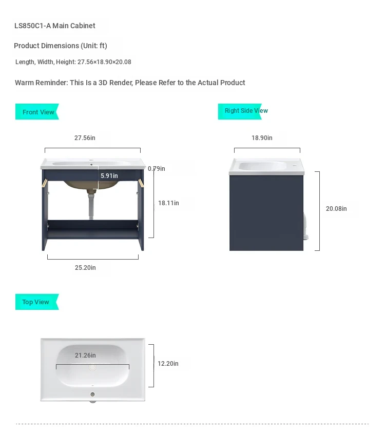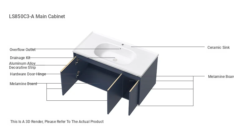 [Blue] LS850C1-A Main Cabinet + LS850C1-A Mirror Cabinet with Light + LS659C10-A Bathroom Cabinet Neutral Water Sink 01 [Express + Installation]]