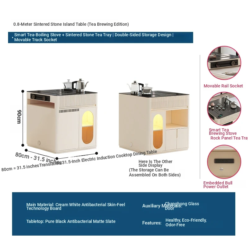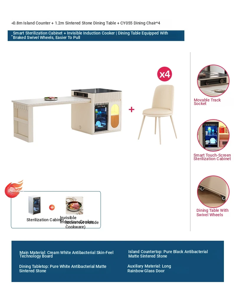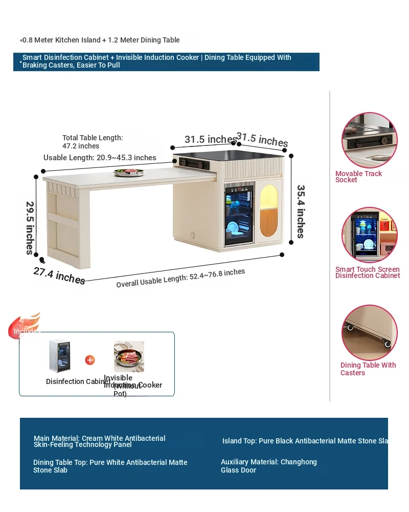[Intelligent Disinfection Cabinet + Induction cooker] 31.50 in Island Table +47.24 in Rock Plate Dining Table