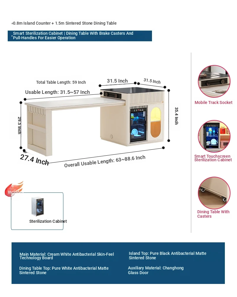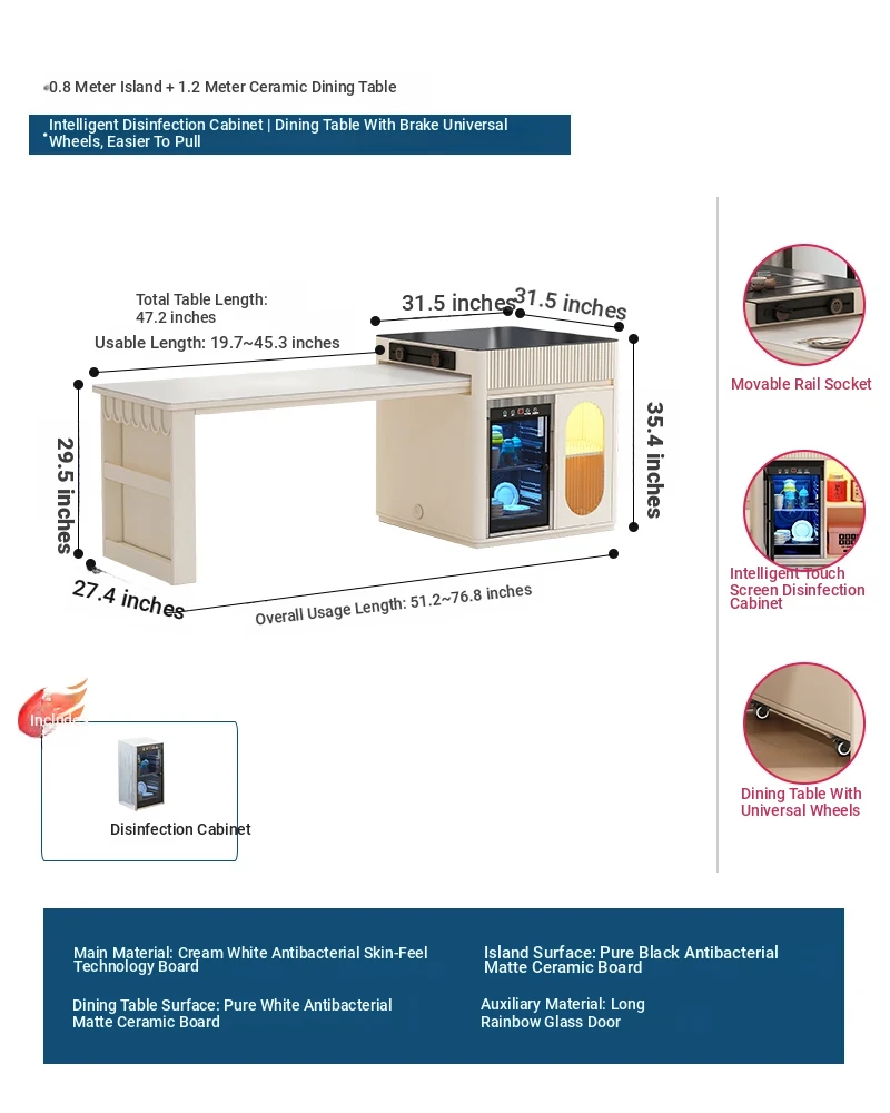 [Intelligent Disinfection Cabinet] 31.50 in Island Table +59.06 in Rock Plate Dining Table