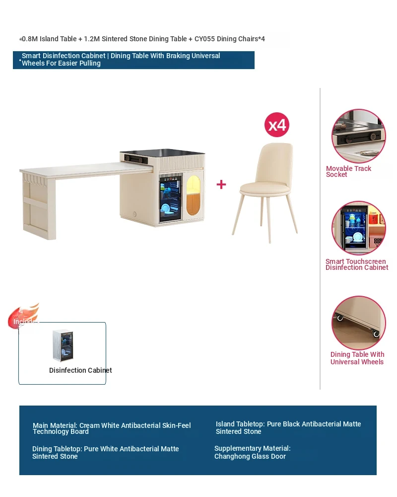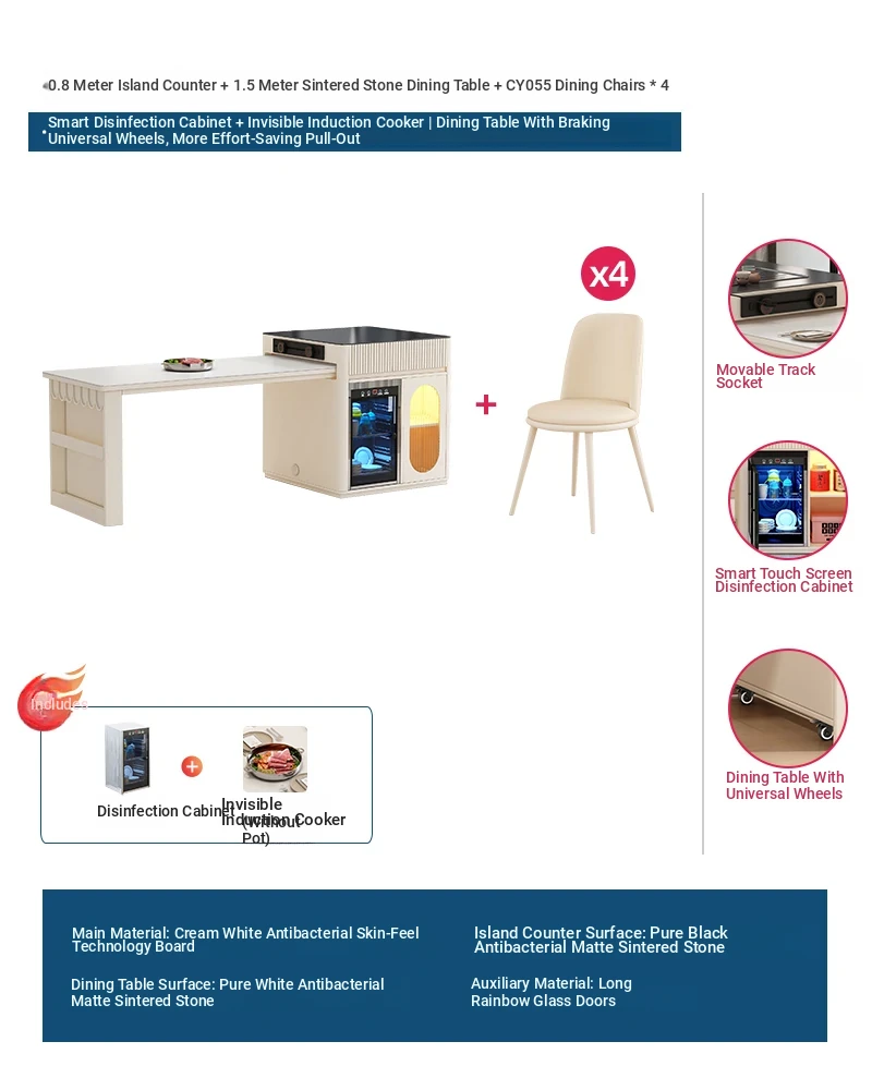 [1 table and 4 chairs, intelligent disinfection cabinet + Induction cooker model] 31.50 in island table +59.06 in rock table + CY055 dining chair * 4