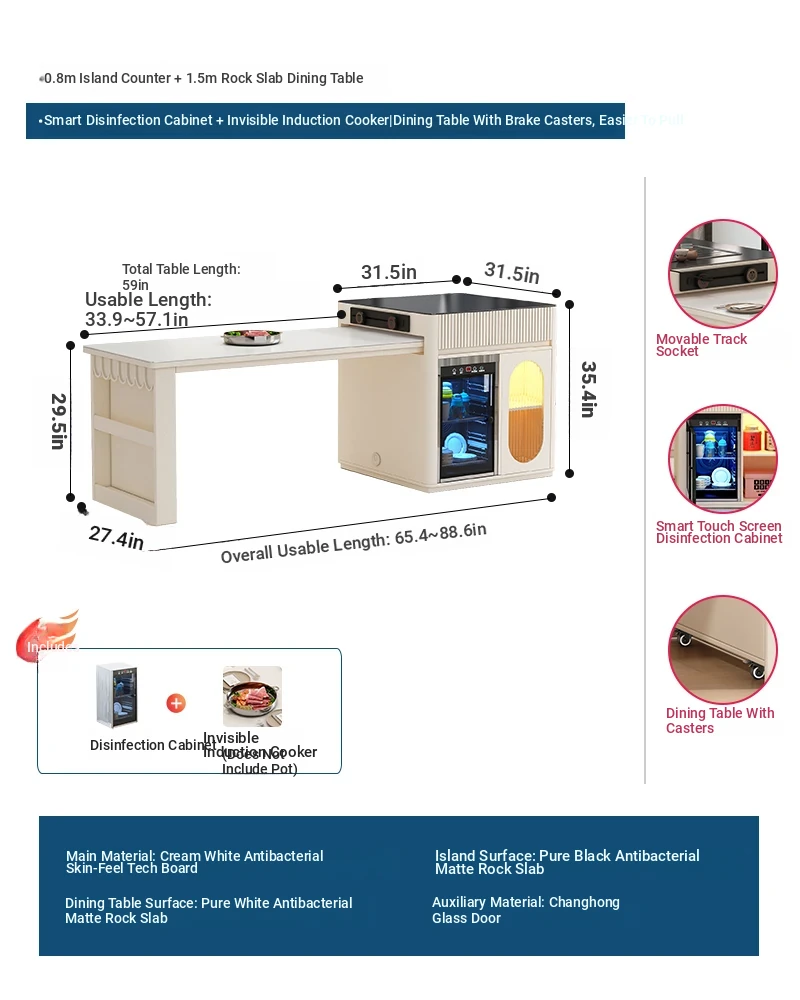 [Intelligent Disinfection Cabinet + Induction cooker] 31.50 in Island Table +59.06 in Rock Plate Dining Table