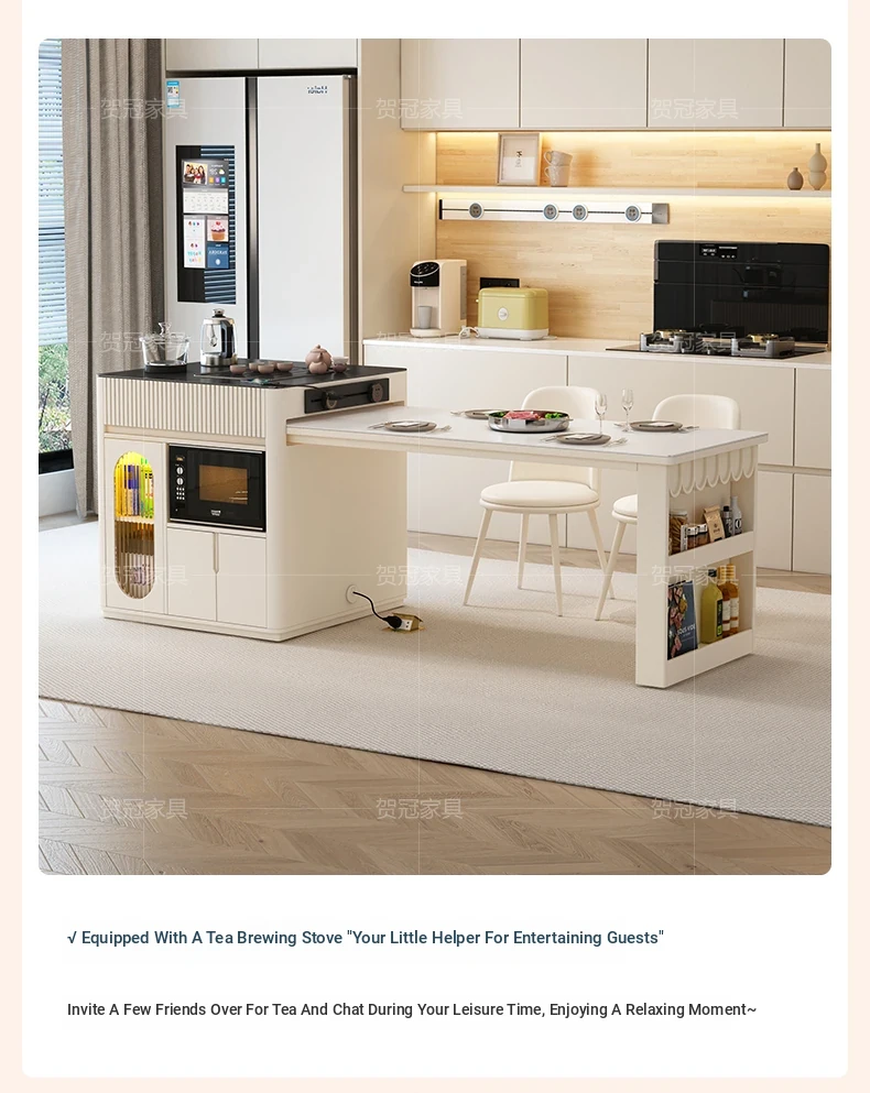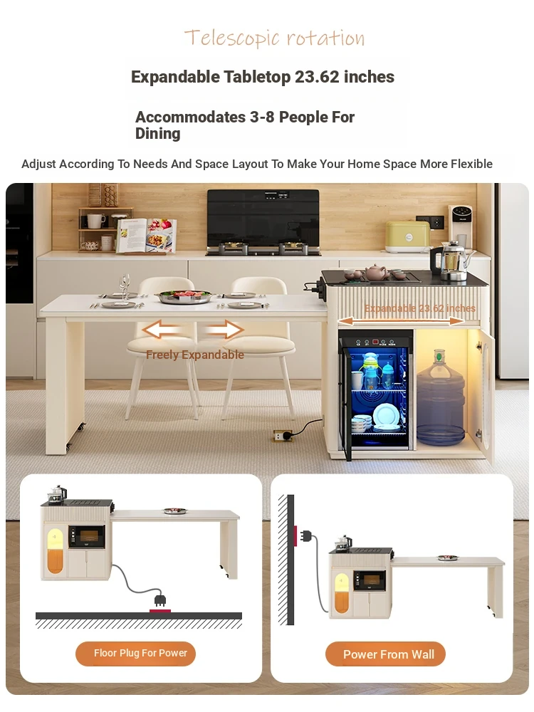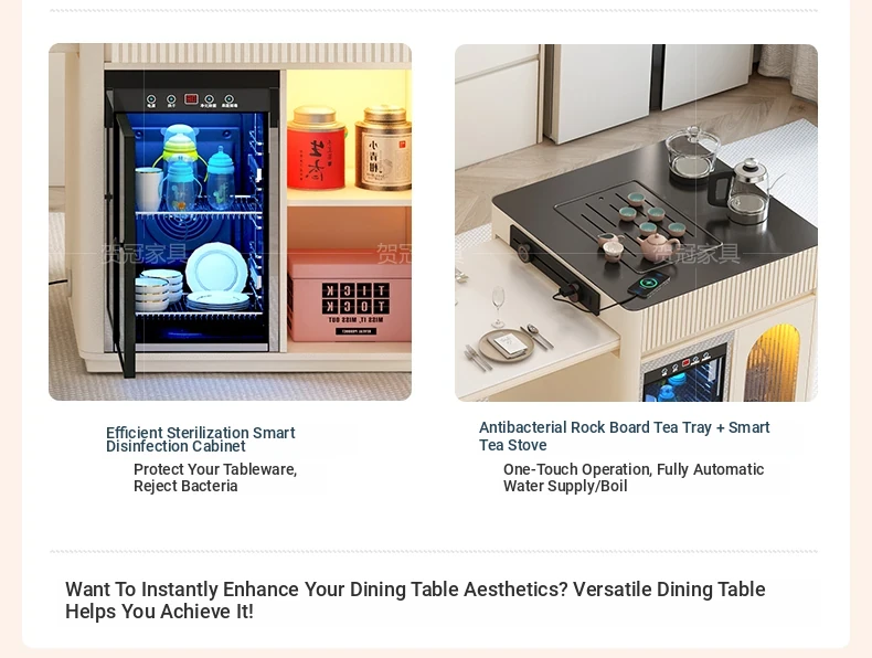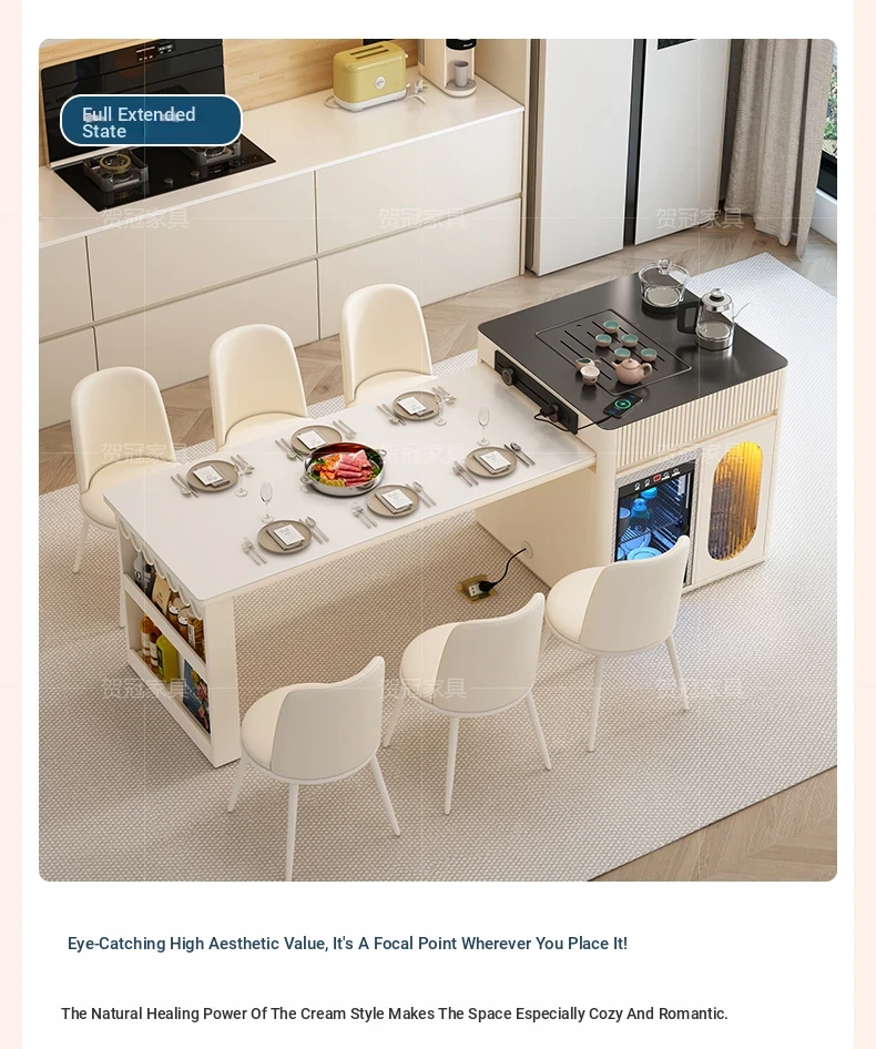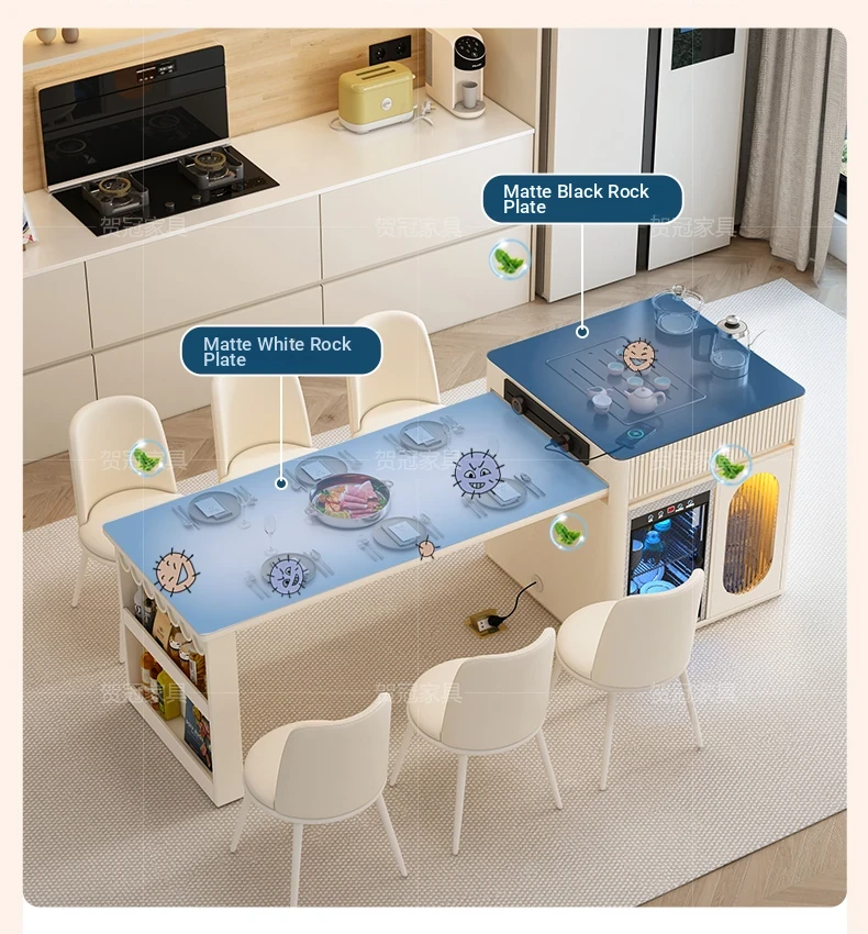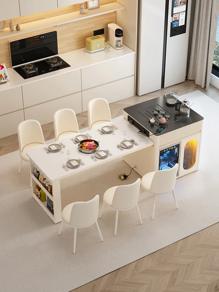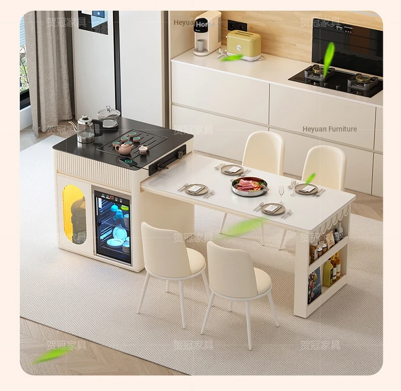 Luxurious Multi-Function Dining and Tea Table: Extendable Island with Built-in Induction Cooker and Disinfection Cabinet