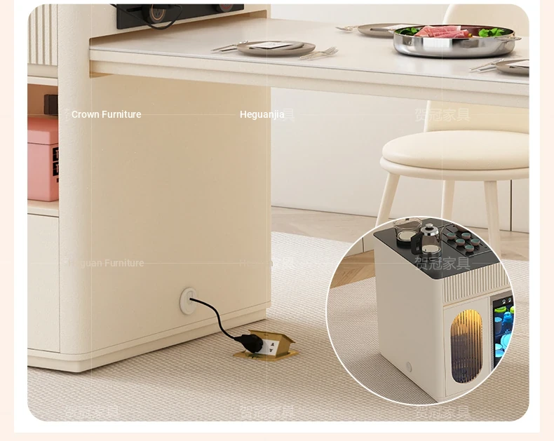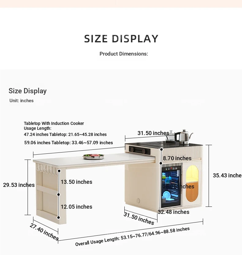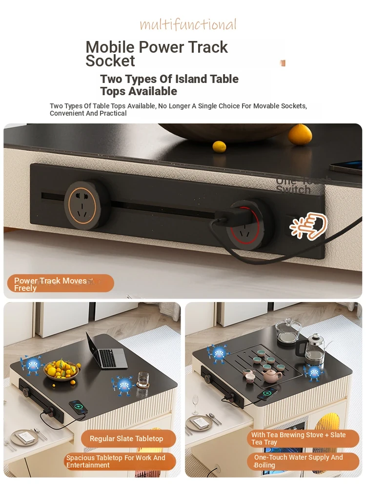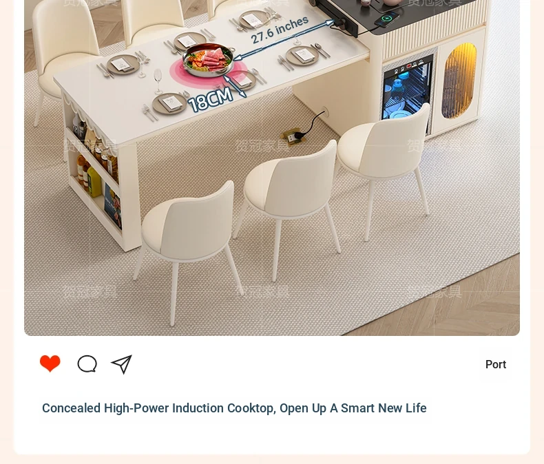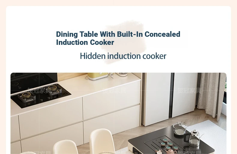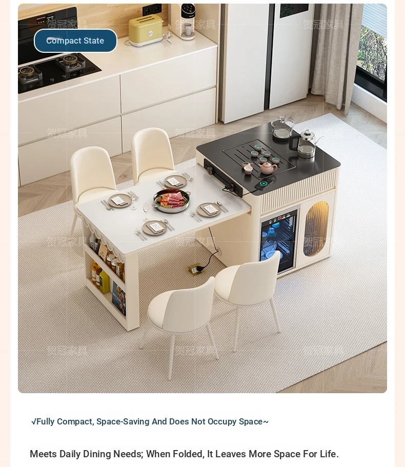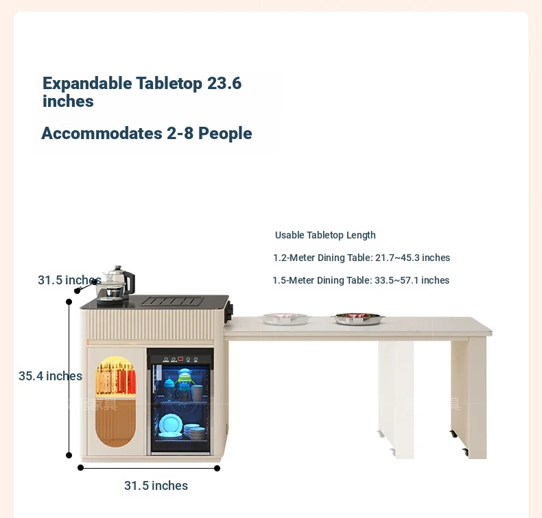 Luxurious Multi-Function Dining and Tea Table: Extendable Island with Built-in Induction Cooker and Disinfection Cabinet