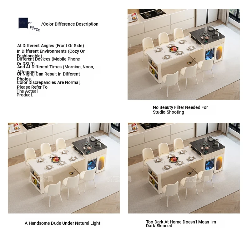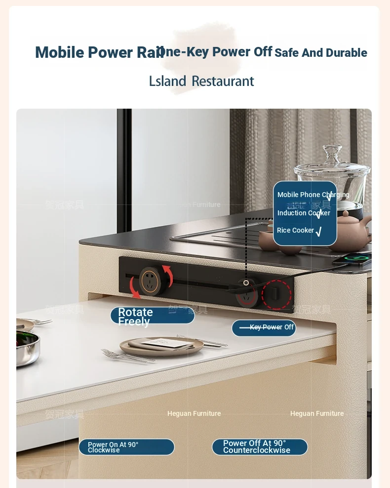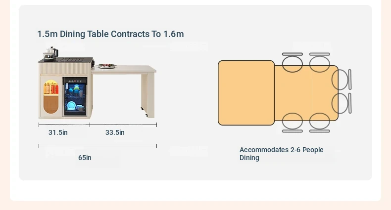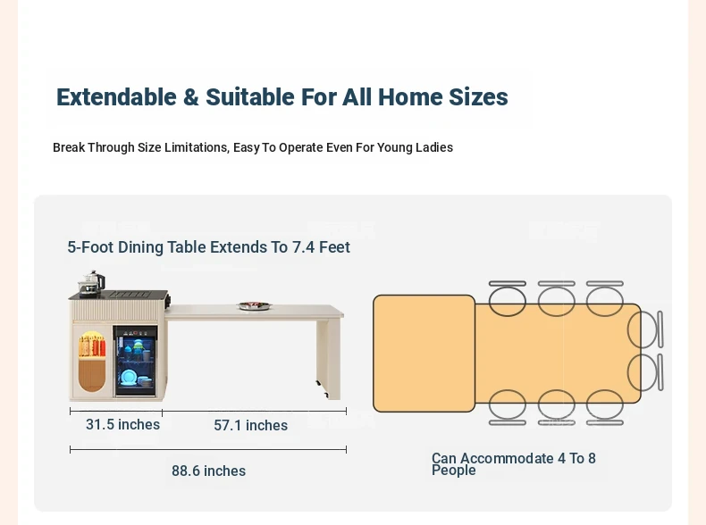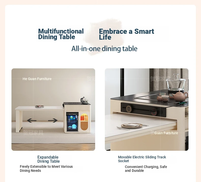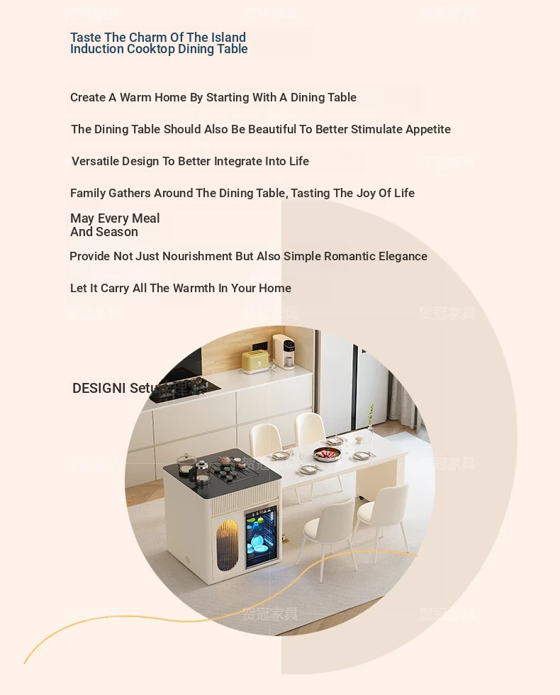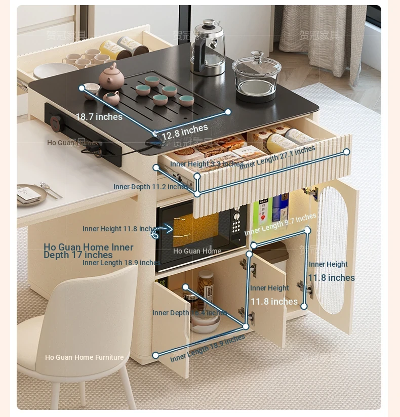 Luxurious Multi-Function Dining and Tea Table: Extendable Island with Built-in Induction Cooker and Disinfection Cabinet