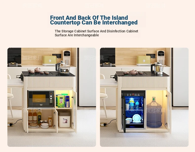 [Intelligent Disinfection Cabinet, Microwave Oven] 31.50 in Island Table +59.06 in Rock Plate Table