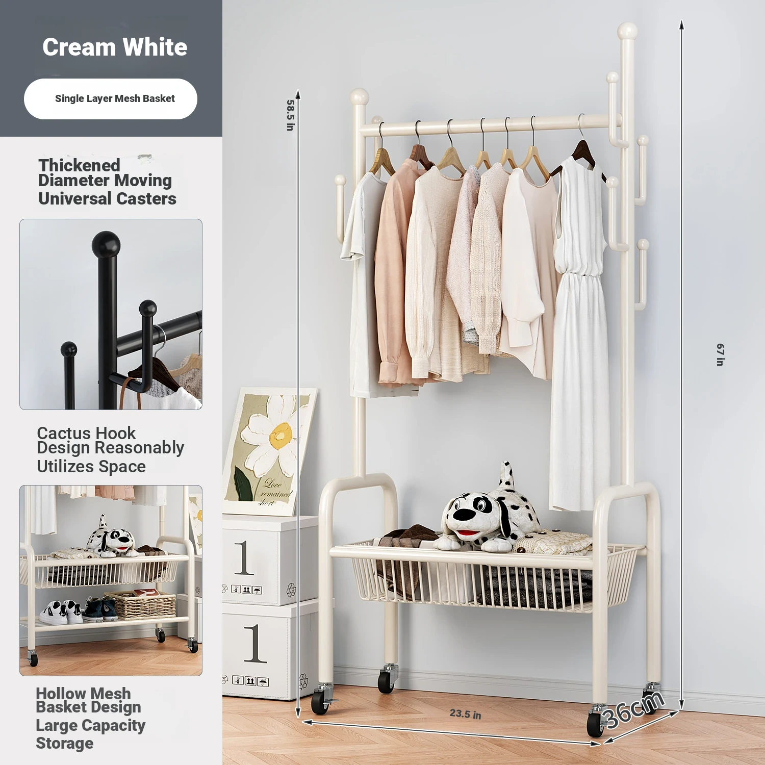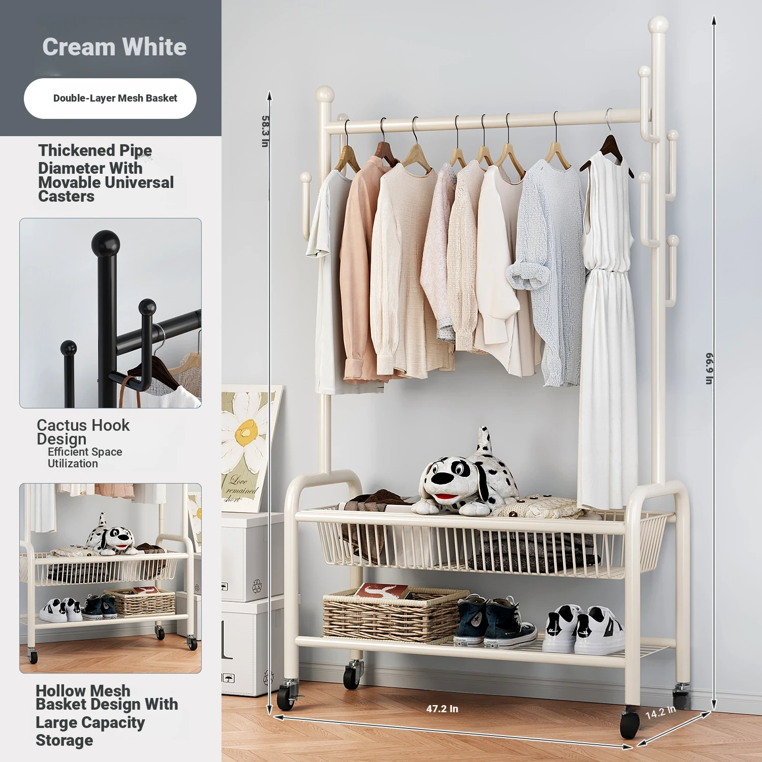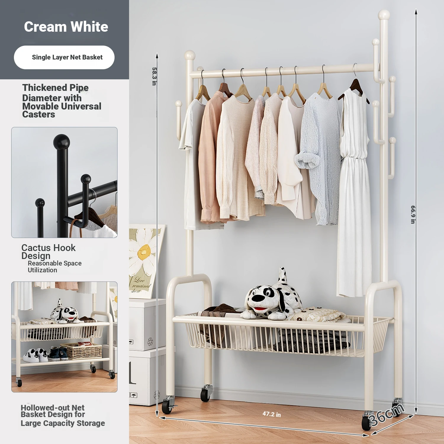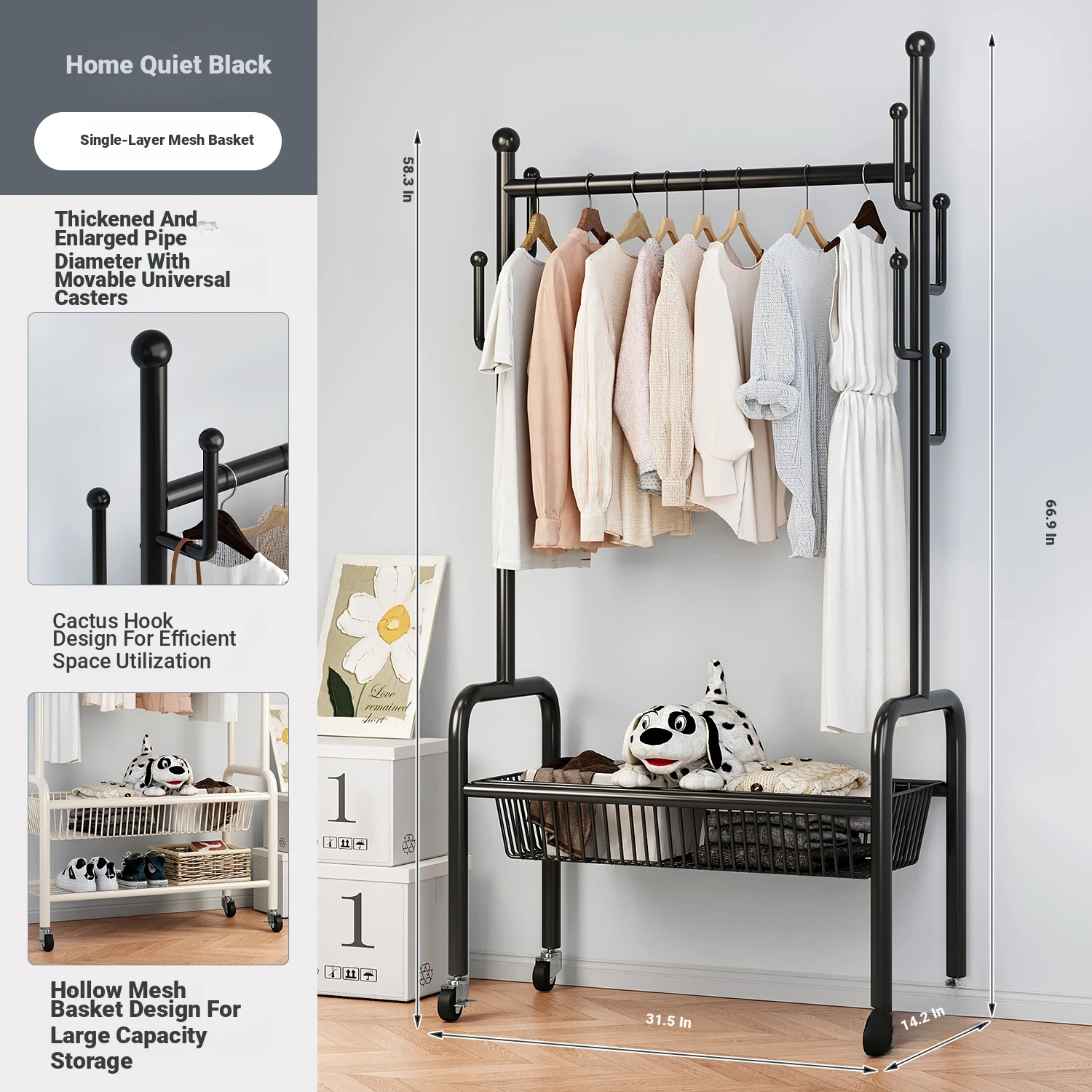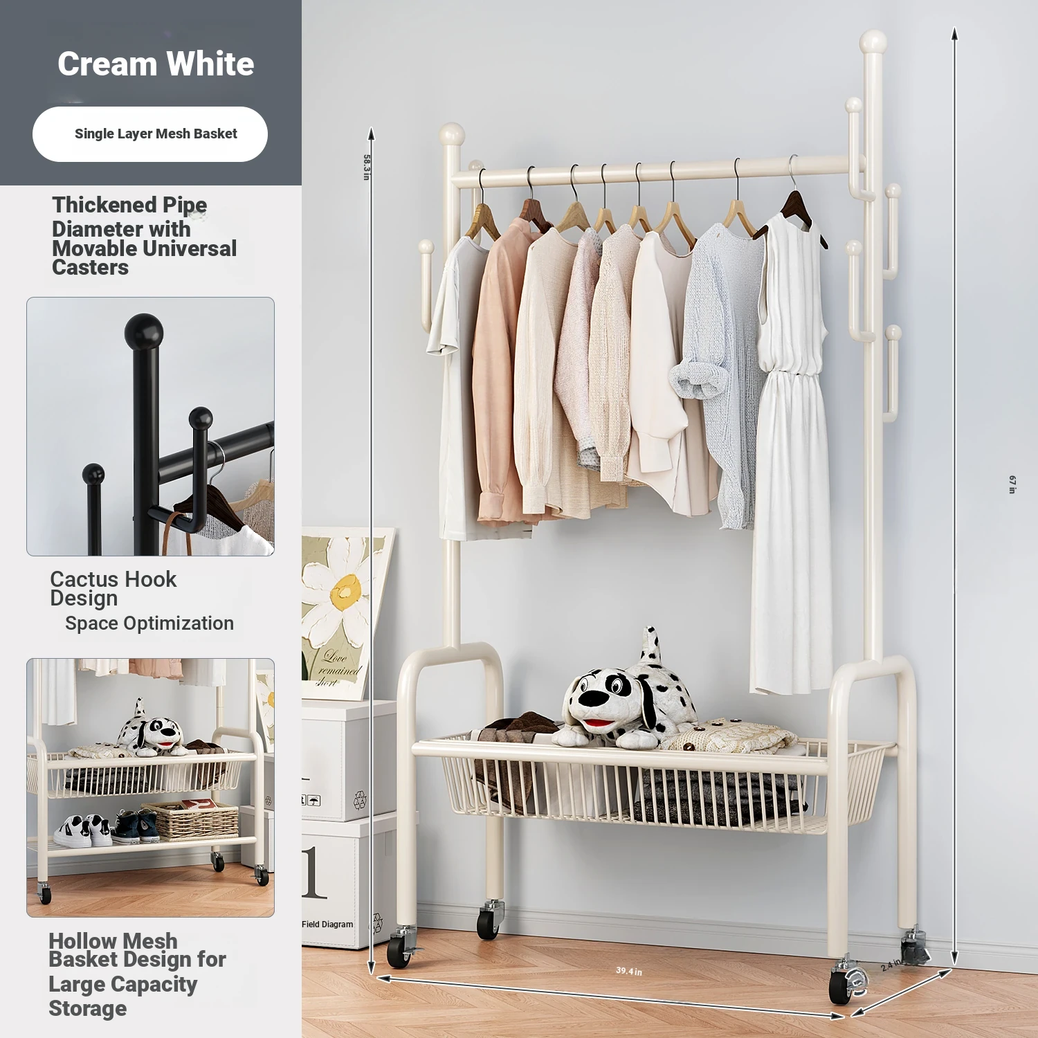 Portable Garment Rack - Easy-to-Move Floor Stand Clothes Hanger for Home, Dorm, Balcony, and Bedroom - Ideal for Drying Clothes and Organizing Outfits