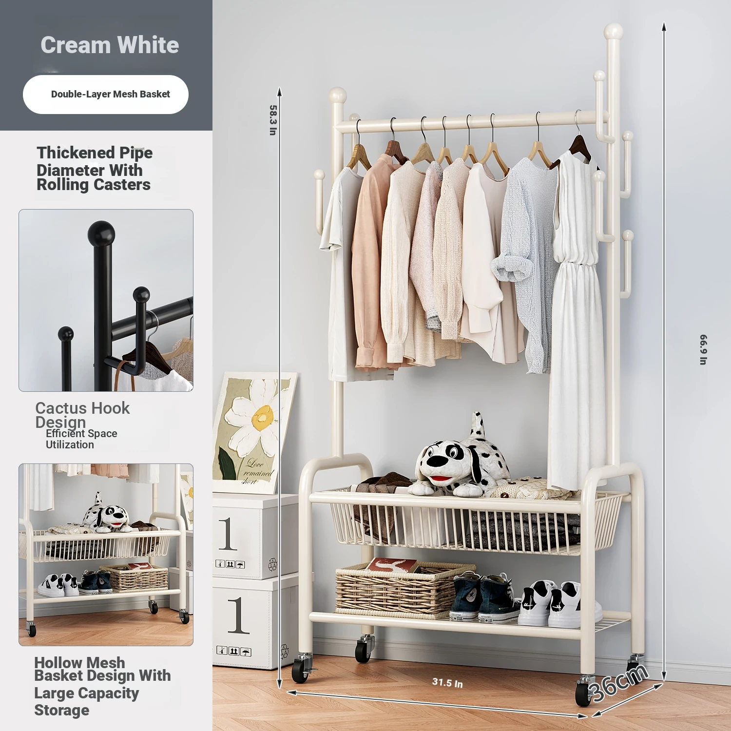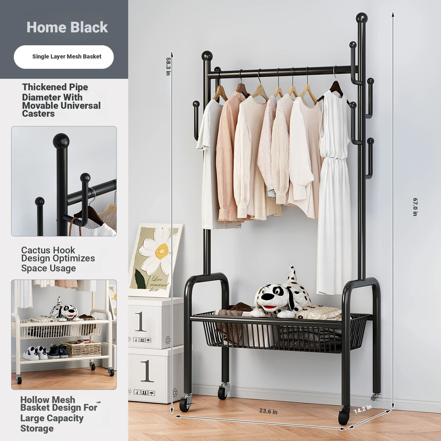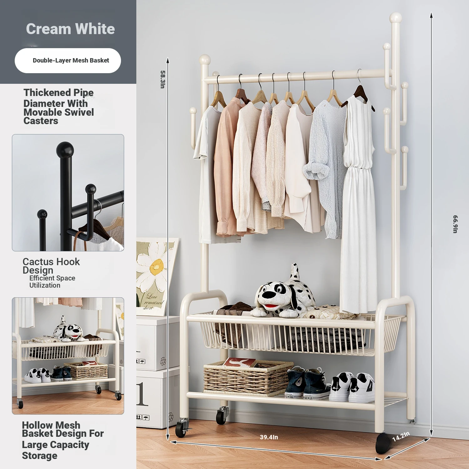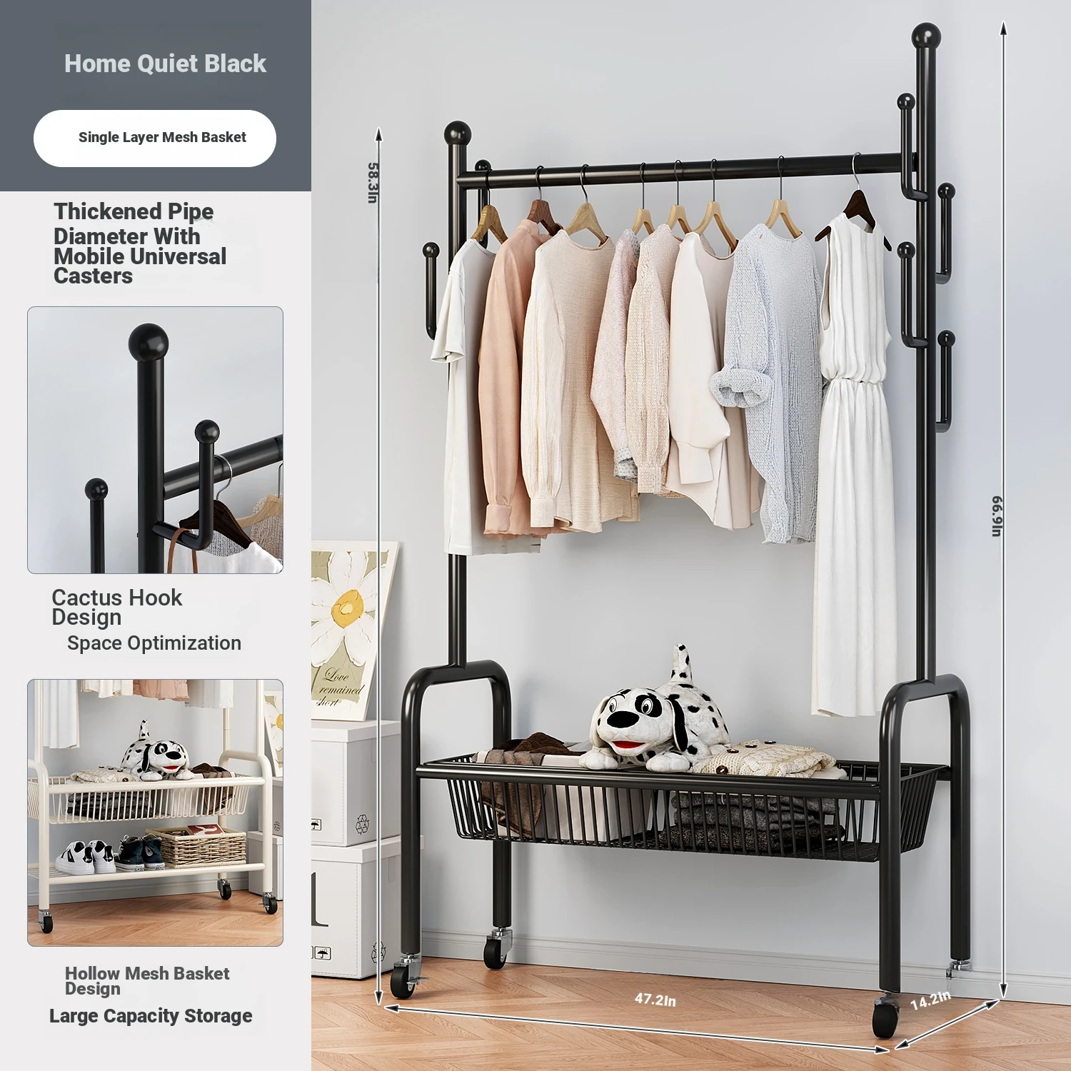 Portable Garment Rack - Easy-to-Move Floor Stand Clothes Hanger for Home, Dorm, Balcony, and Bedroom - Ideal for Drying Clothes and Organizing Outfits