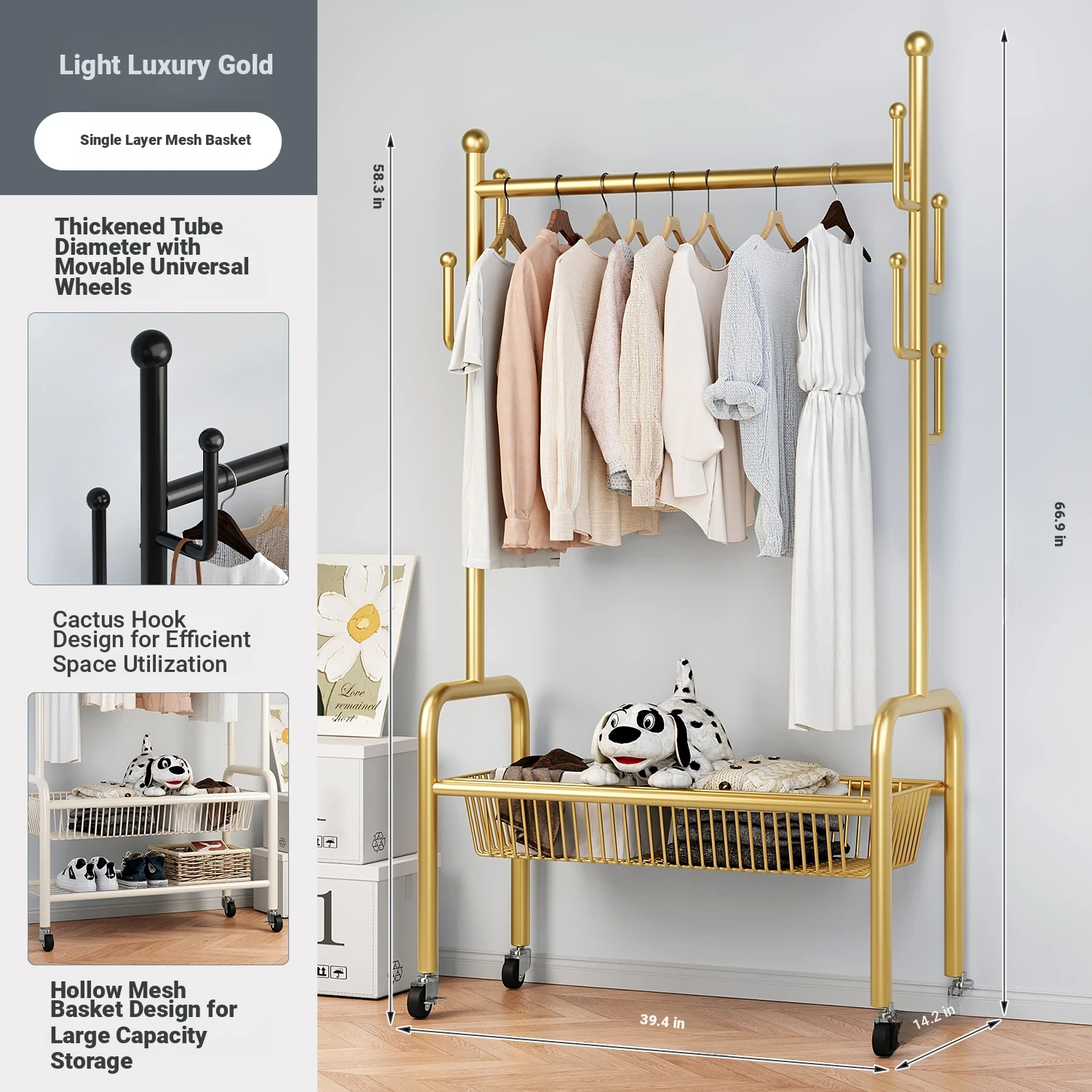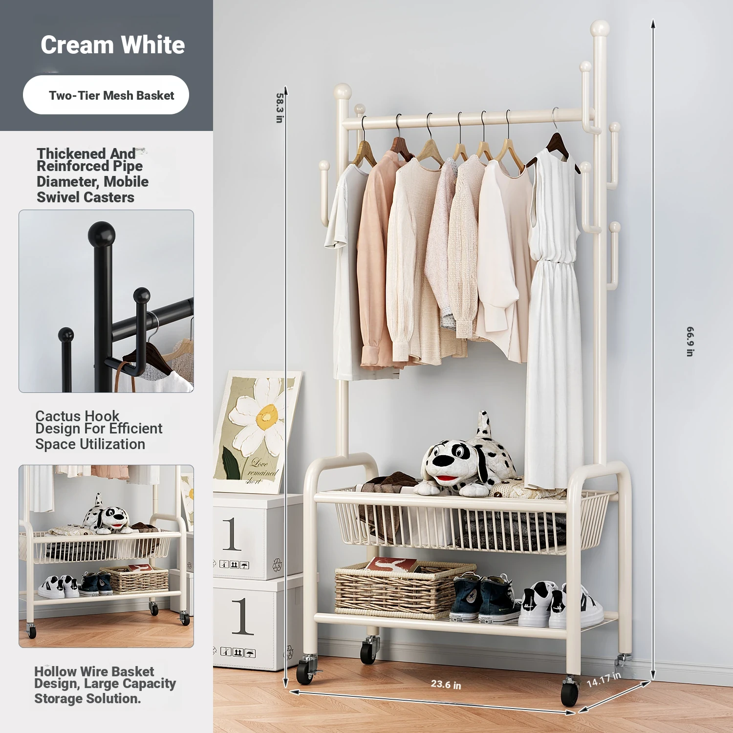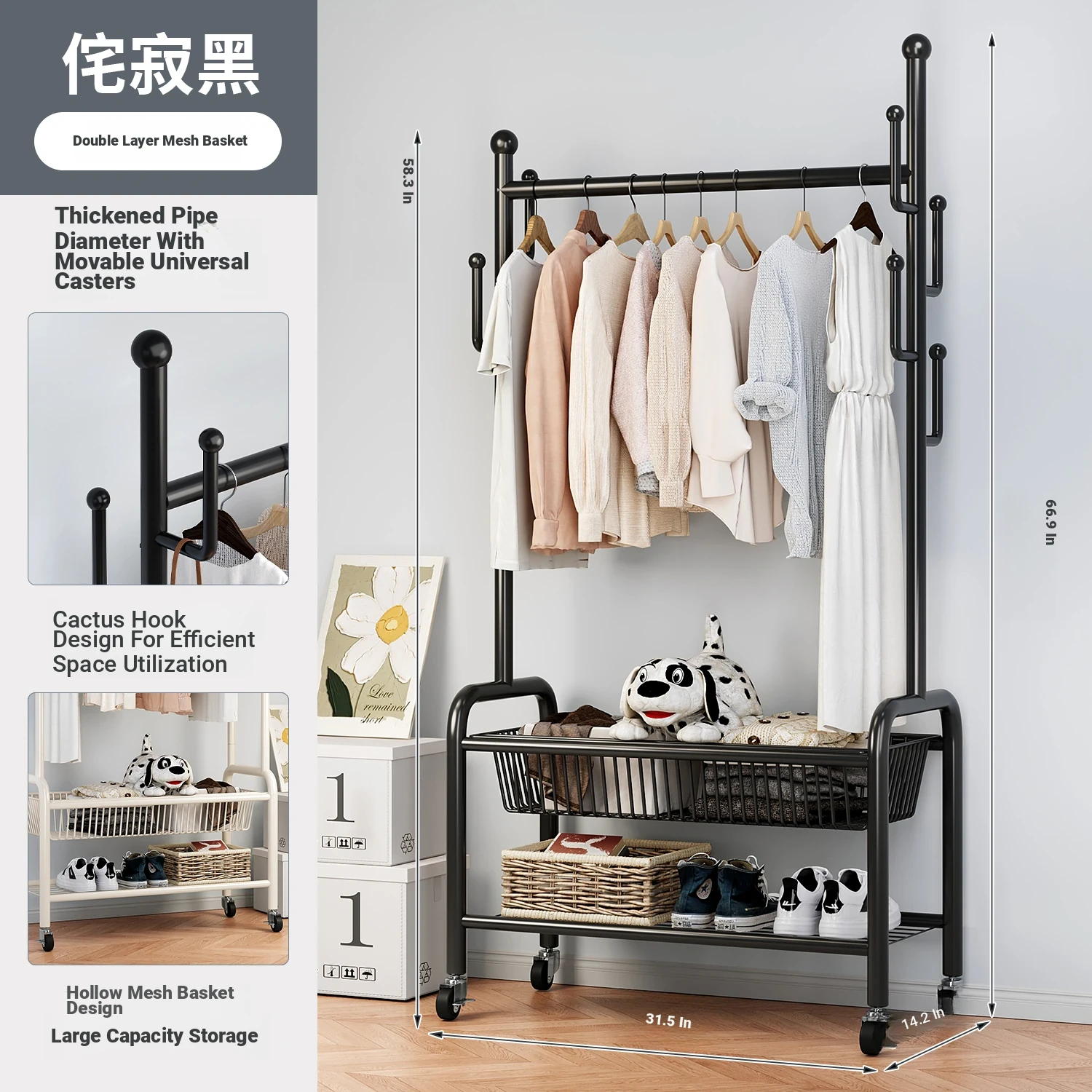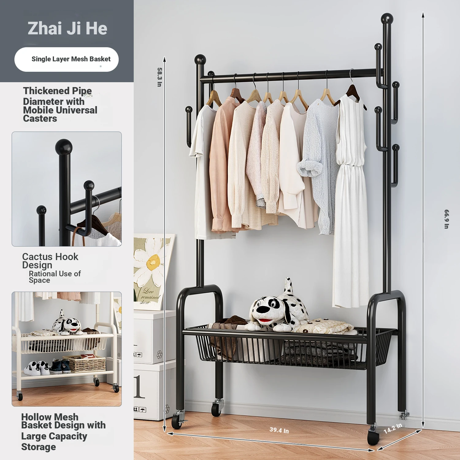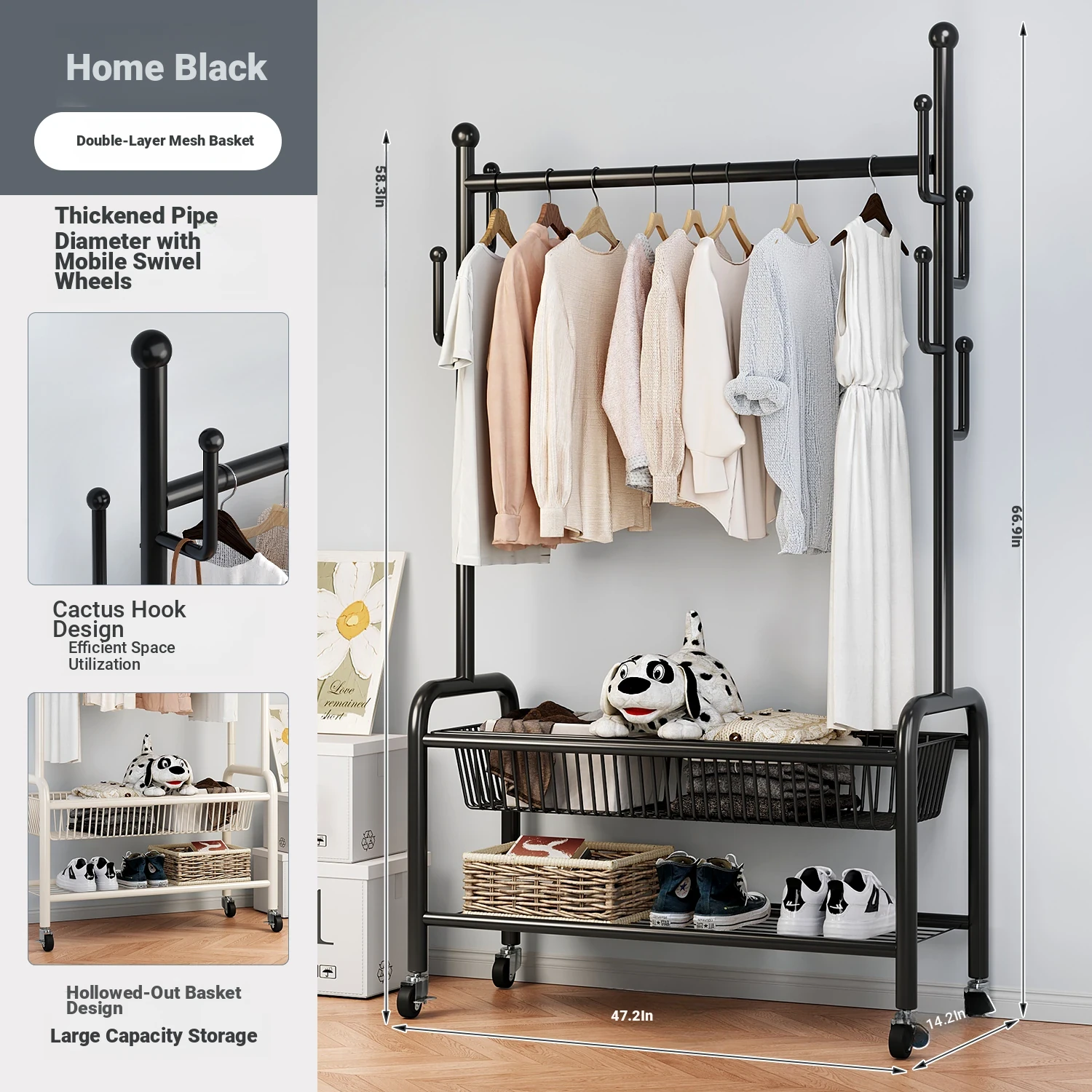 Portable Garment Rack - Easy-to-Move Floor Stand Clothes Hanger for Home, Dorm, Balcony, and Bedroom - Ideal for Drying Clothes and Organizing Outfits