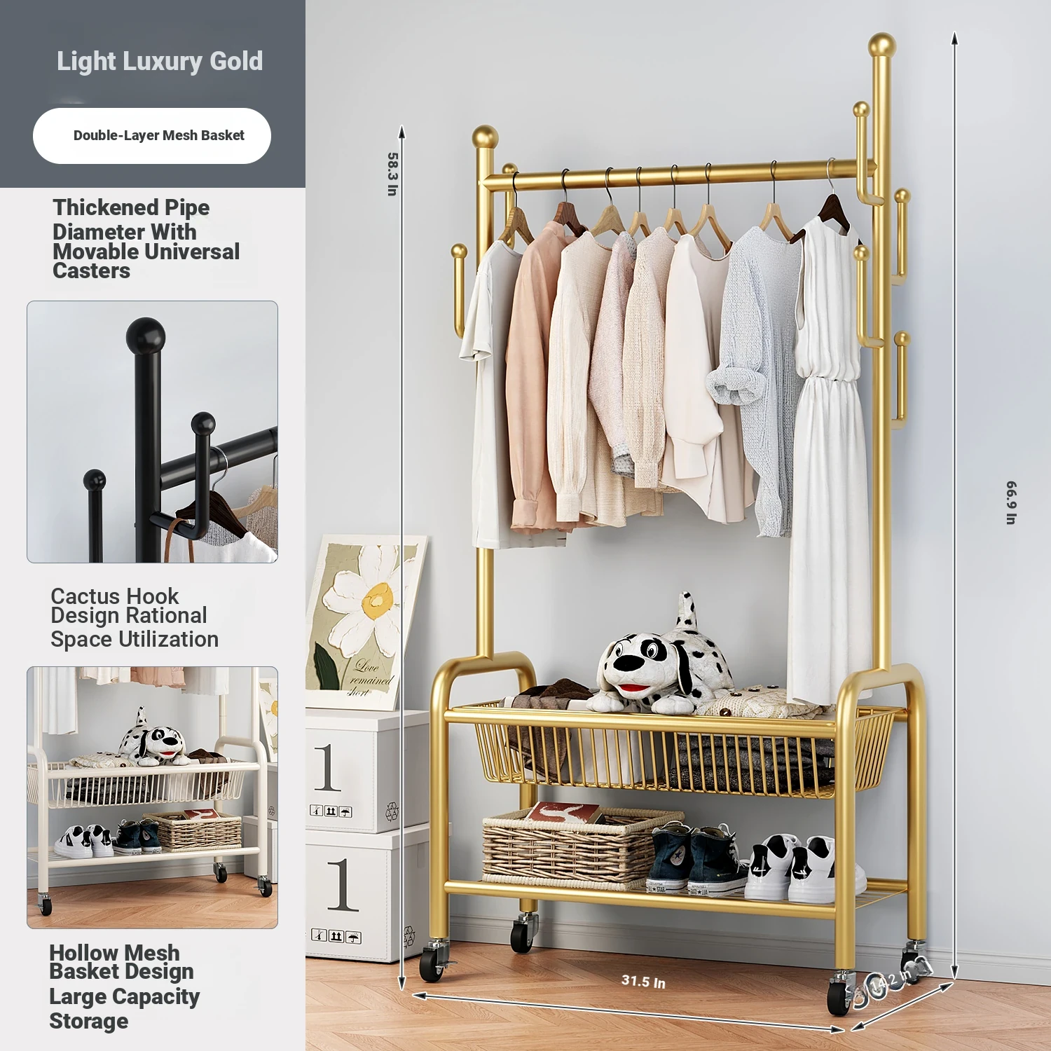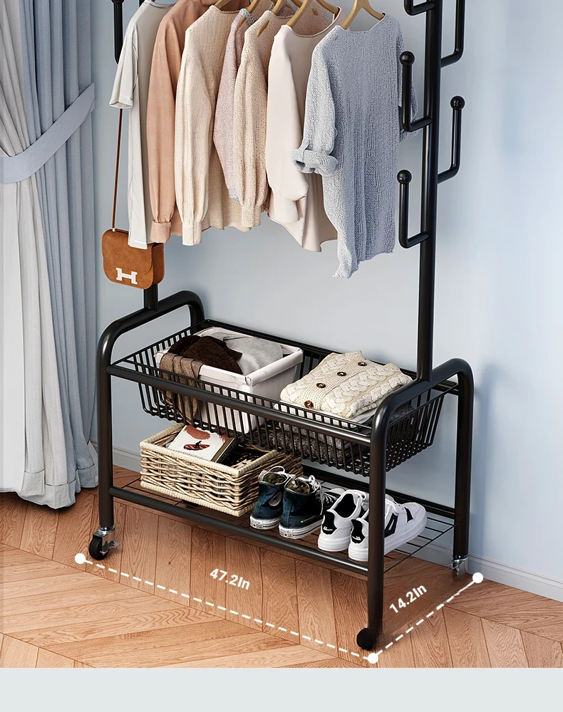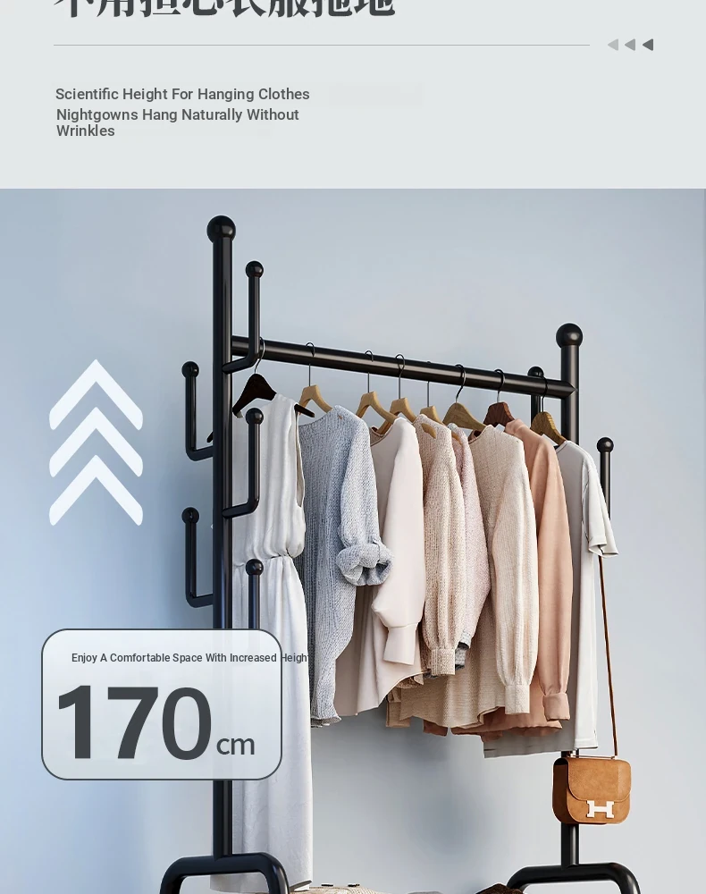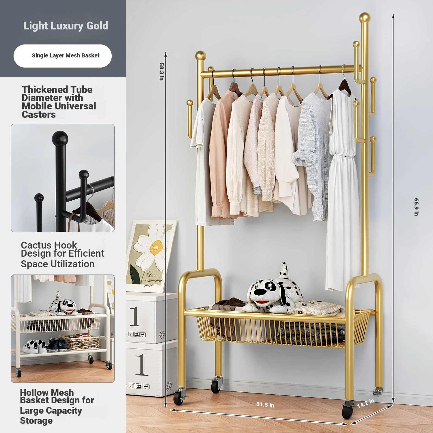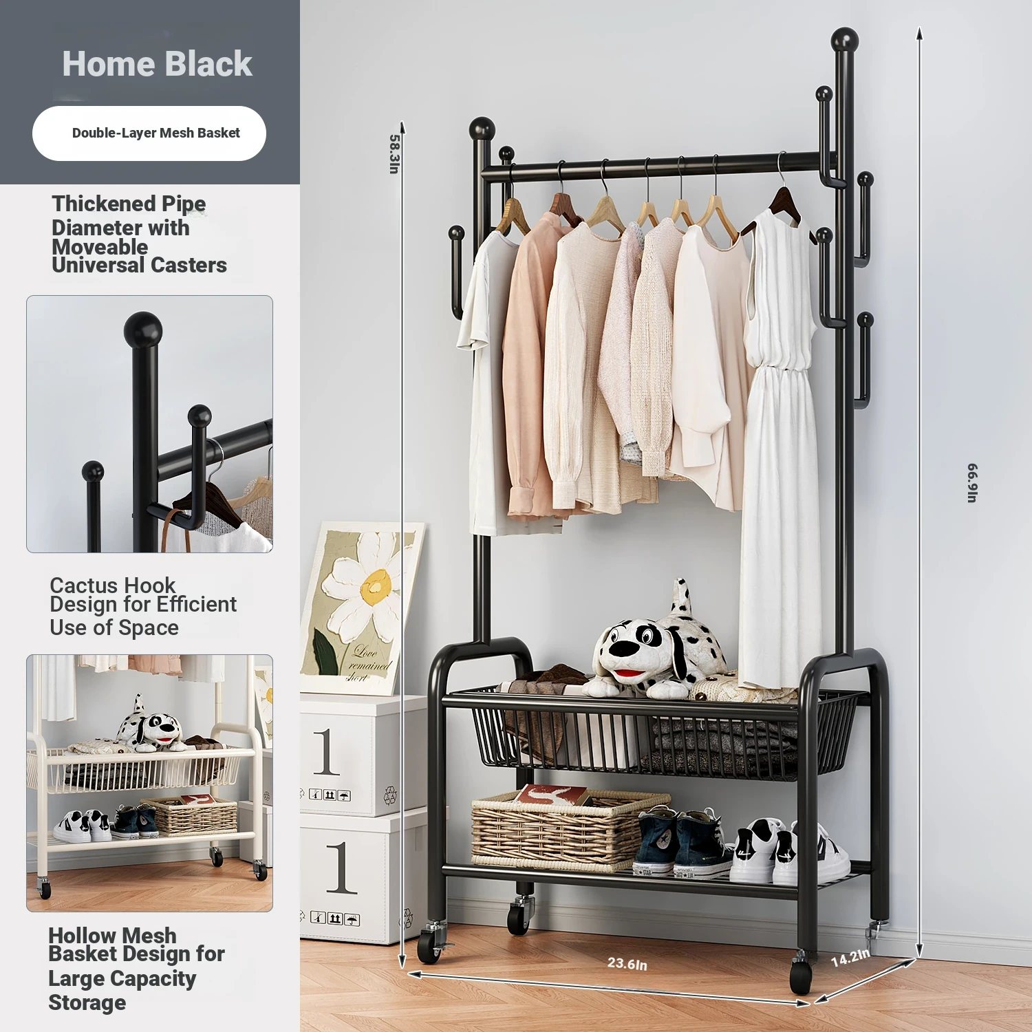 Portable Garment Rack - Easy-to-Move Floor Stand Clothes Hanger for Home, Dorm, Balcony, and Bedroom - Ideal for Drying Clothes and Organizing Outfits