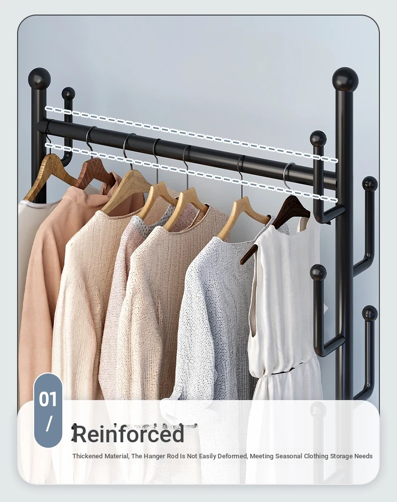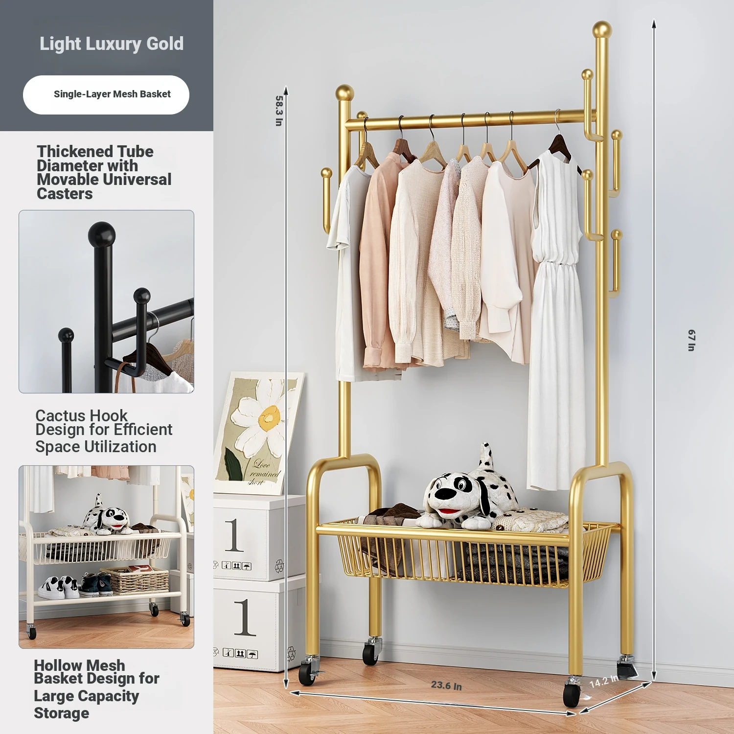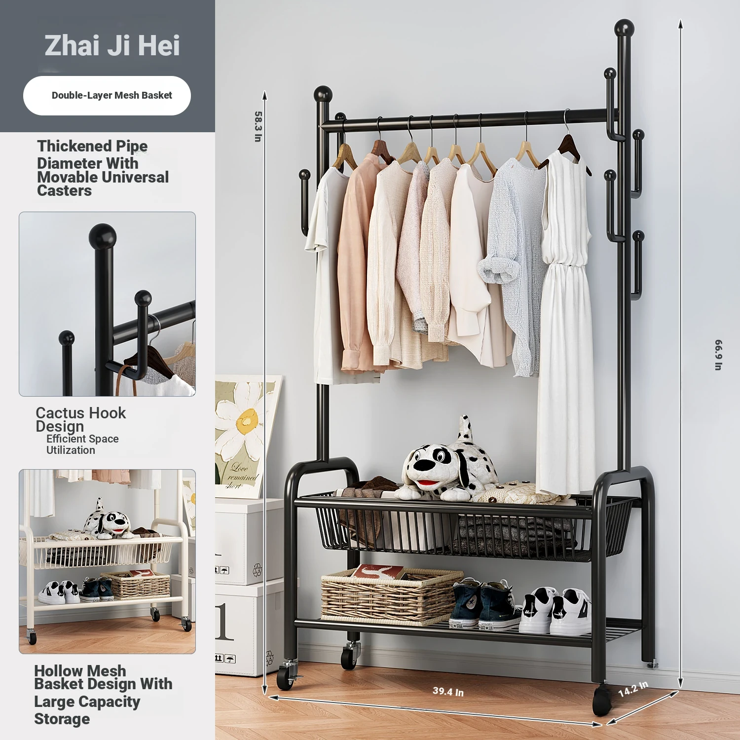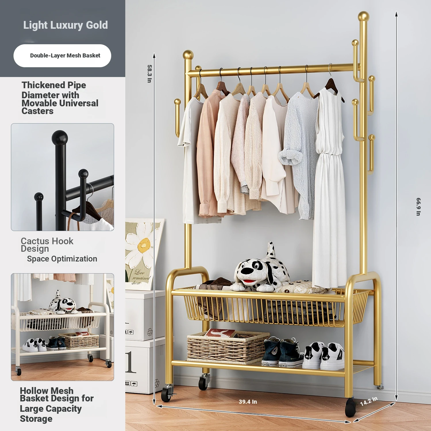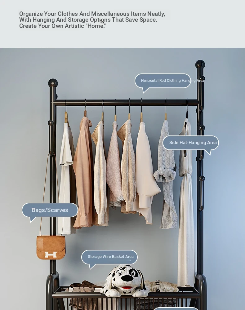 Portable Garment Rack - Easy-to-Move Floor Stand Clothes Hanger for Home, Dorm, Balcony, and Bedroom - Ideal for Drying Clothes and Organizing Outfits