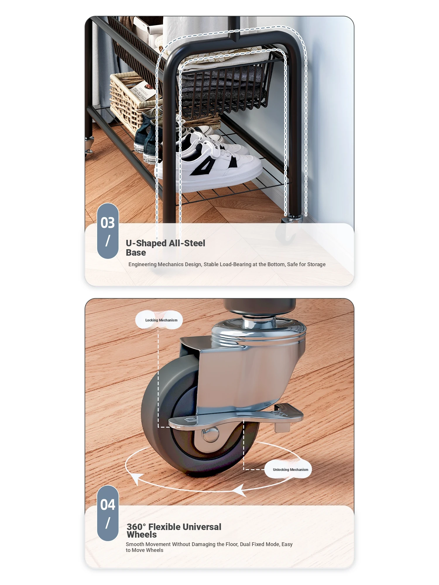 31.50in-quiet black ☆ Double-layer storage basket-send metal universal wheel