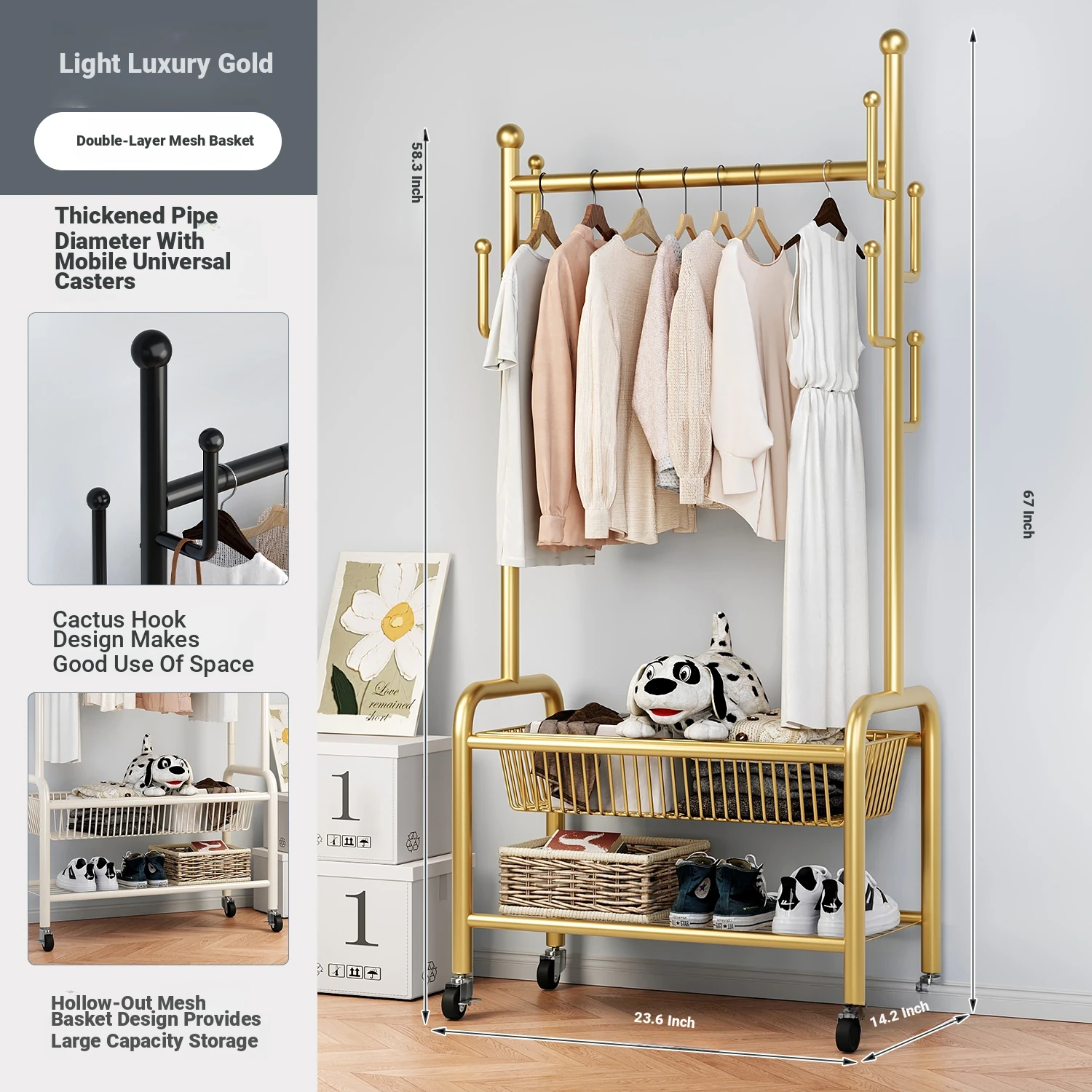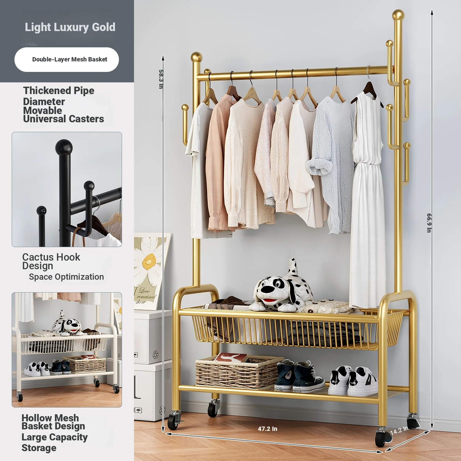 47.24in-Accessible Luxury gold ☆ Double-layer storage basket-send metal universal wheel