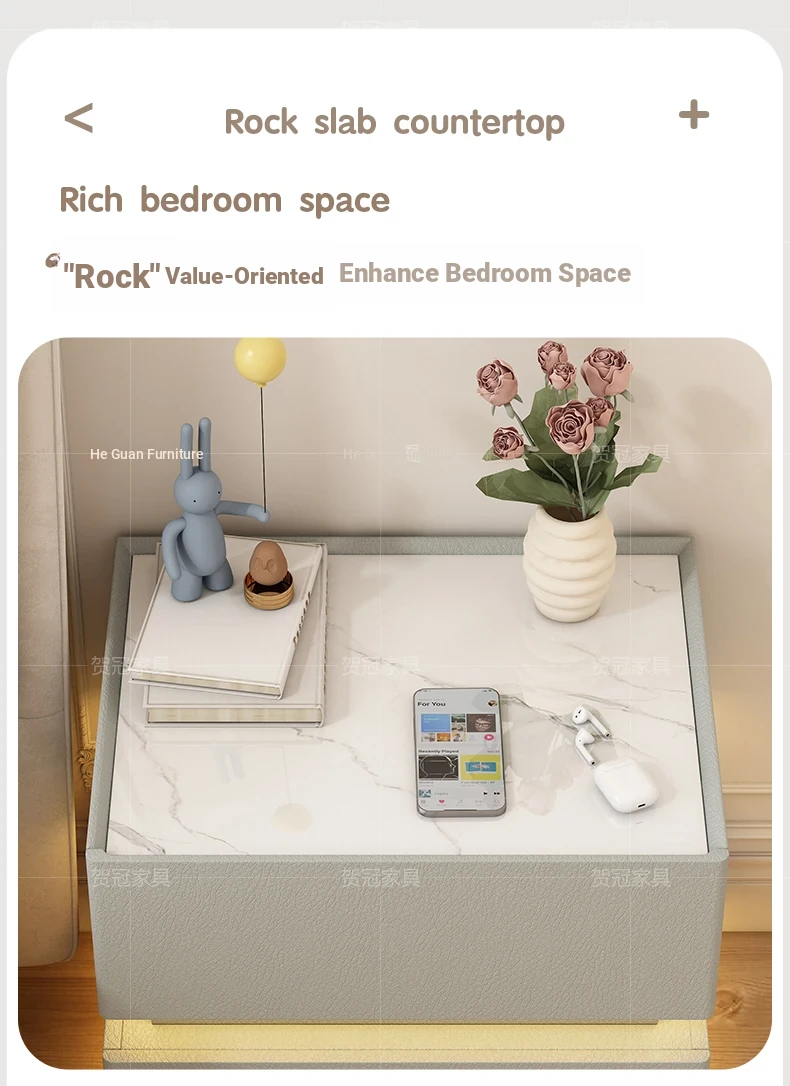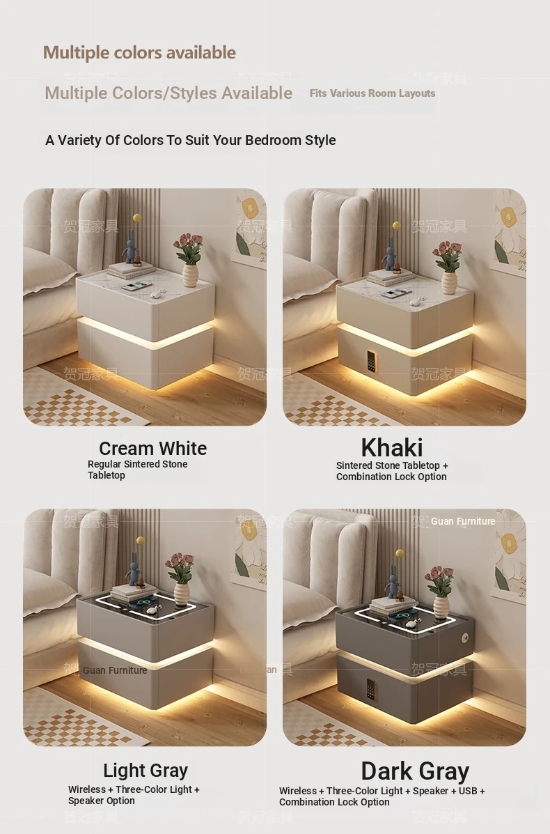 Sleek Wall-Mounted Nightstand for Bedroom - Cream White Floating Corner Cabinet with Durable Stone Top and Secure Lock for Master Suite