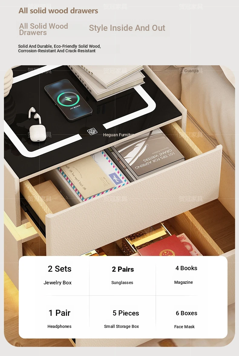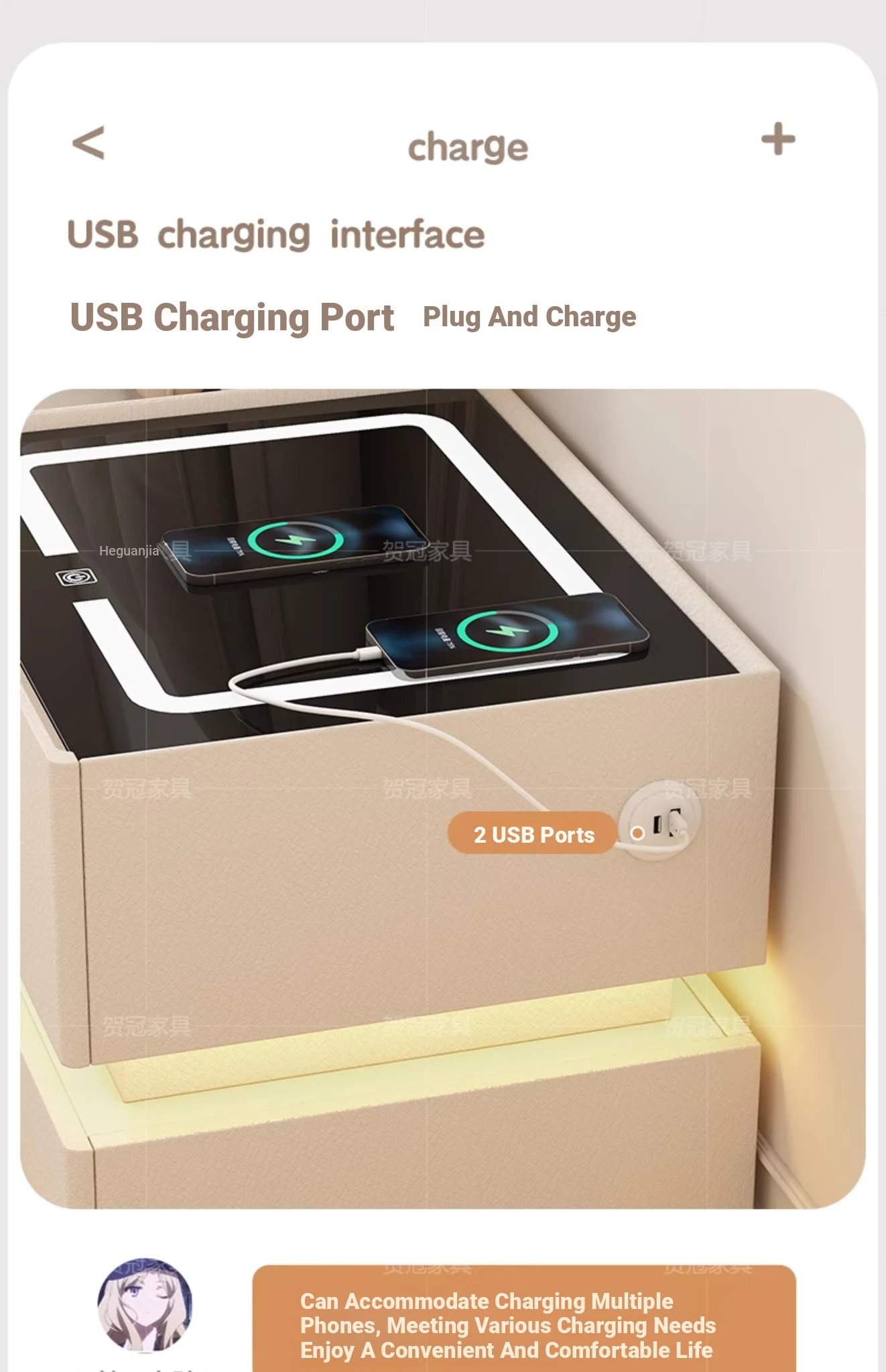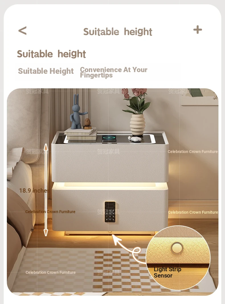 Cream White 17.72in [Intelligent Tri-color Lamp + Wireless Charge + USB + Audio + Password Lock] Suspension Double Sensor Lamp Strip
