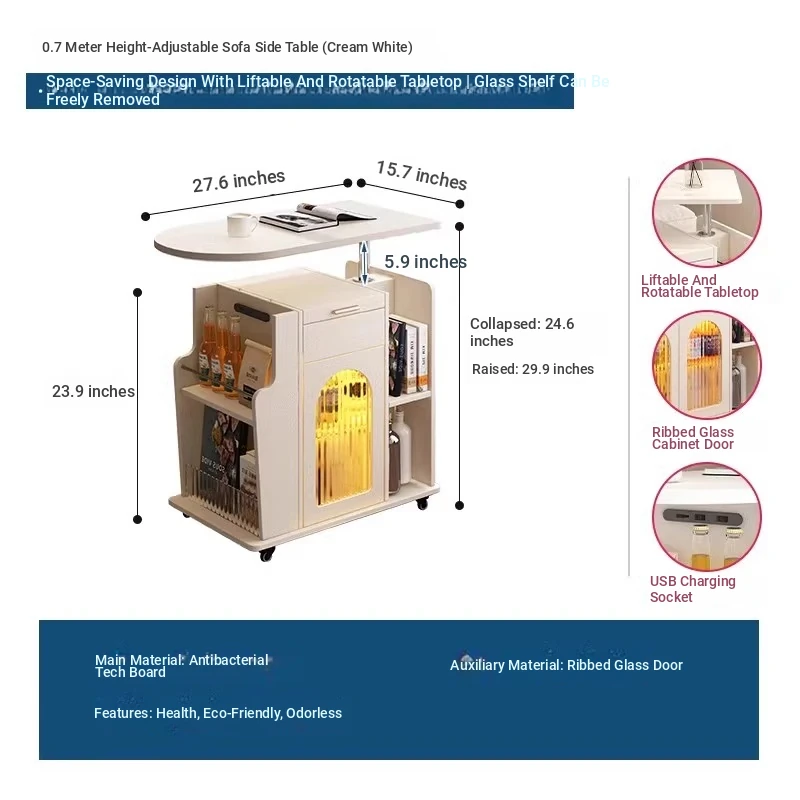 19.69 ins Movable Adjustable bedside table [three antibacterial]](Touch light with + fingerprint lock)