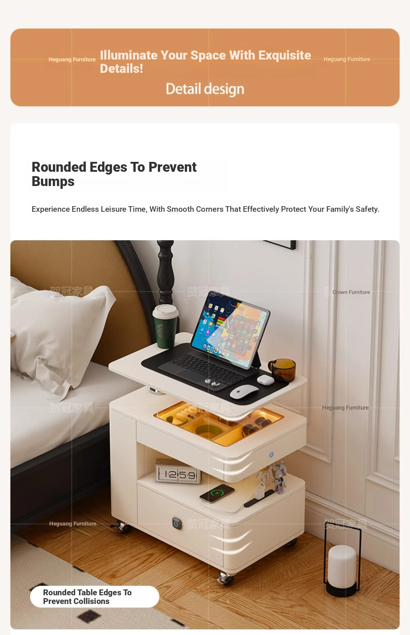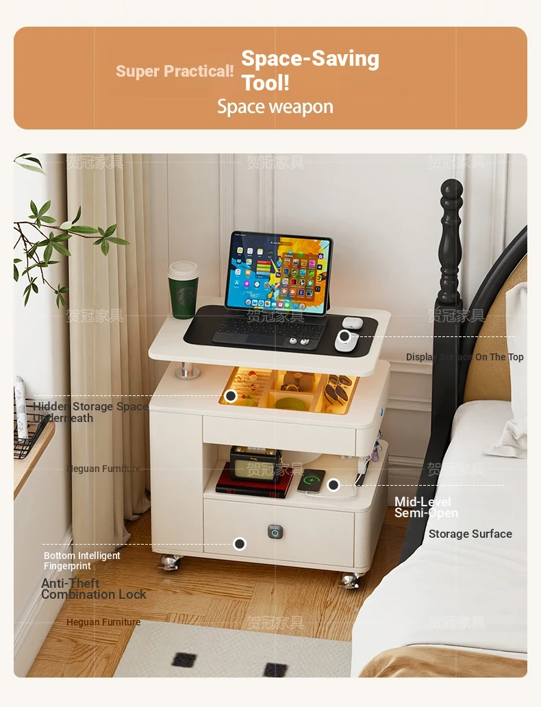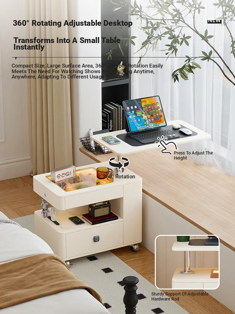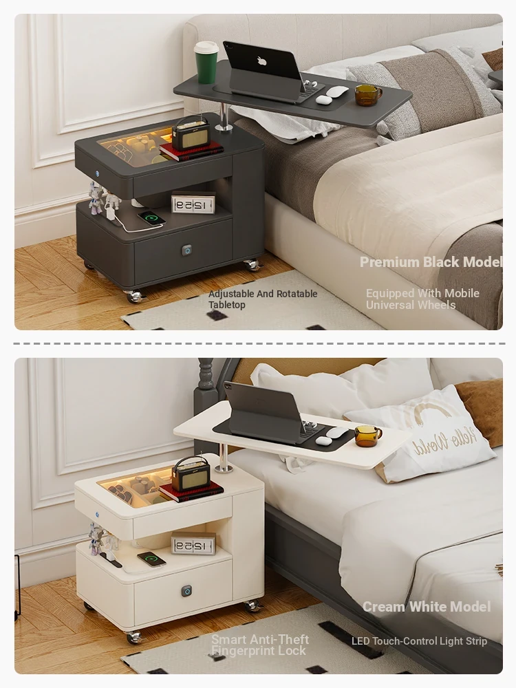 23.62 ins Movable Adjustable bedside table [three antibacterial]](Touch light with + fingerprint lock)
