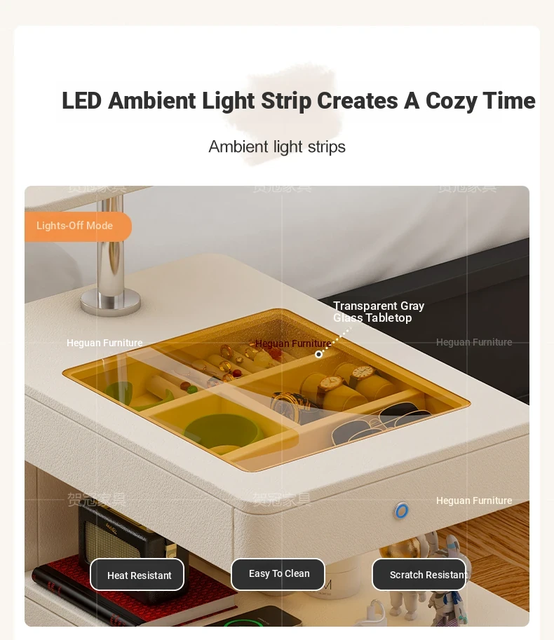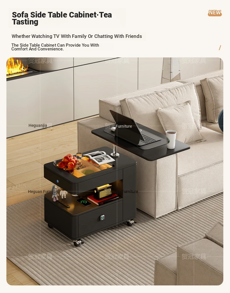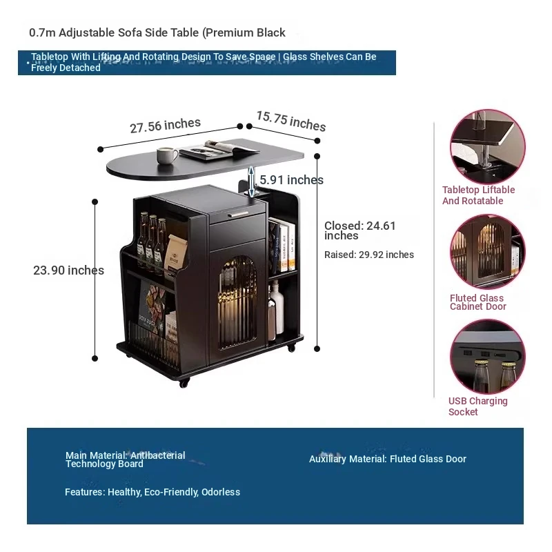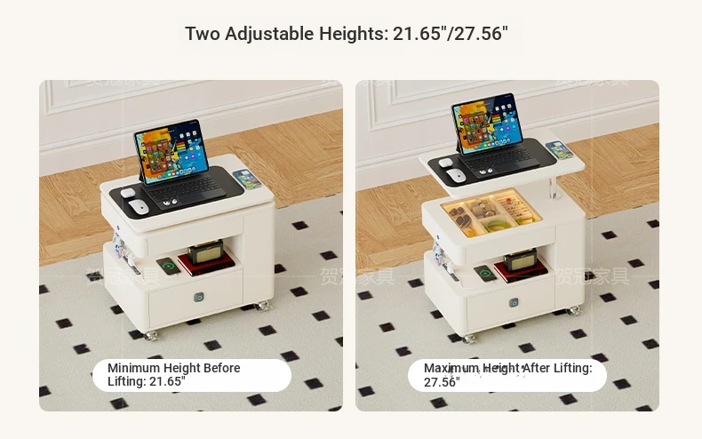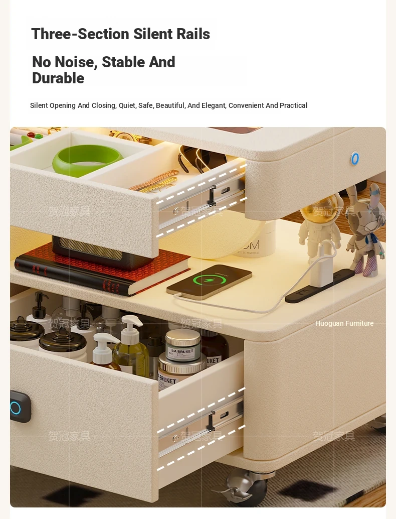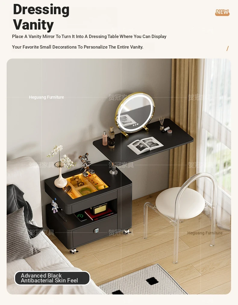 23.62 ins Movable Adjustable bedside table [three antibacterial]](Touch light with + fingerprint lock)