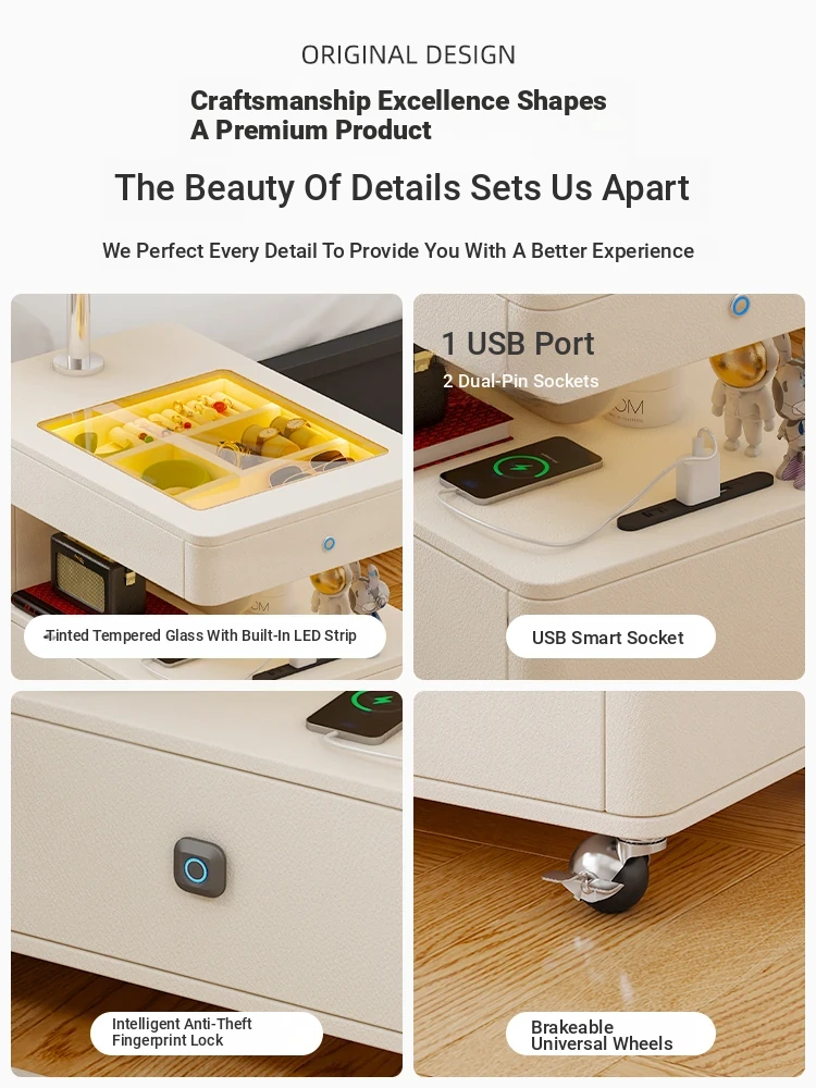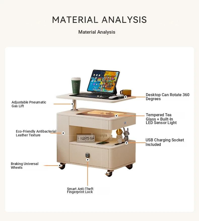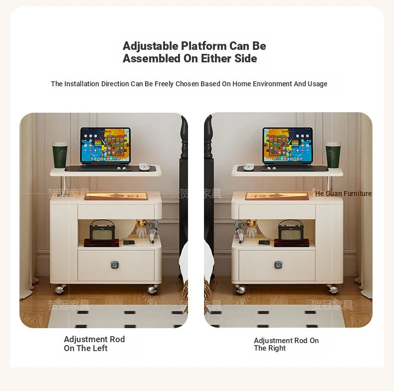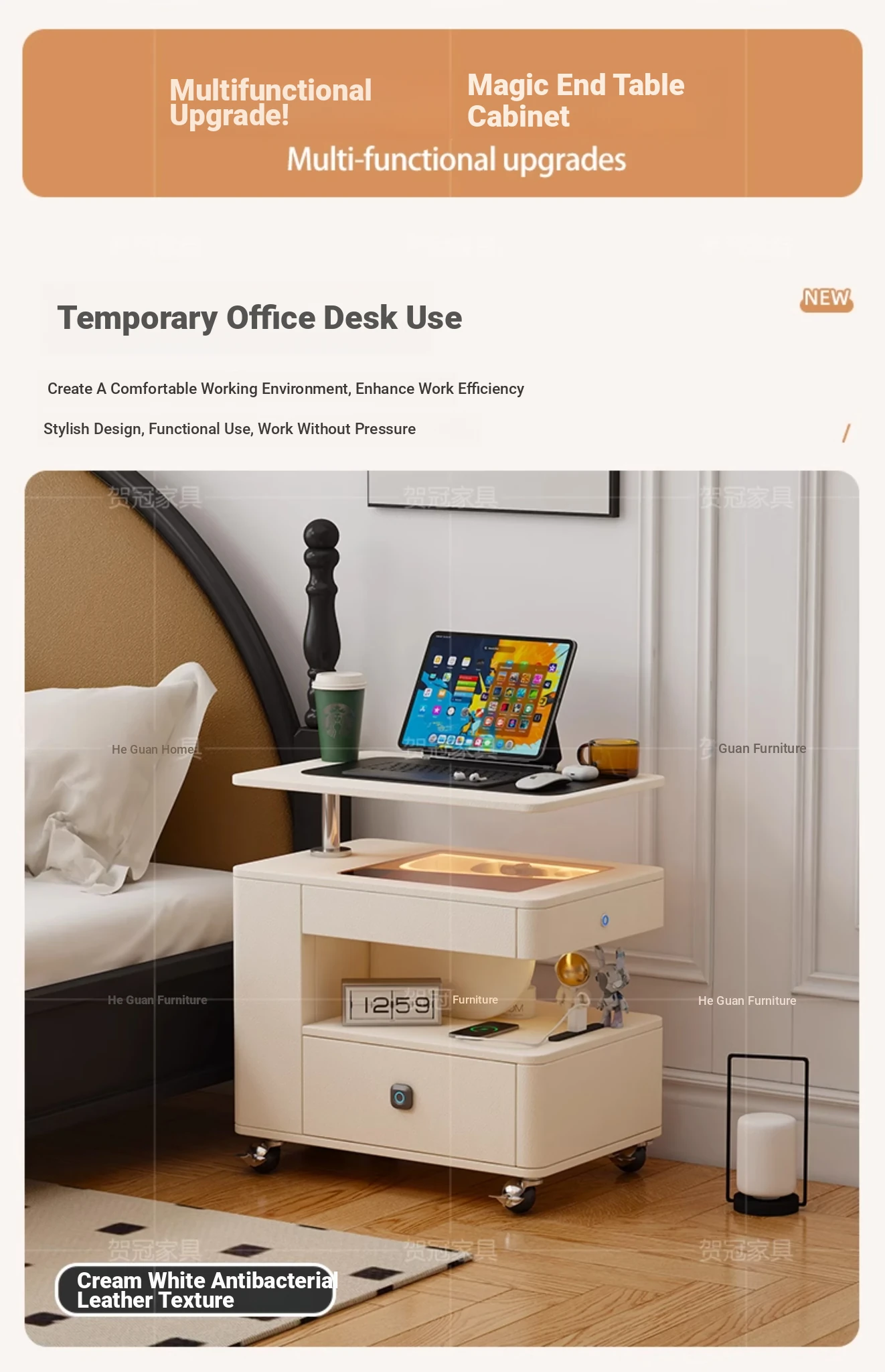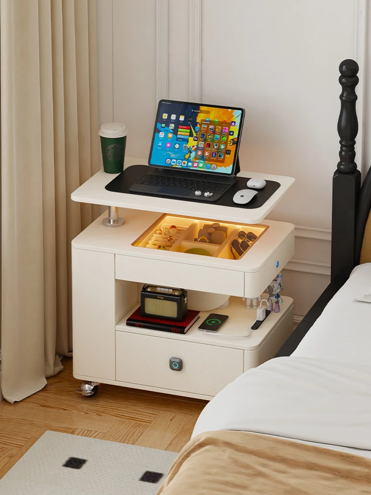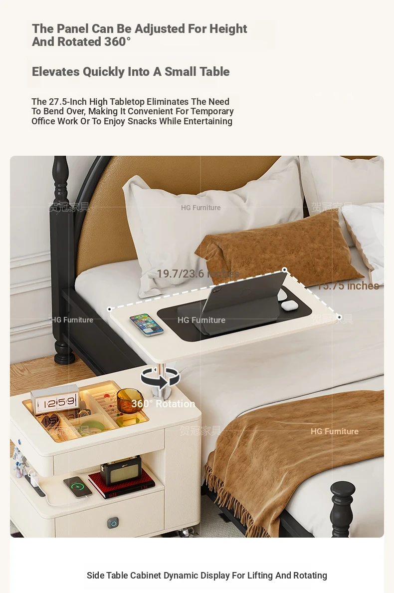 23.62 in Movable Adjustable bedside table [antibacterial leather]](Touch light with + fingerprint lock)