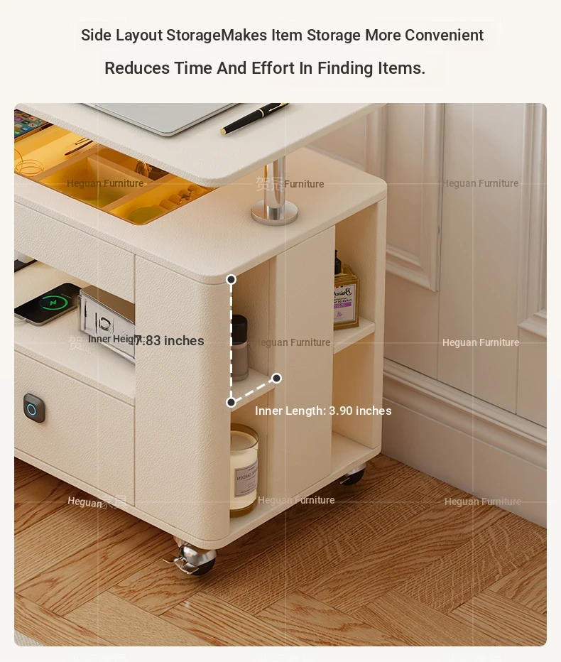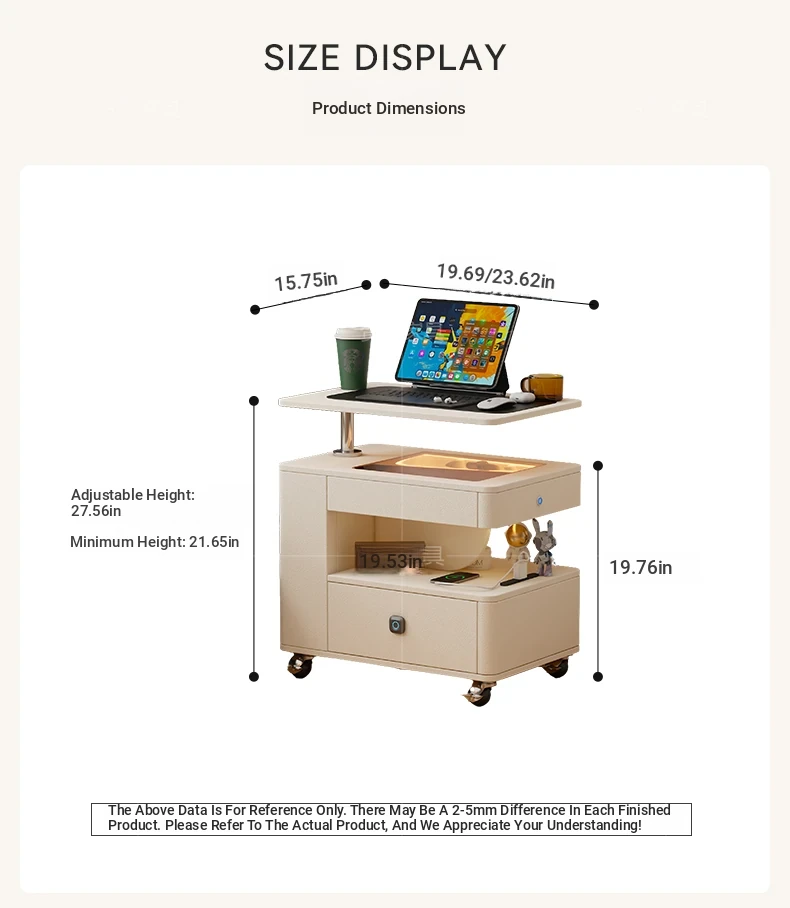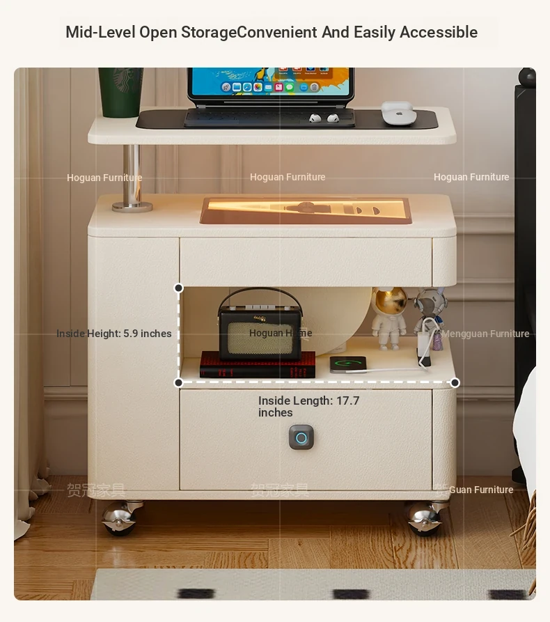 19.69 in Movable Adjustable bedside table [antibacterial leather]](Touch light with + fingerprint lock)