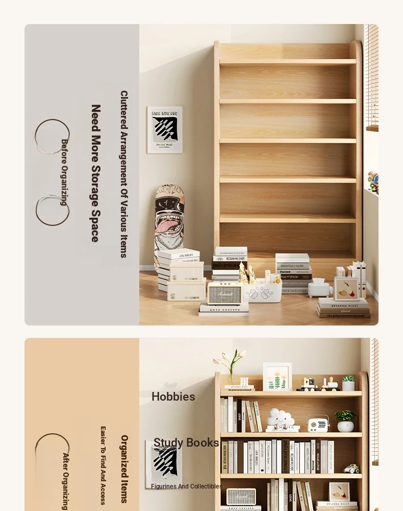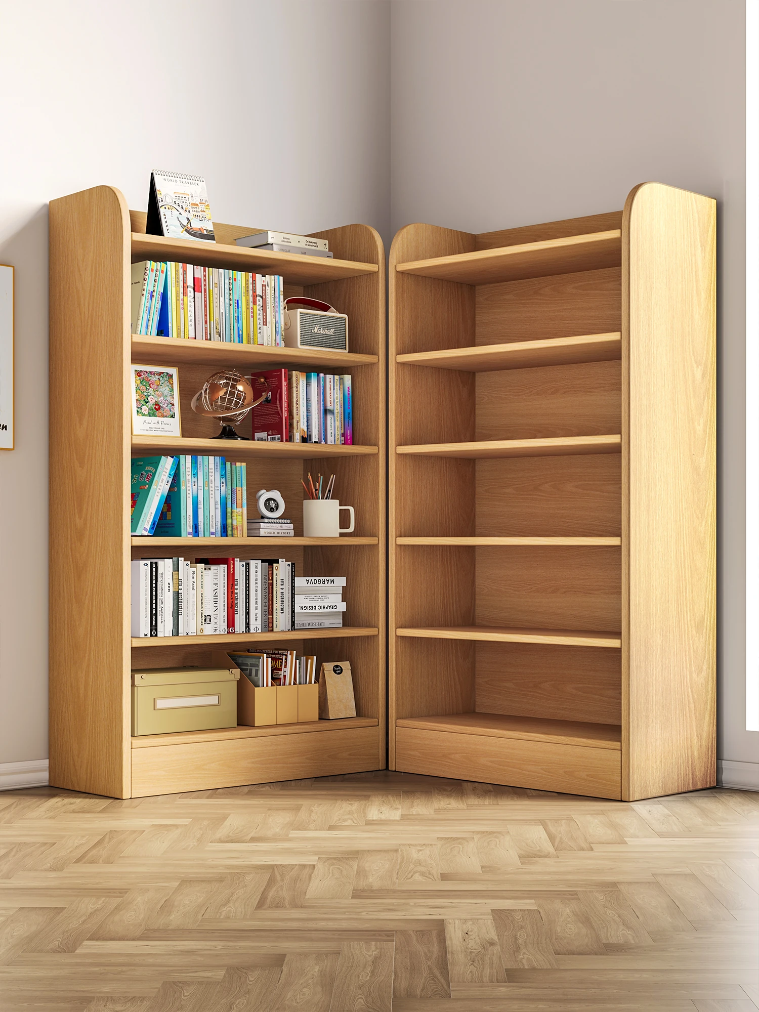 Stylish Wooden Corner Bookshelf - Space-Saving Narrow Storage Rack for Living Room, Easy Wall-Mounted Design, Perfect for Kids' Picture Books and Organizing Your Space.