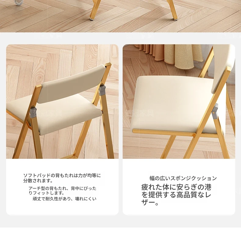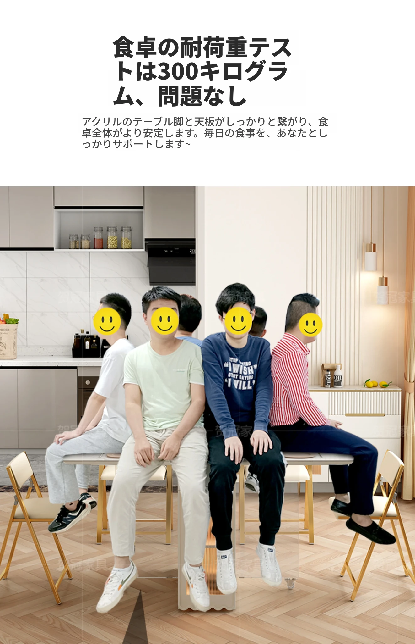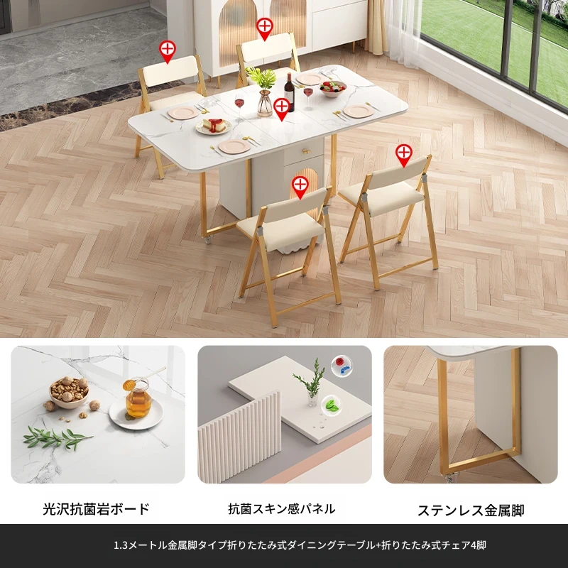 1.3メートル折りたたみダイニングテーブル アクリル脚+暖白色の折りたたみ椅子*4
