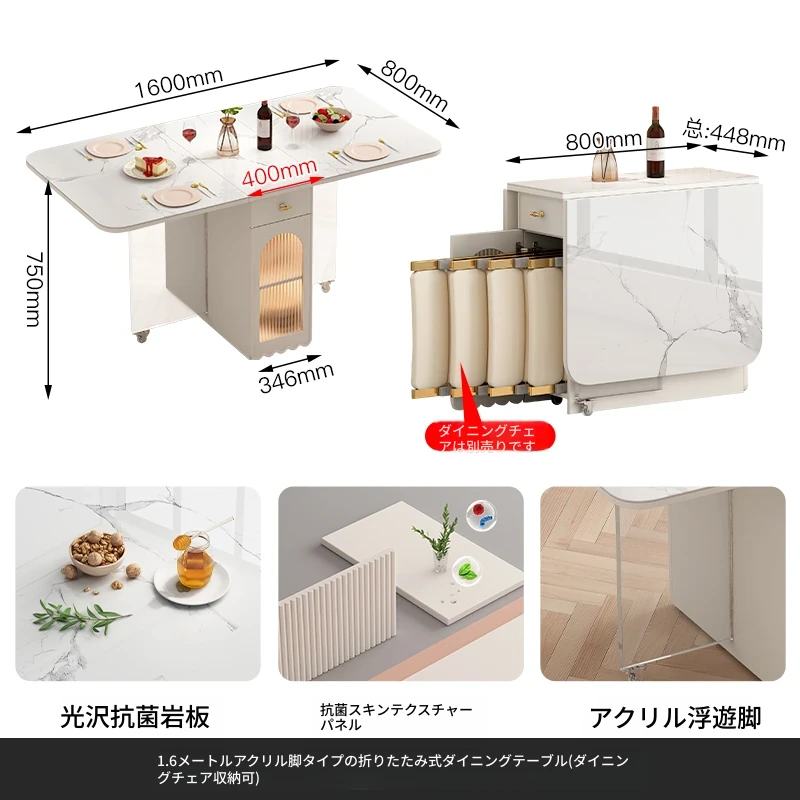 1.6メートルIHコンロ折りたたみダイニングテーブル アクリル脚