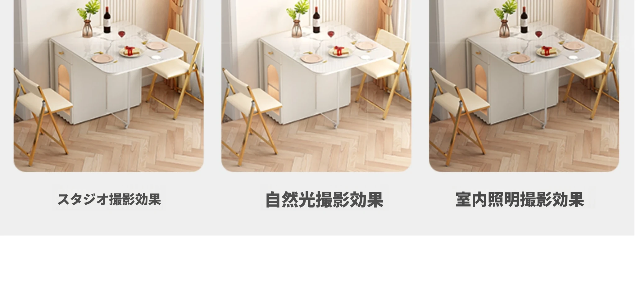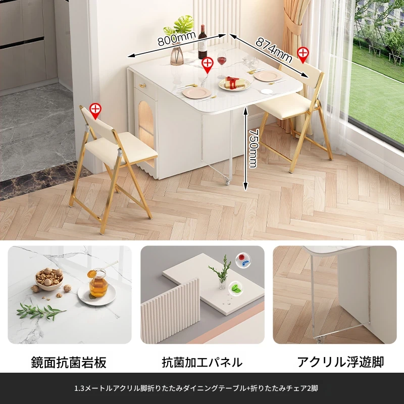 1.3メートル折りたたみダイニングテーブル アクリル脚+暖白色の折りたたみ椅子*2