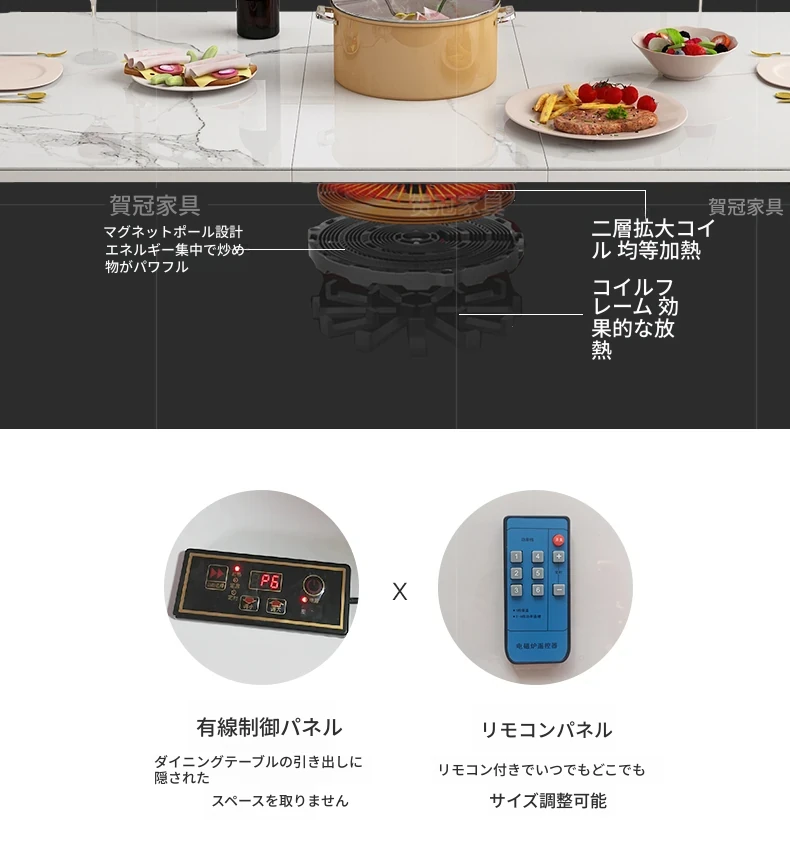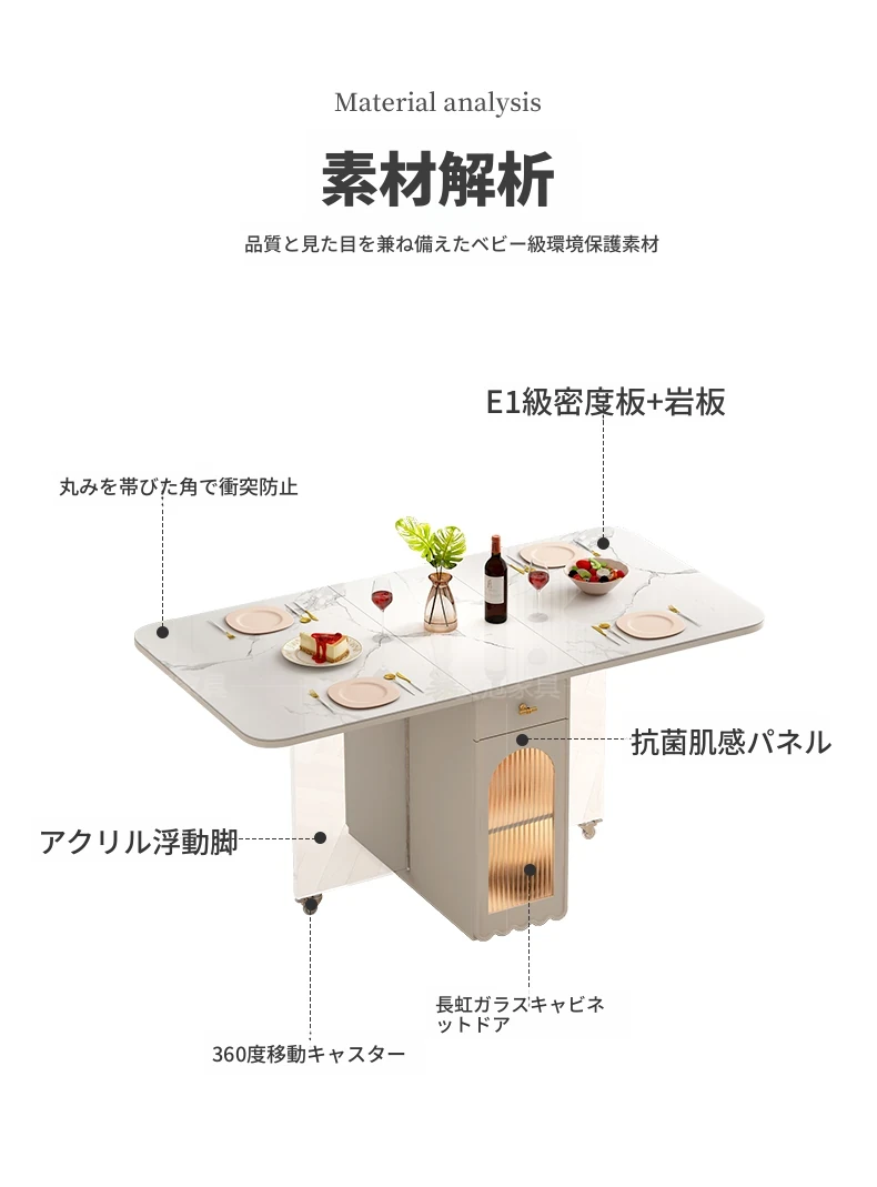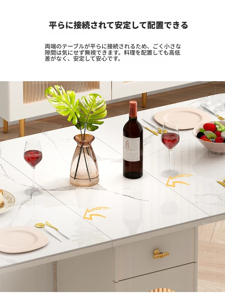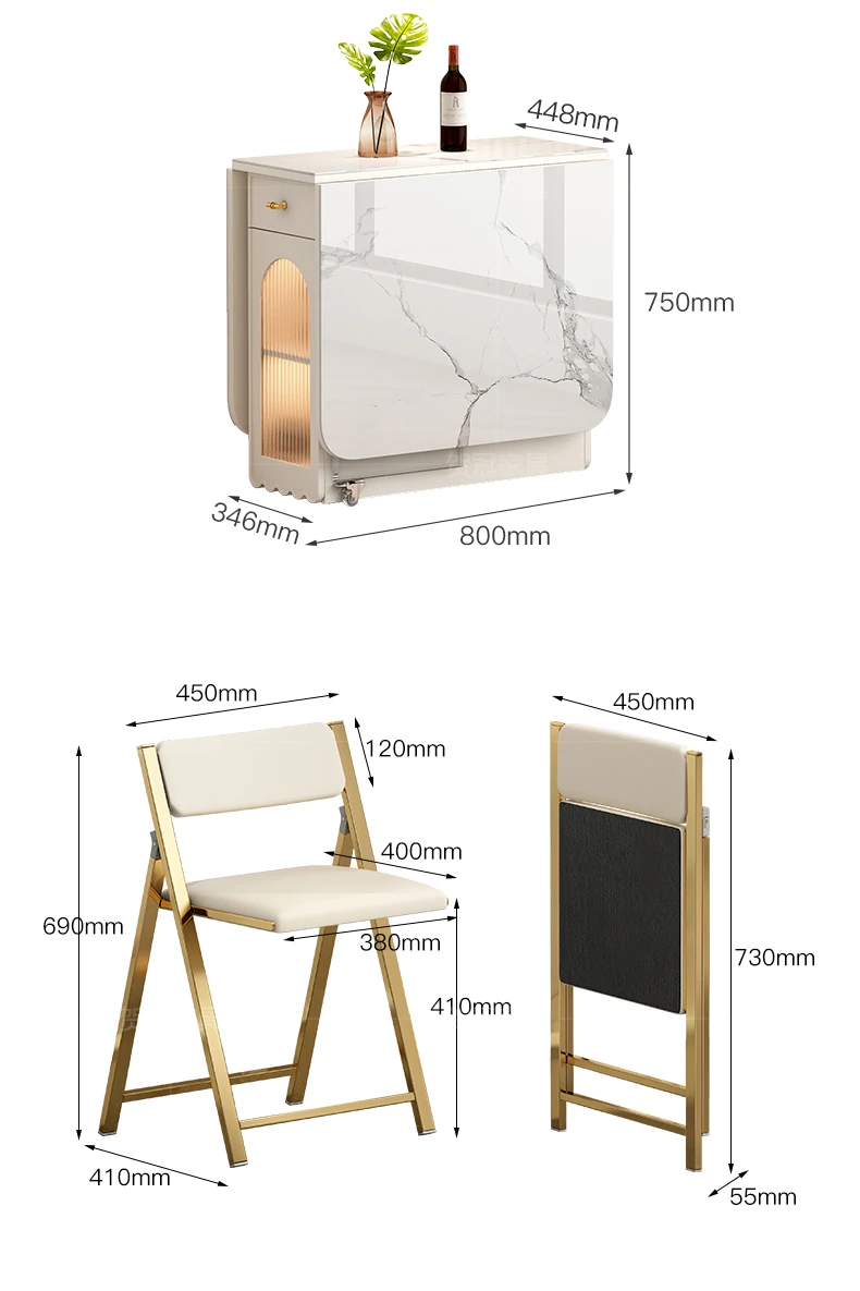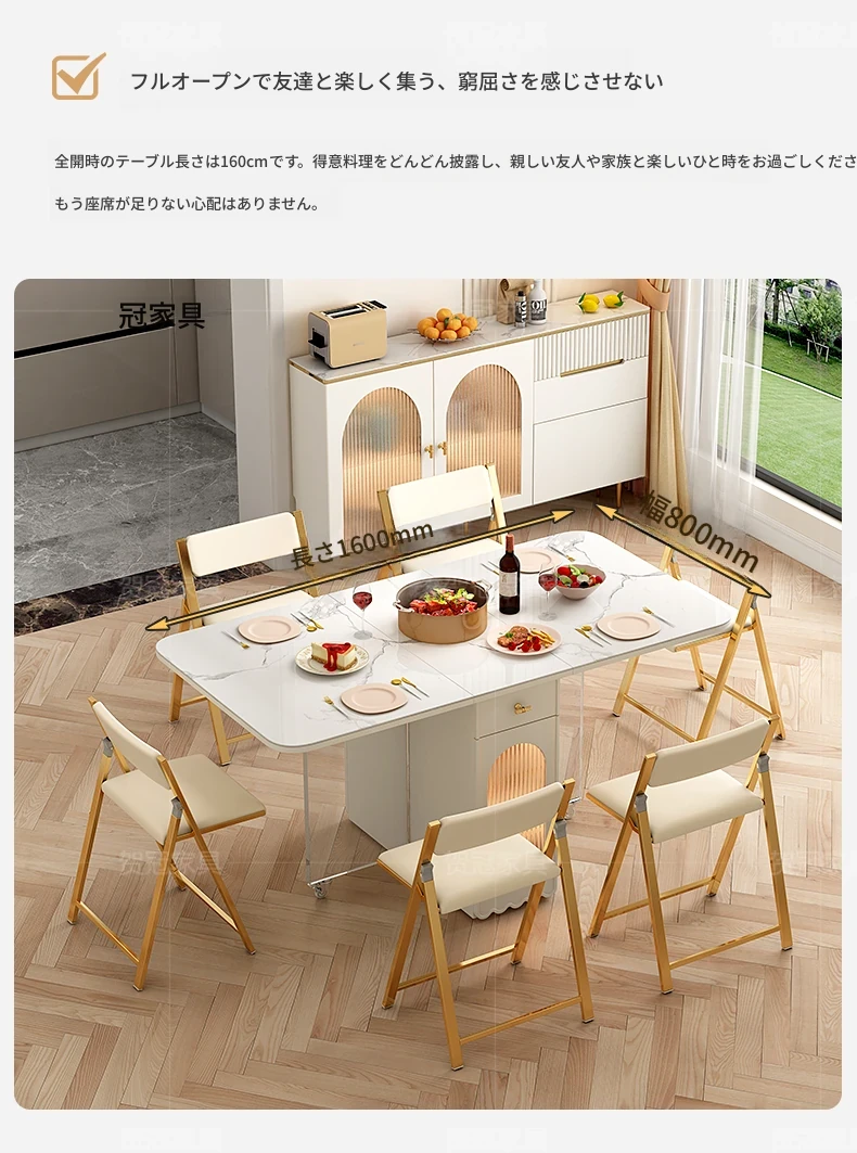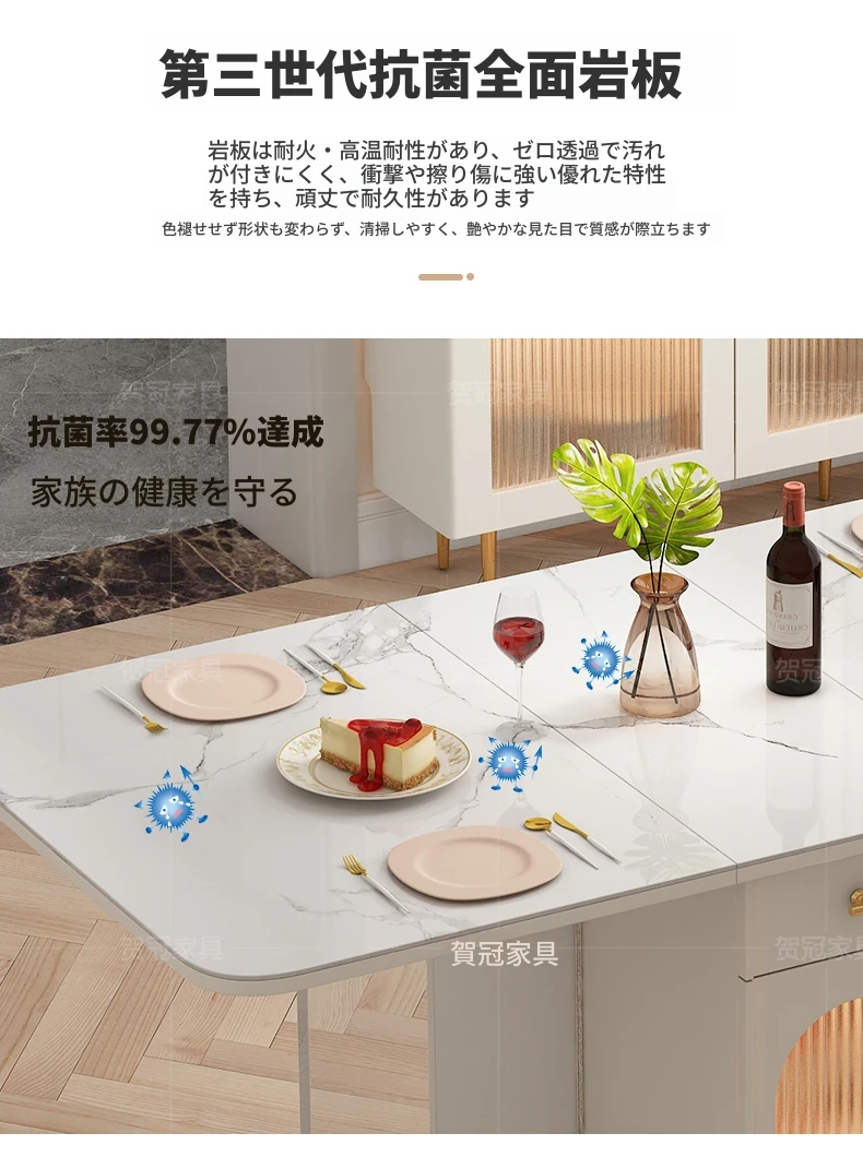 高級感溢れる!岩板可動式ダイニングテーブル兼収納キャビネット、電磁コンロ付きで省スペースの小型住宅にも最適な折りたたみ式デザイン。