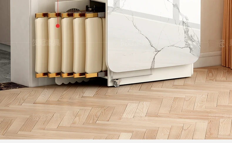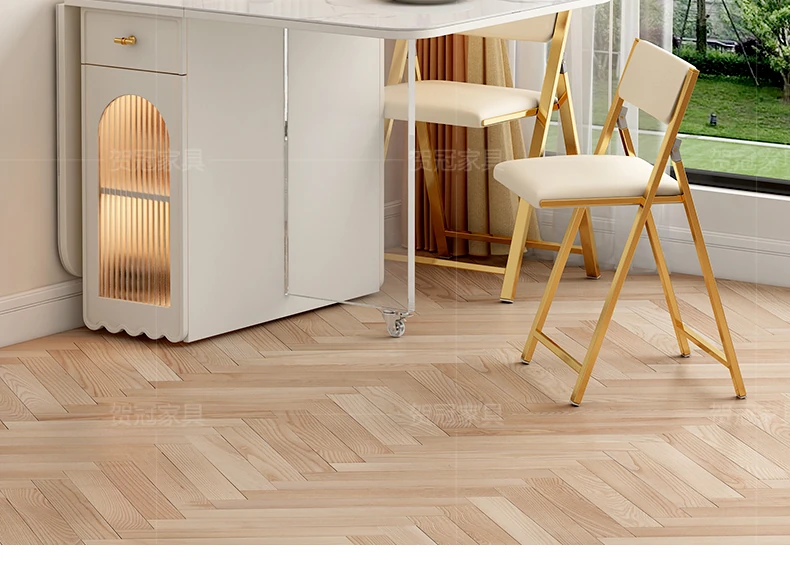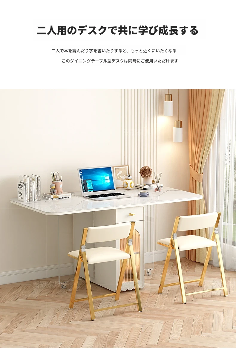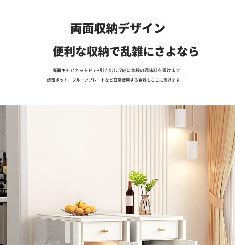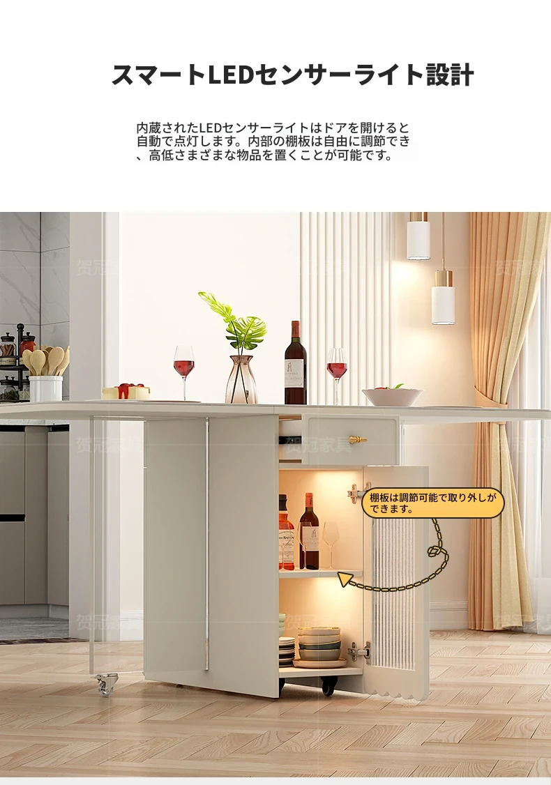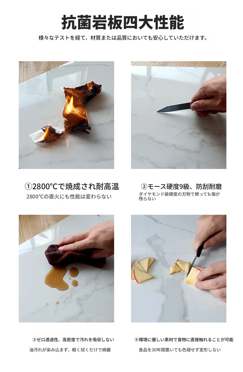 高級感溢れる!岩板可動式ダイニングテーブル兼収納キャビネット、電磁コンロ付きで省スペースの小型住宅にも最適な折りたたみ式デザイン。