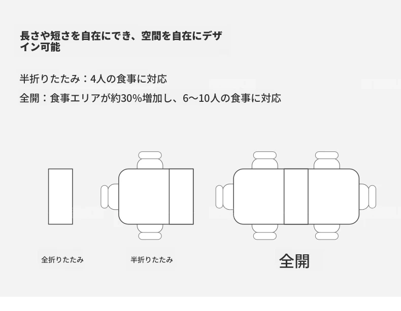 1.3メートルIHコンロ折りたたみダイニングテーブル アクリル脚
