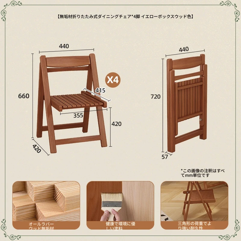 無垢材折りたたみダイニングチェア*4【クリームホワイト/高級ブラック/黄楊木柄】