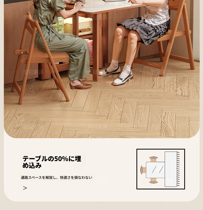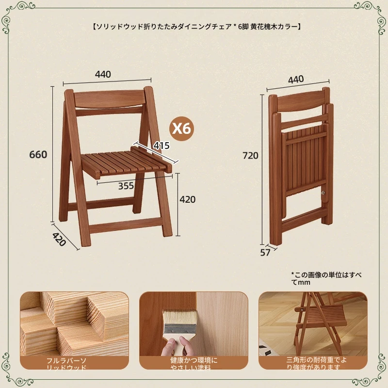 無垢材折りたたみダイニングチェア*6【クリームホワイト/高級ブラック/黄楊木柄】