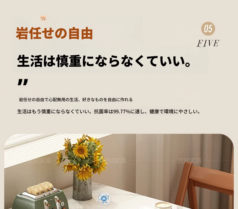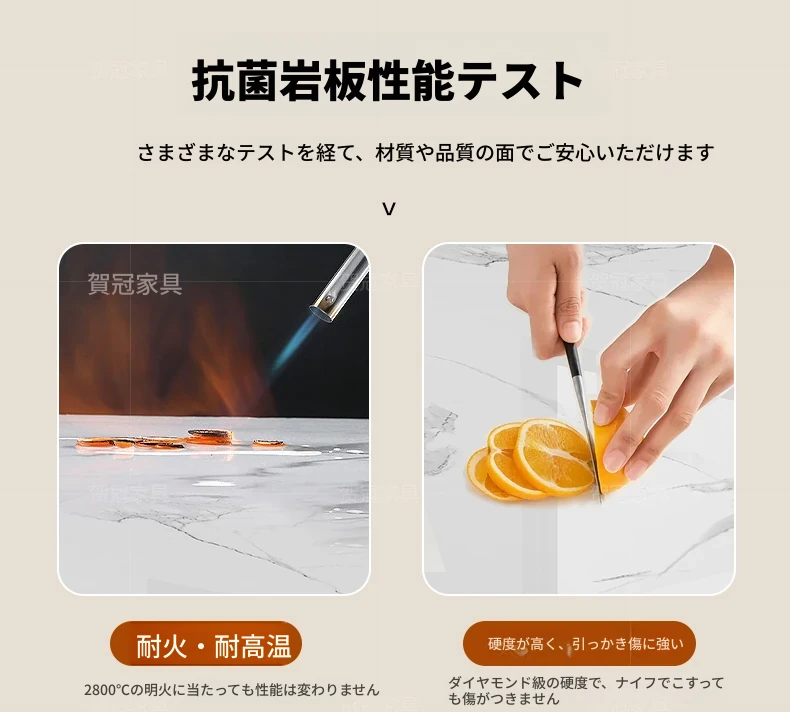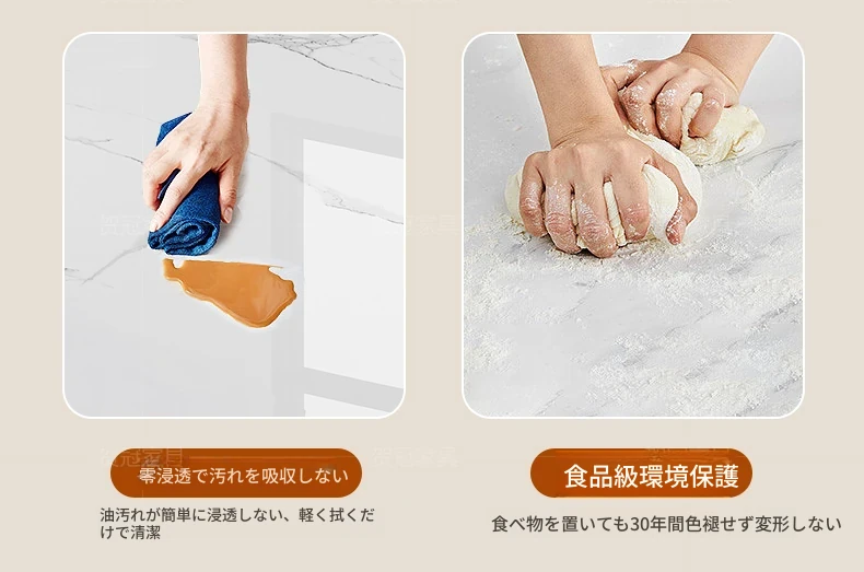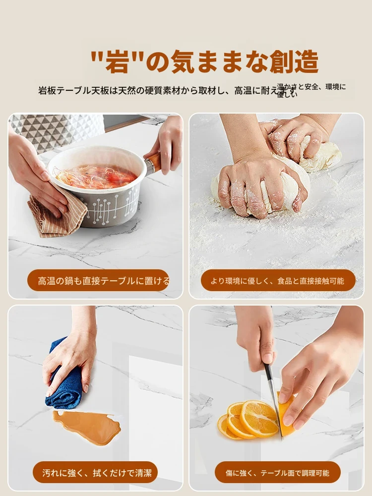 1.2メートル 岩板無垢材モデル+IHコンロ【抗菌岩板+五防抗菌レザー白】