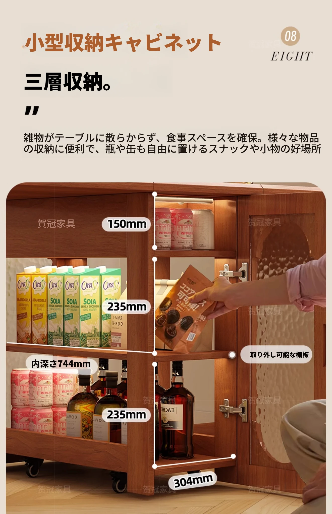 1.7メートル 岩板無垢材モデル+IHコンロ【抗菌岩板+水紋ガラスドア+黄楊木柄】