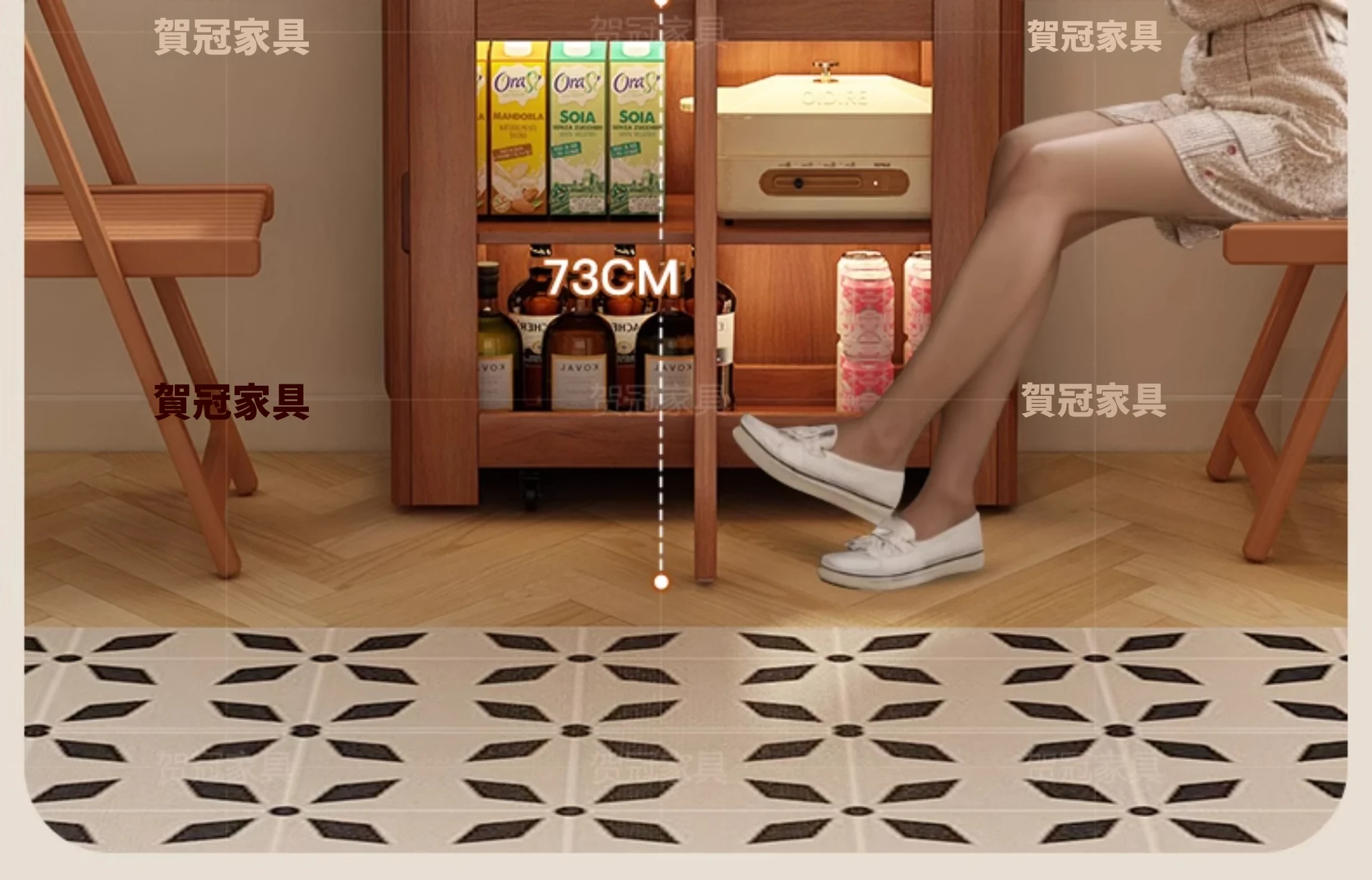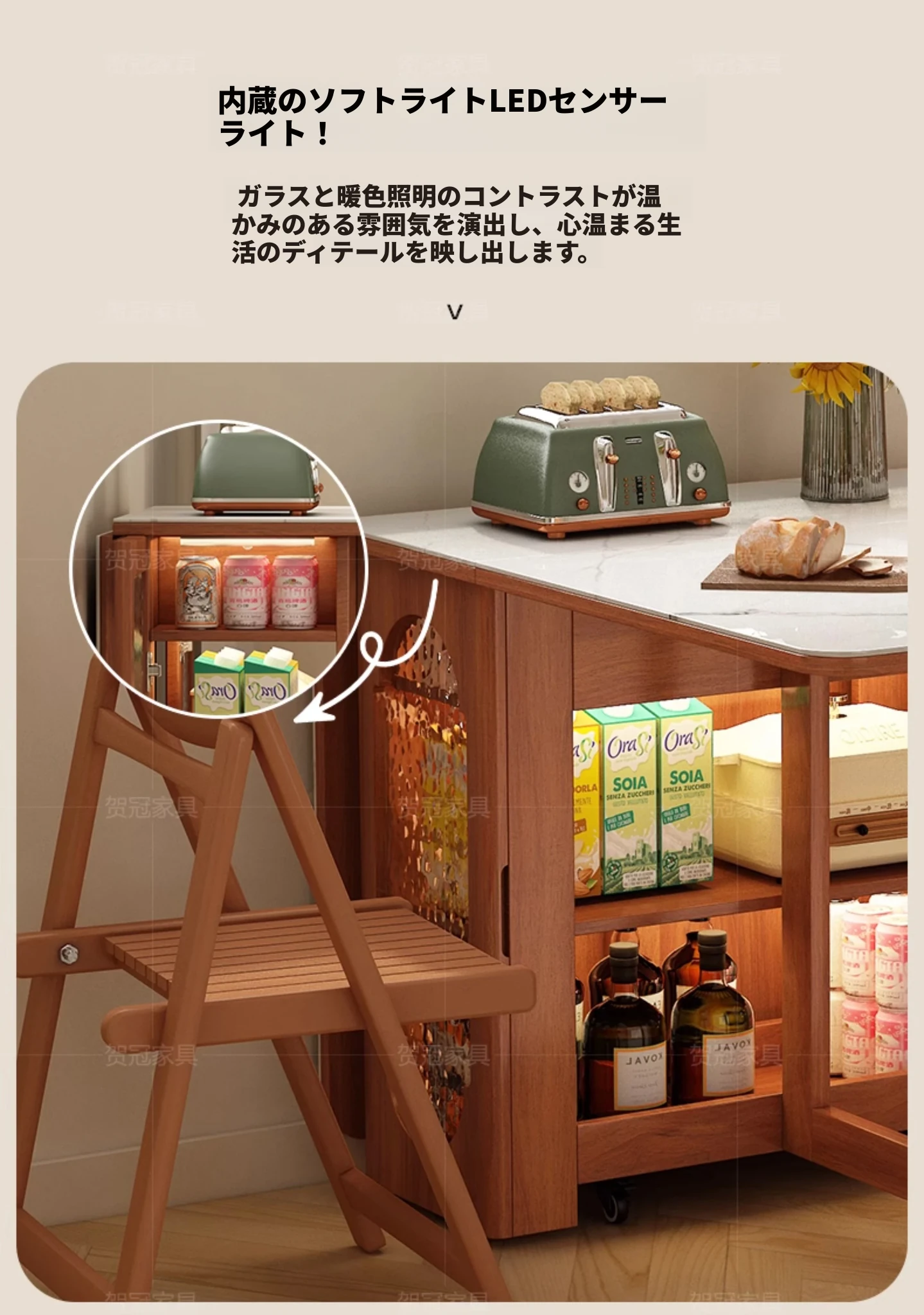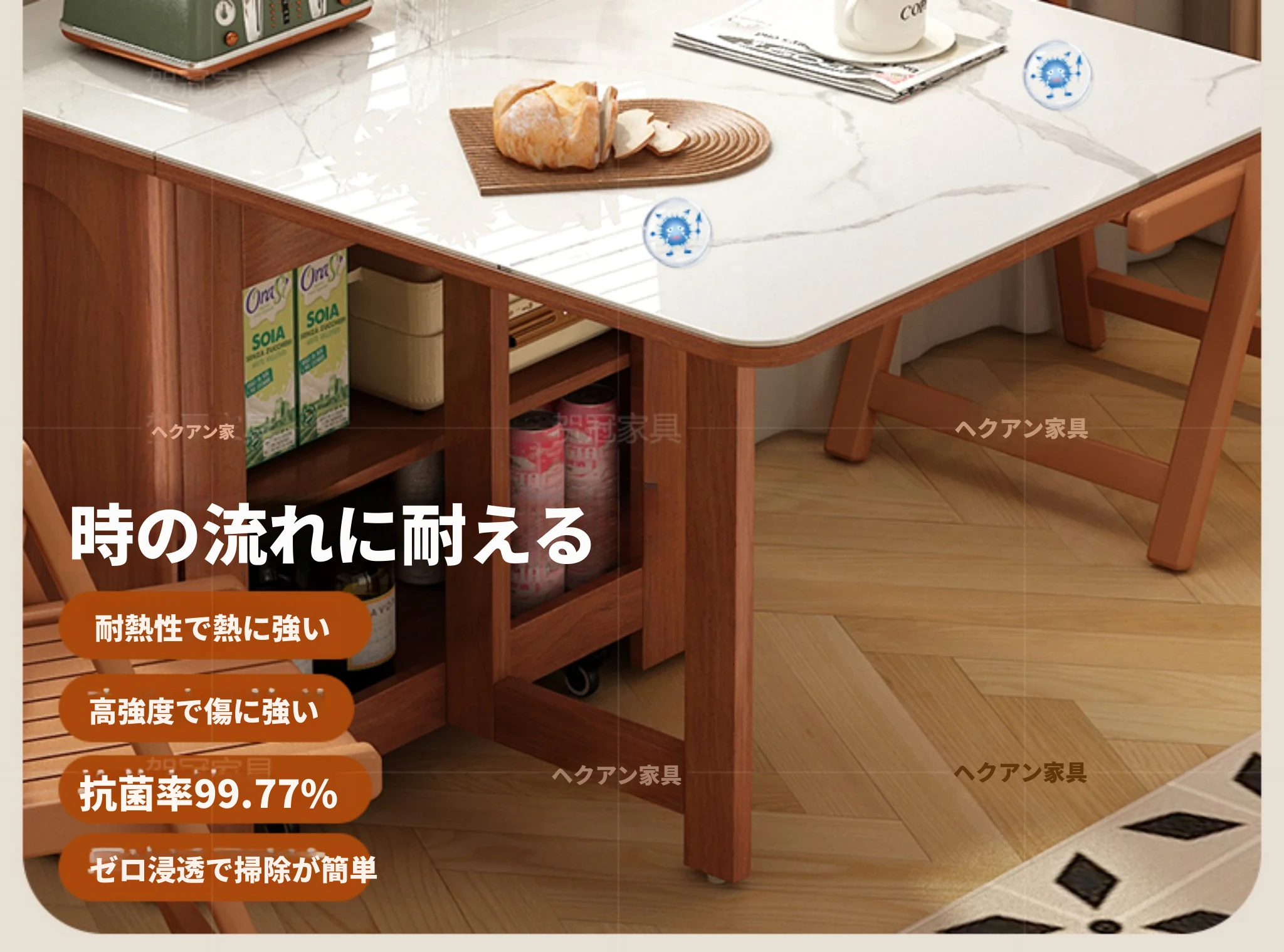 1.2メートル 岩板無垢材モデル+IHコンロ【抗菌岩板+水紋ガラスドア+黄楊木柄】