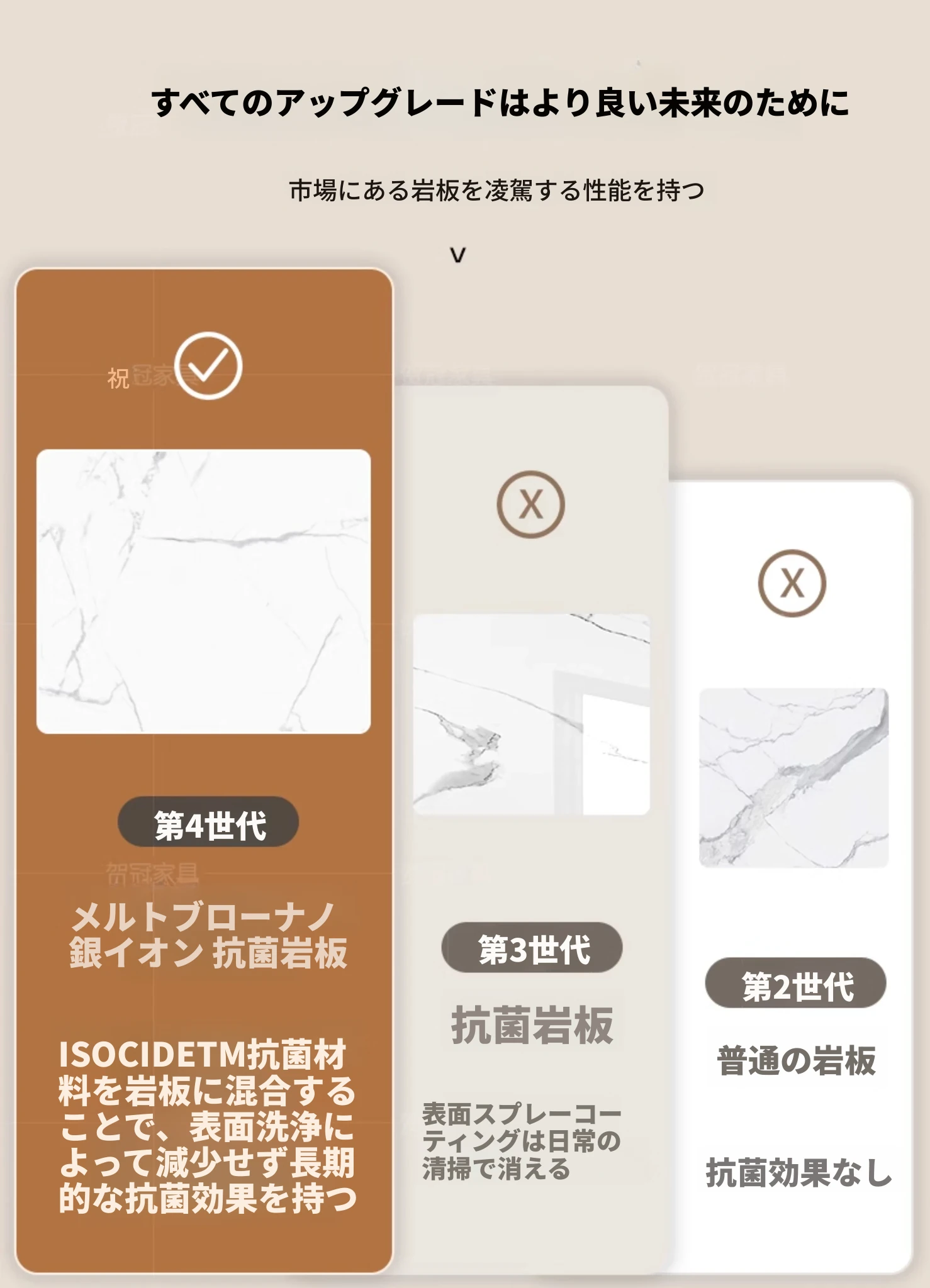 1.7メートル 岩板無垢材モデル【抗菌岩板+黄楊木柄】