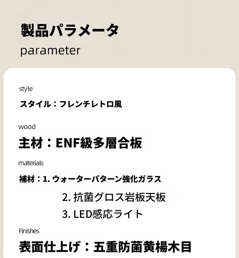 1.2メートル 岩板無垢材モデル【抗菌岩板+水紋ガラスドア+黄楊木柄】