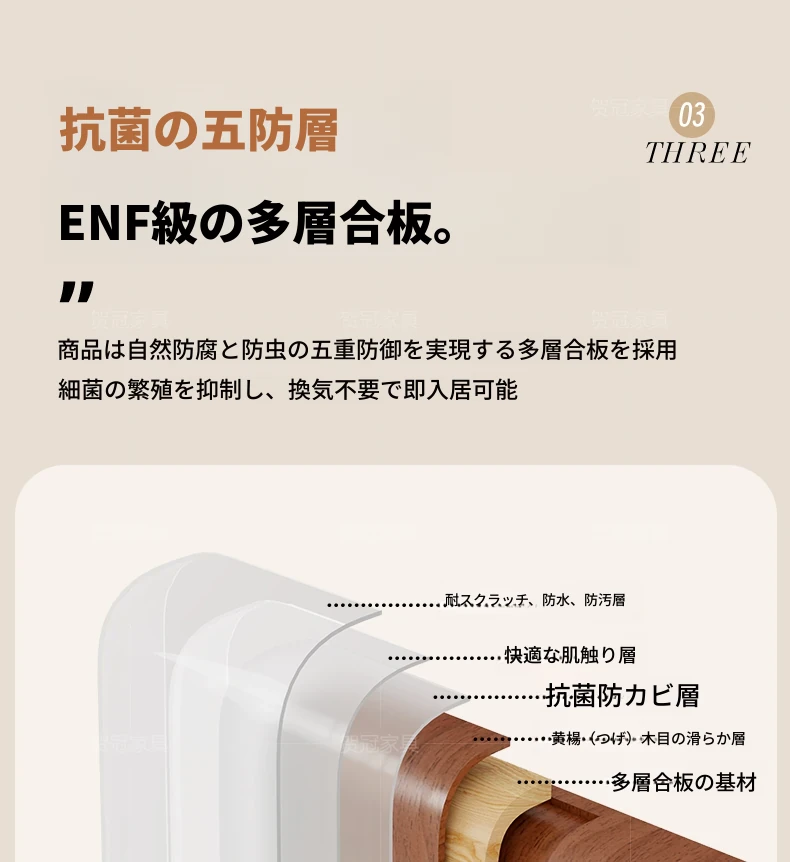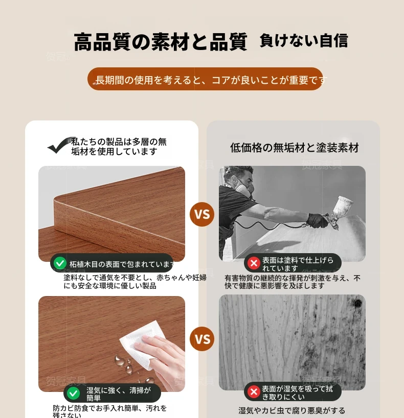 1.7メートル 無垢材モデル【五防抗菌高級ブラック】