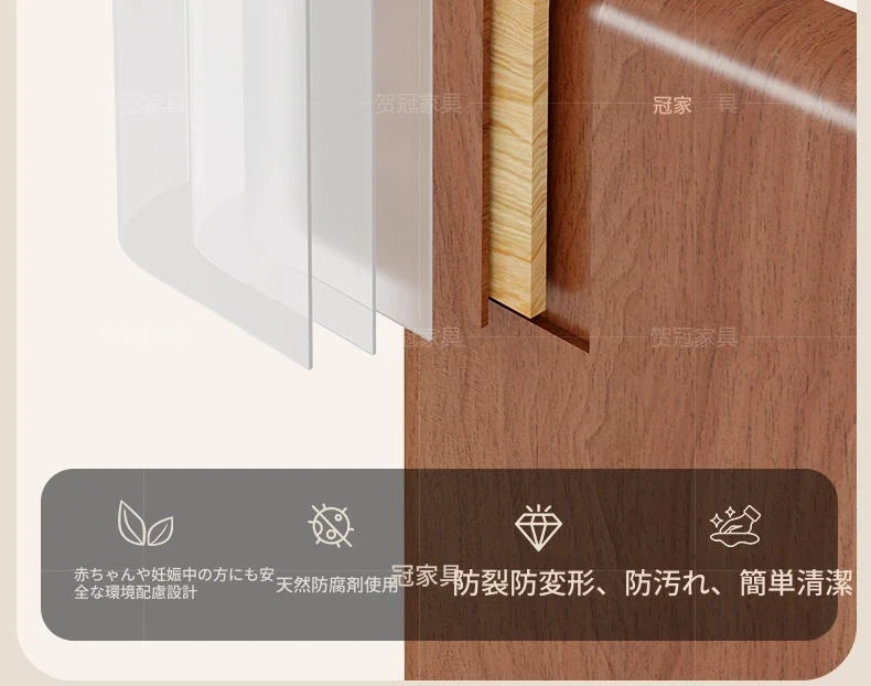1.7メートル 岩板無垢材モデル【抗菌岩板+水紋ガラスドア+黄楊木柄】