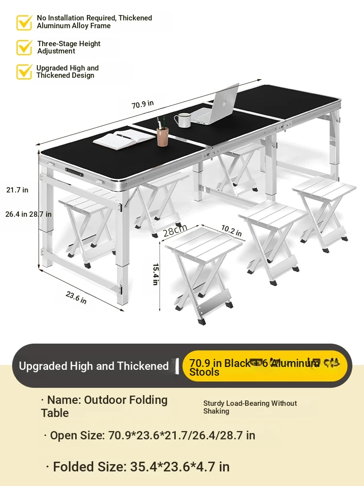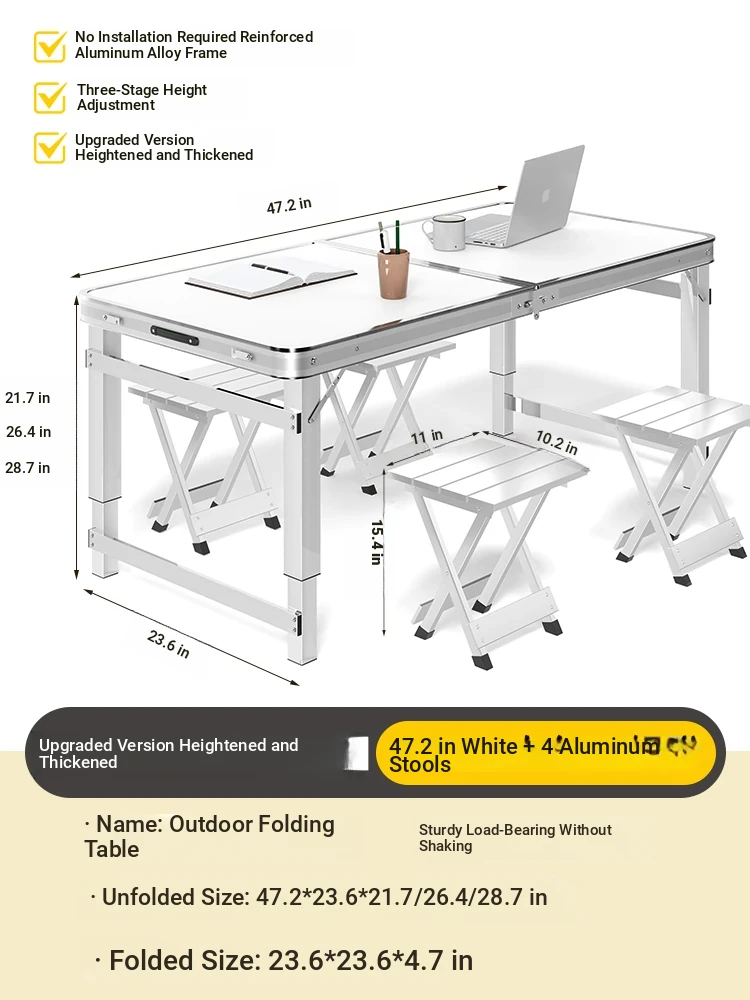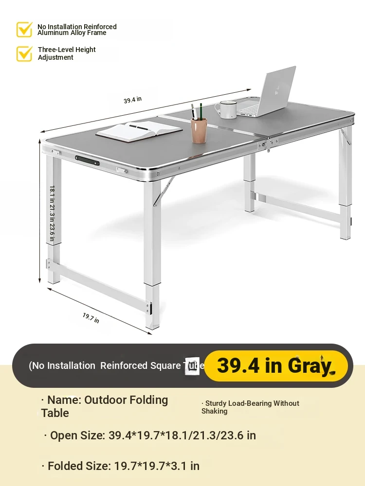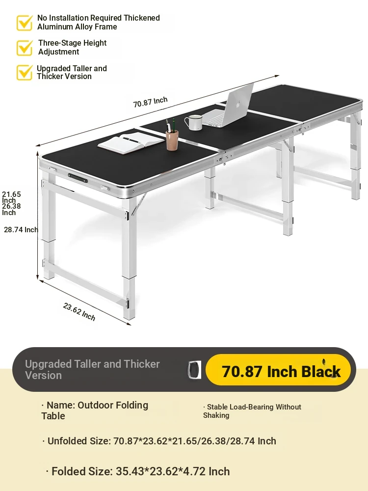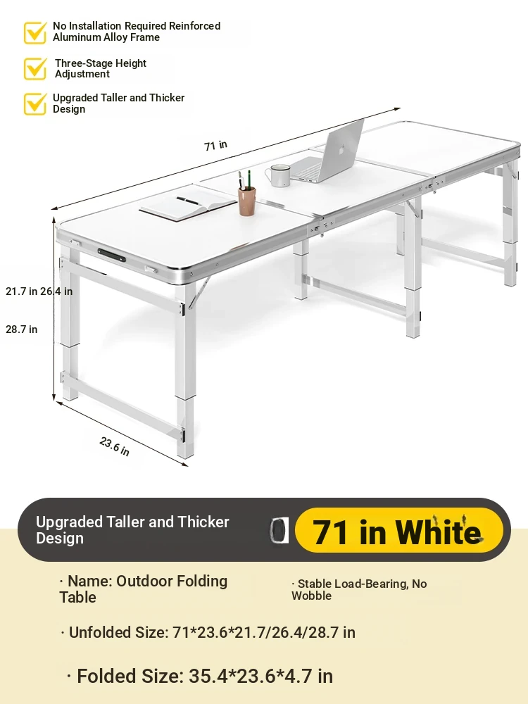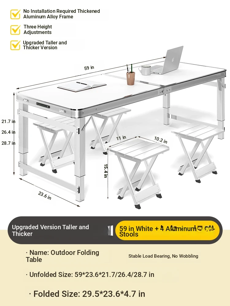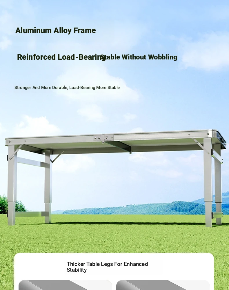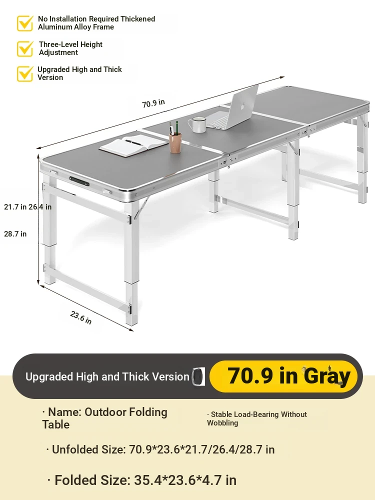 Portable Folding Outdoor Table - Adjustable Aluminum Camping Picnic Table, Easy Setup for Night Market Stalls and Chairs