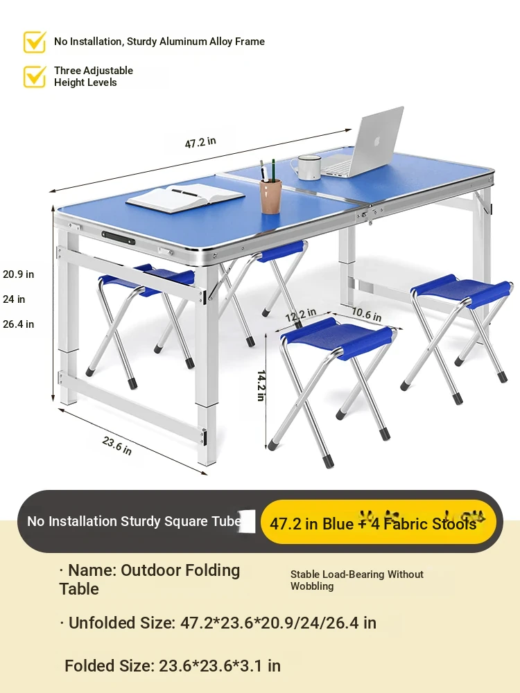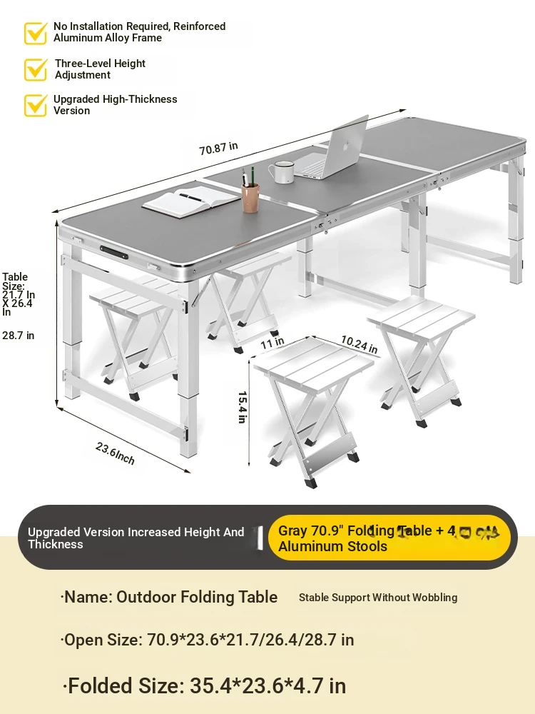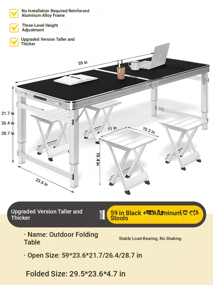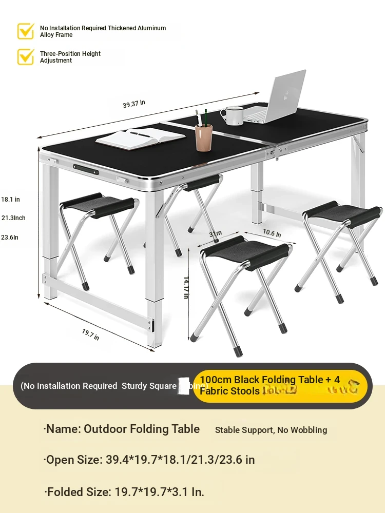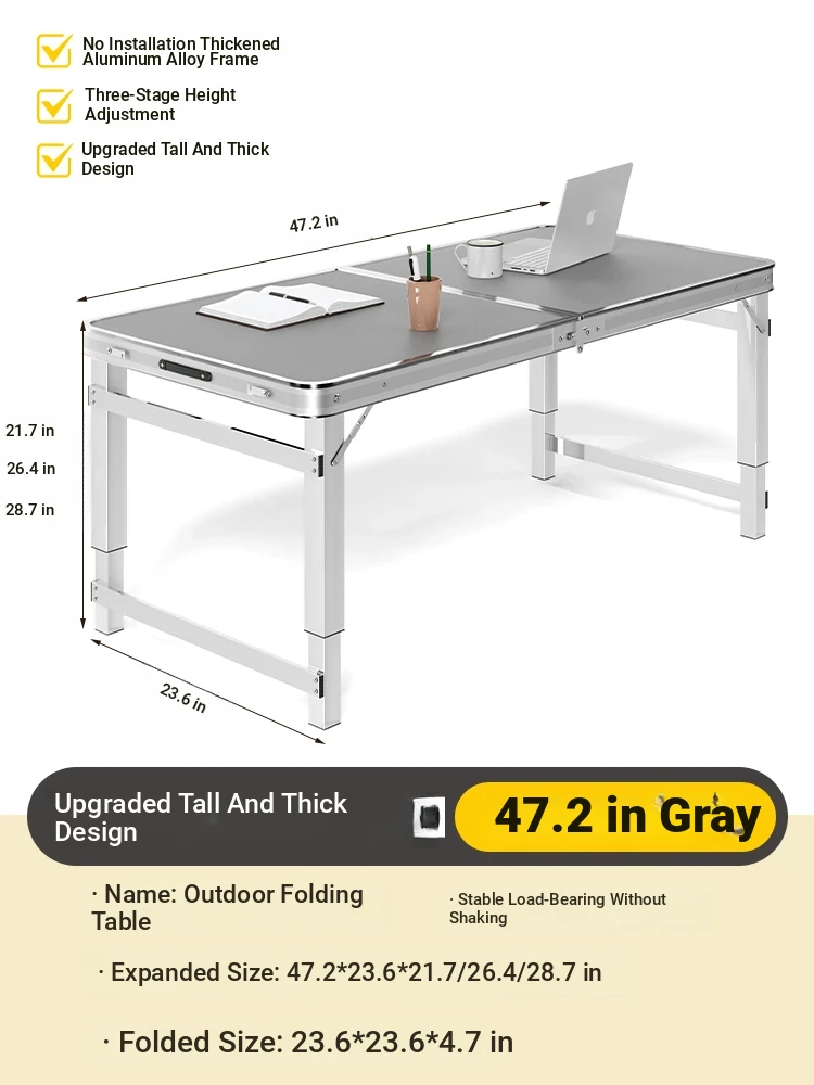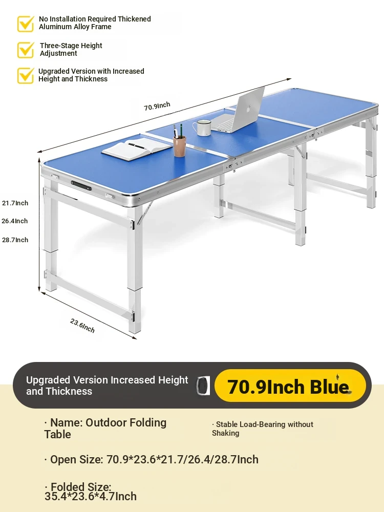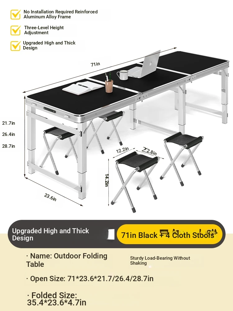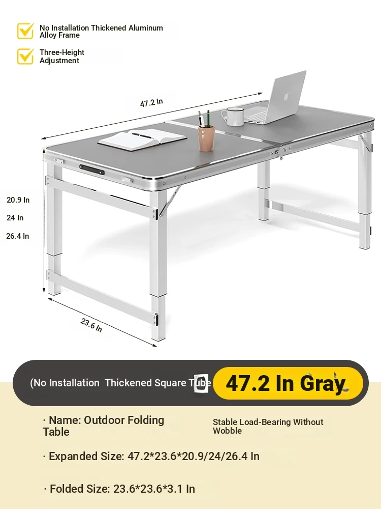 Portable Folding Outdoor Table - Adjustable Aluminum Camping Picnic Table, Easy Setup for Night Market Stalls and Chairs