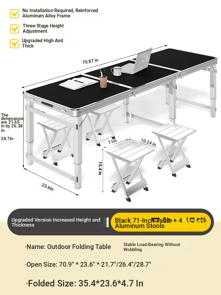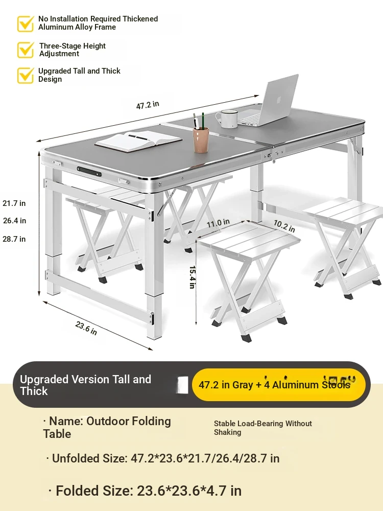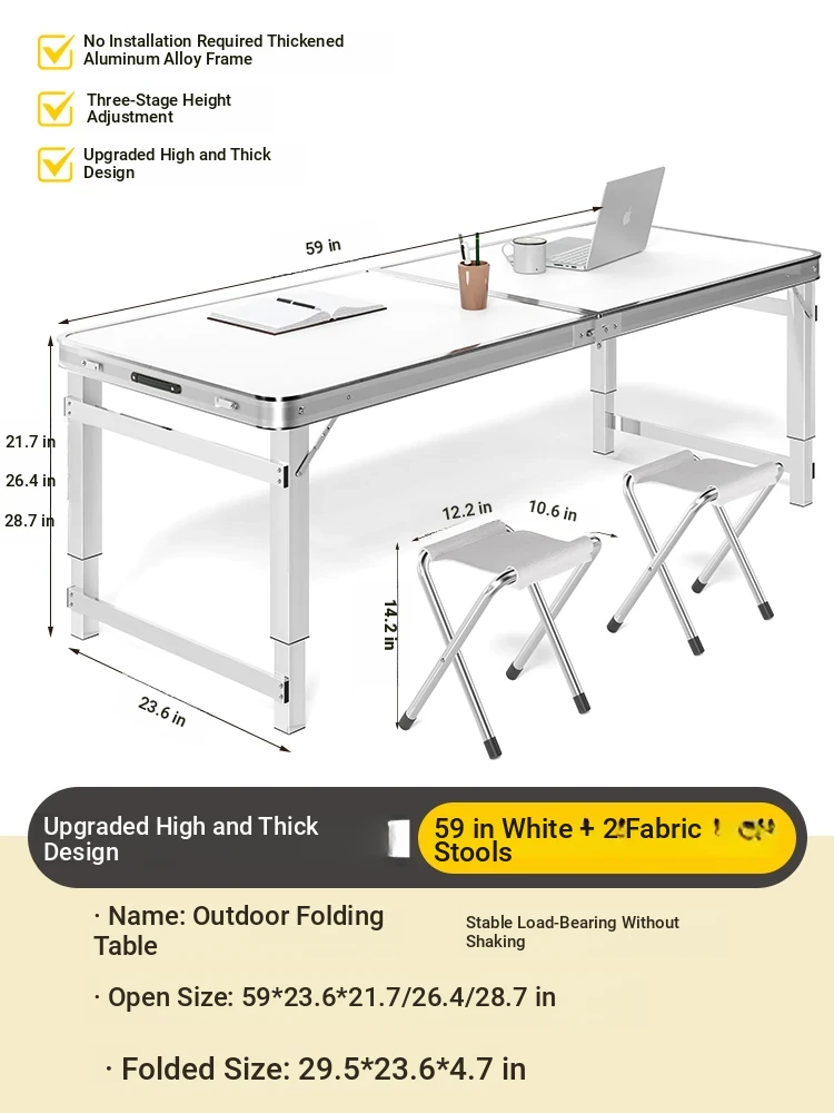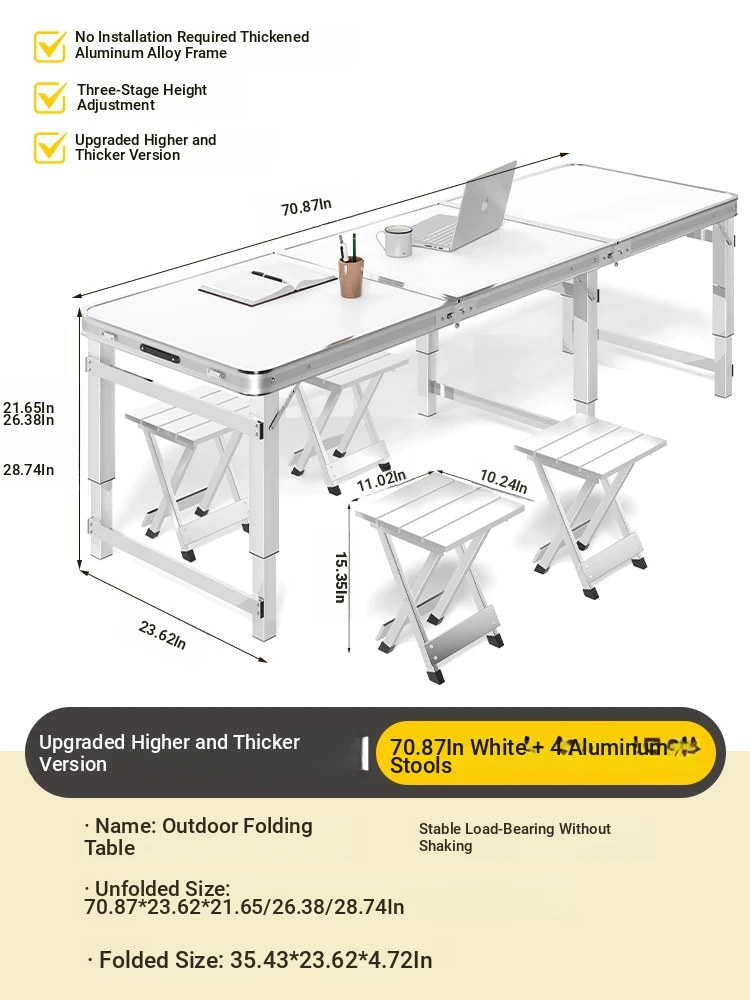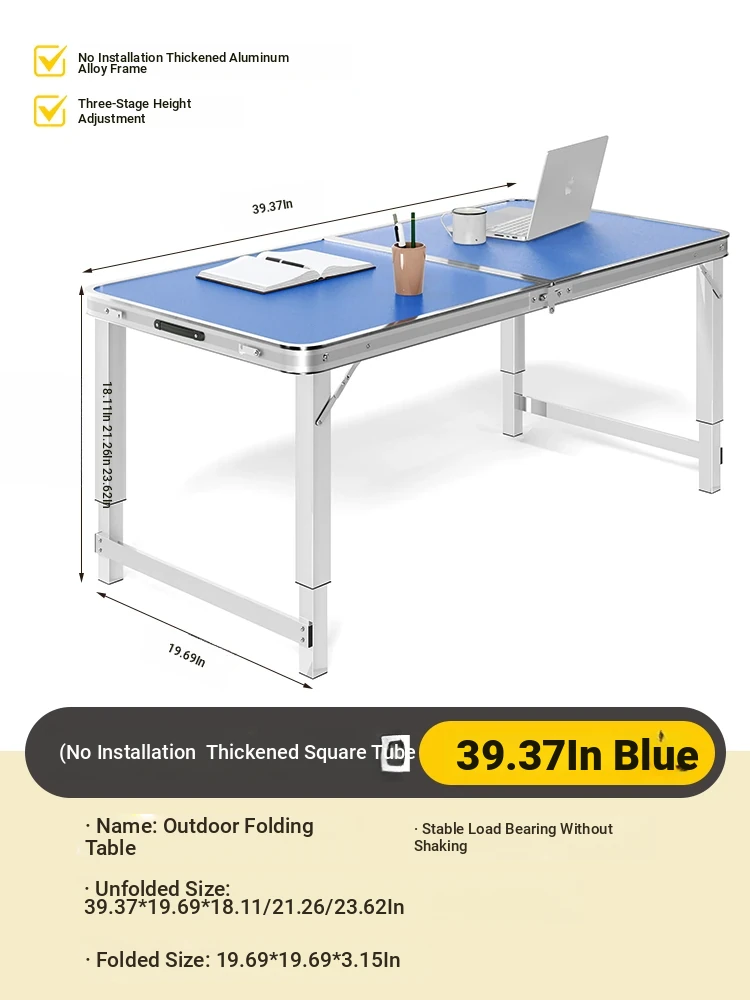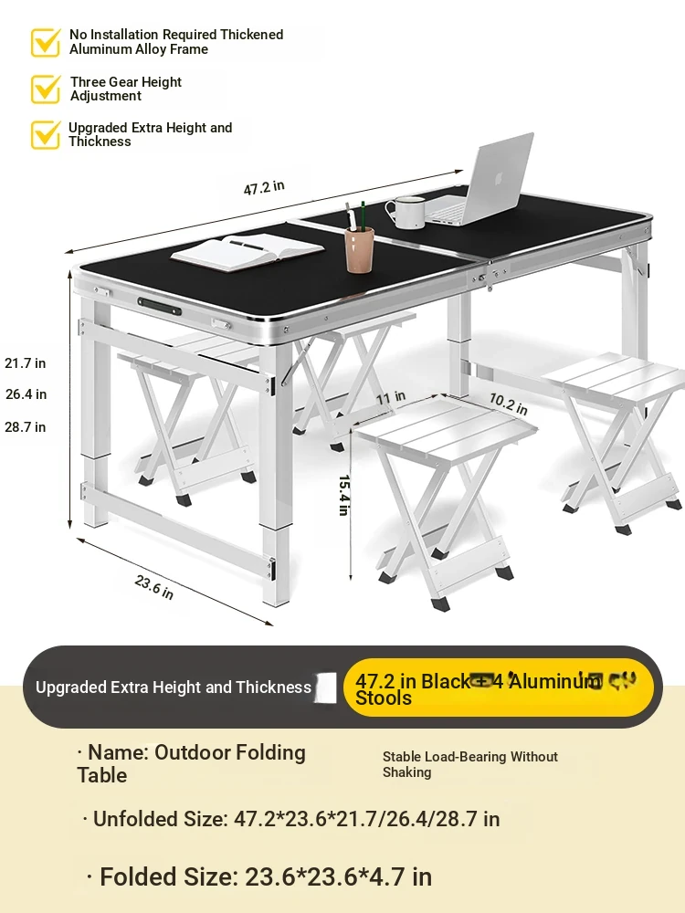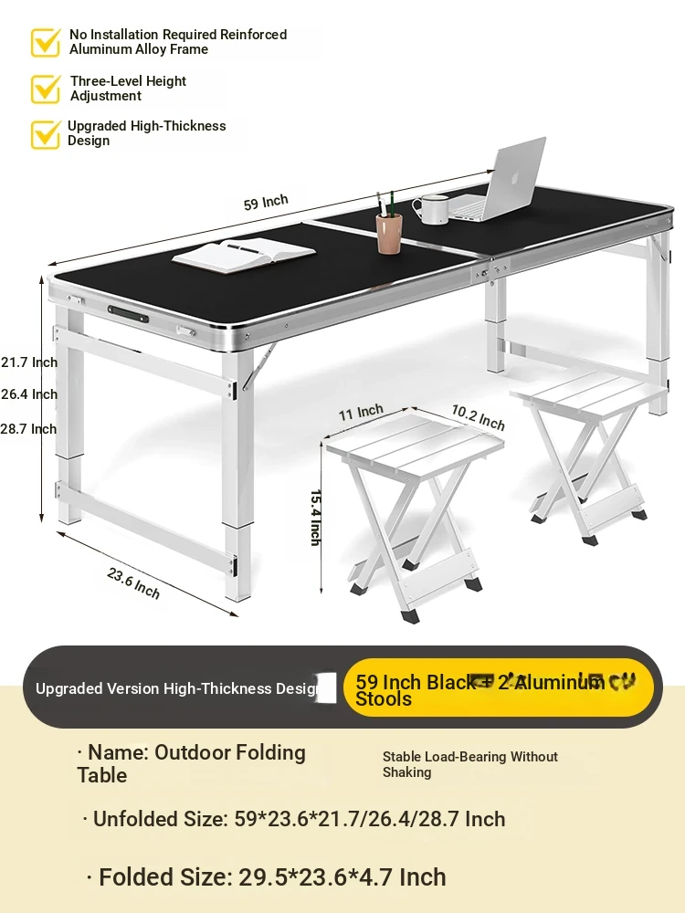 Portable Folding Outdoor Table - Adjustable Aluminum Camping Picnic Table, Easy Setup for Night Market Stalls and Chairs