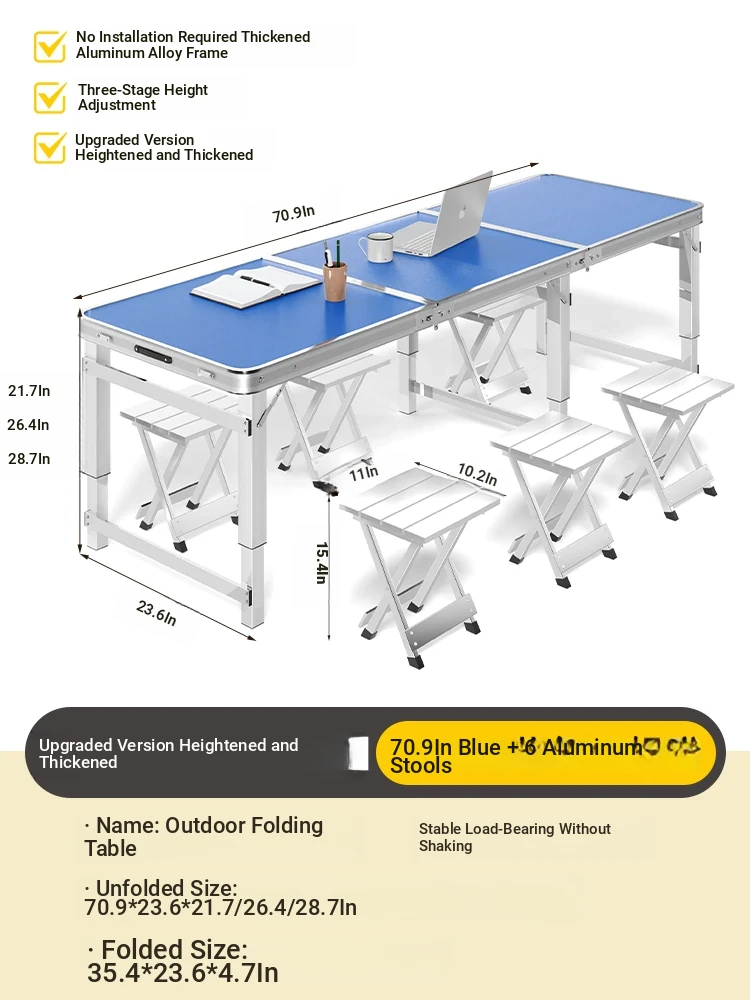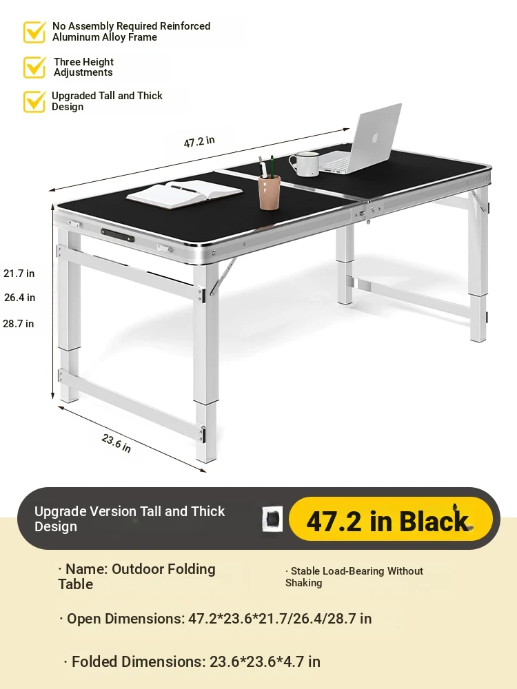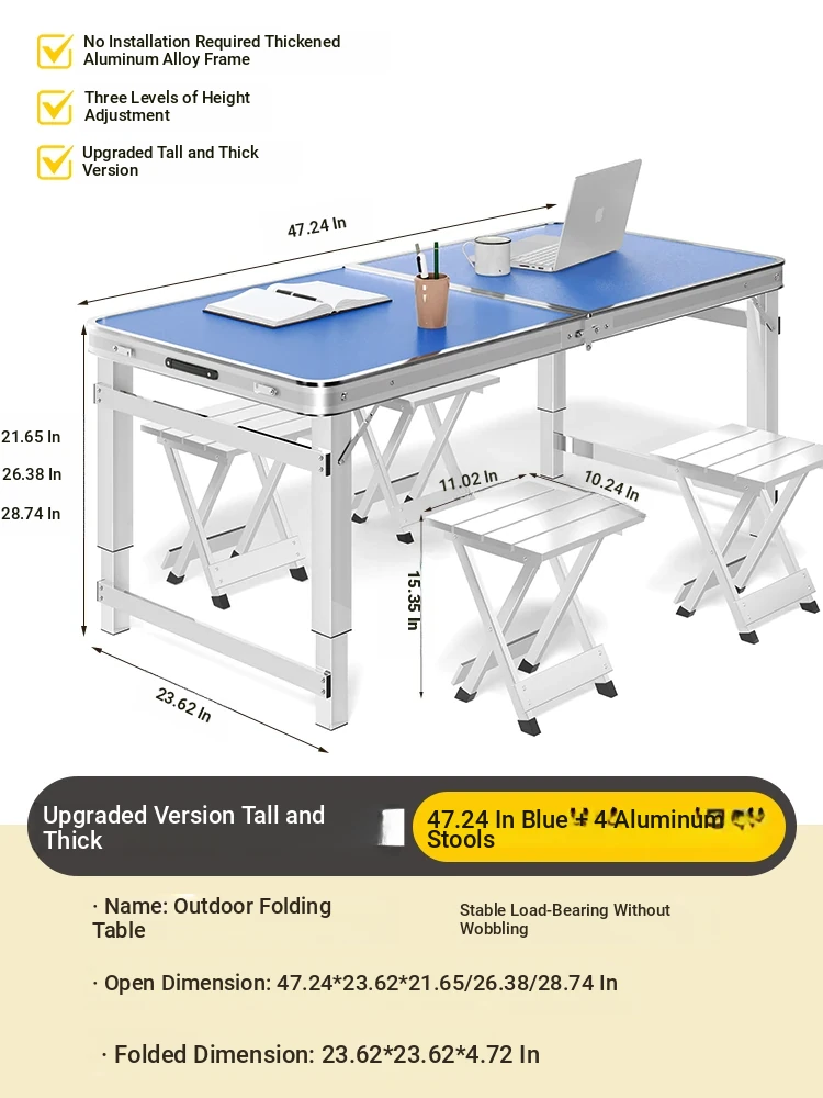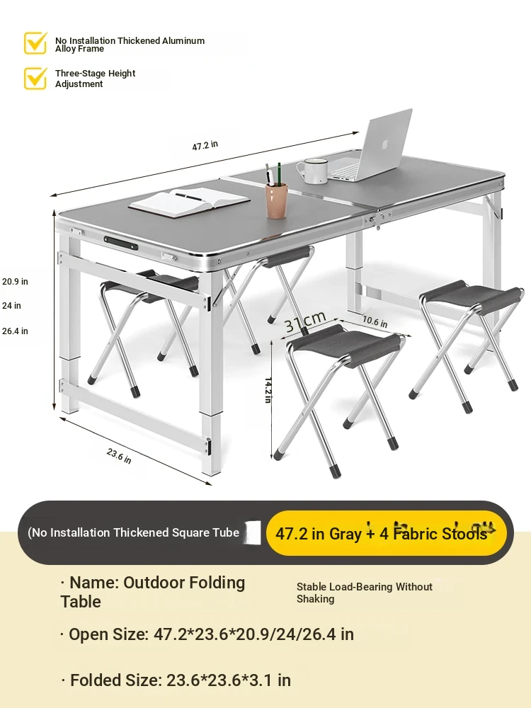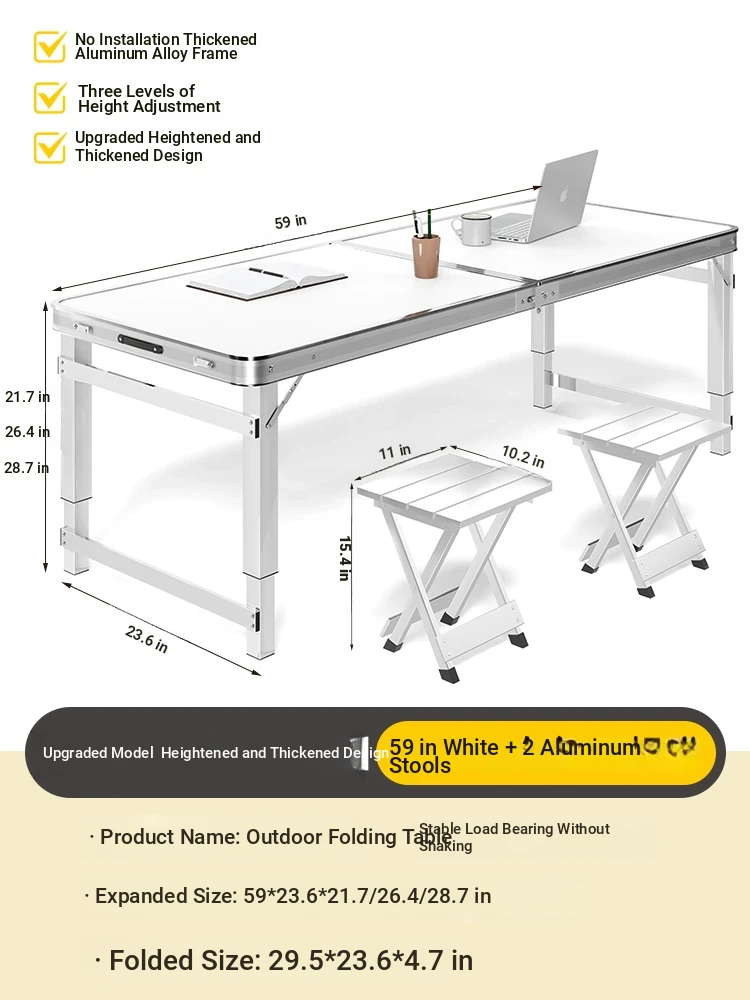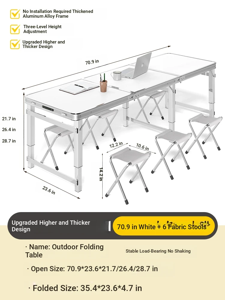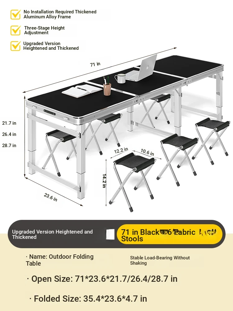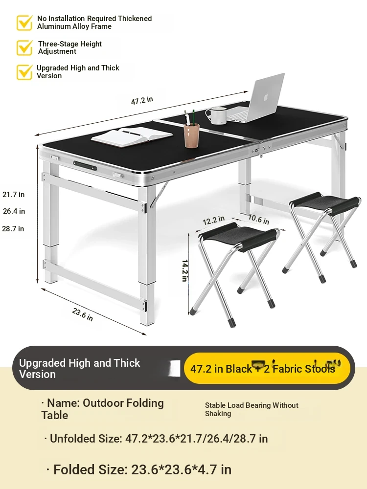 Portable Folding Outdoor Table - Adjustable Aluminum Camping Picnic Table, Easy Setup for Night Market Stalls and Chairs