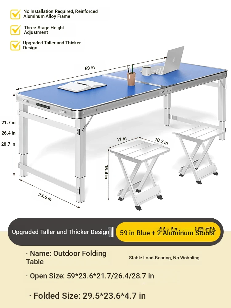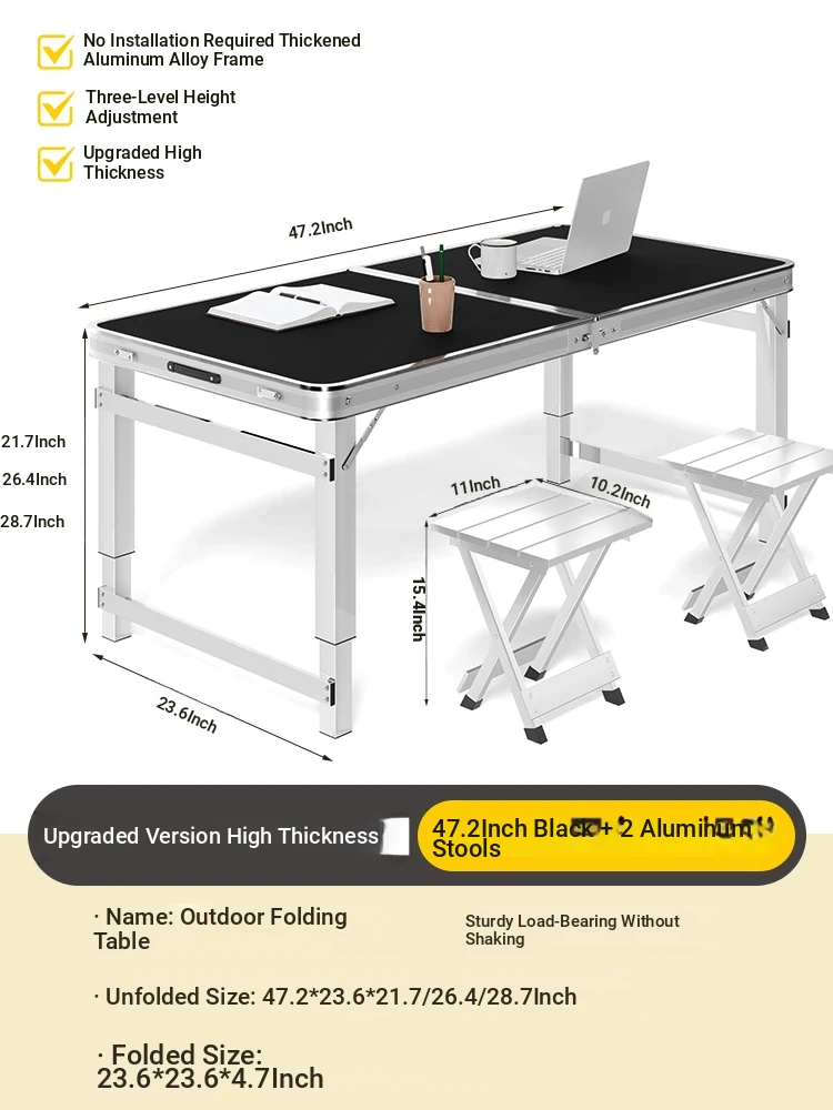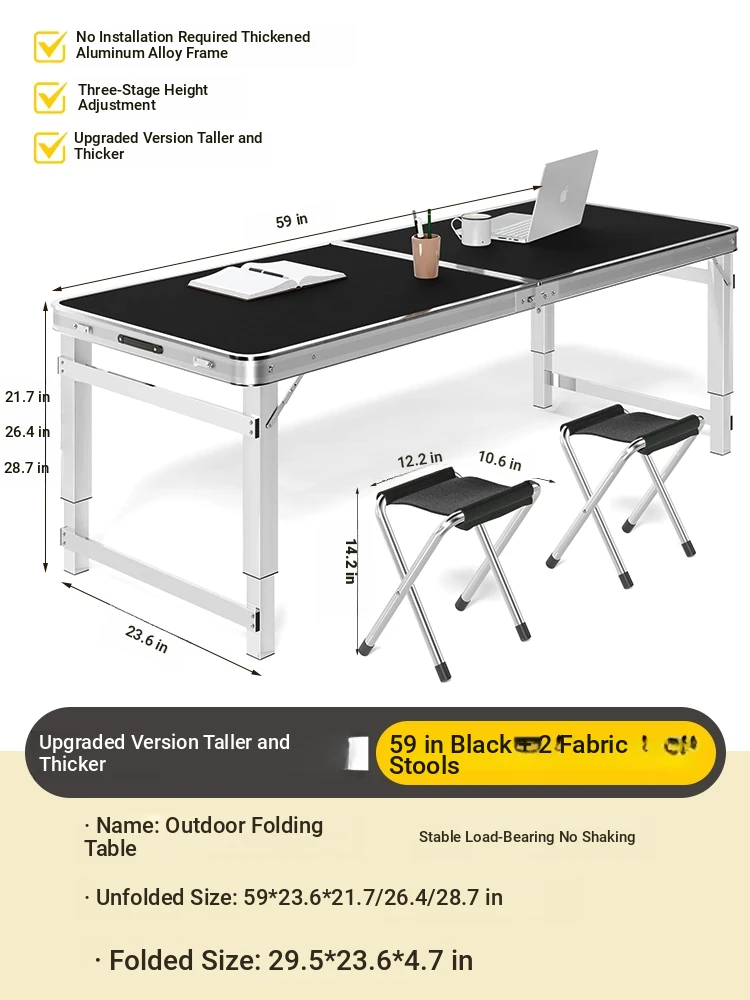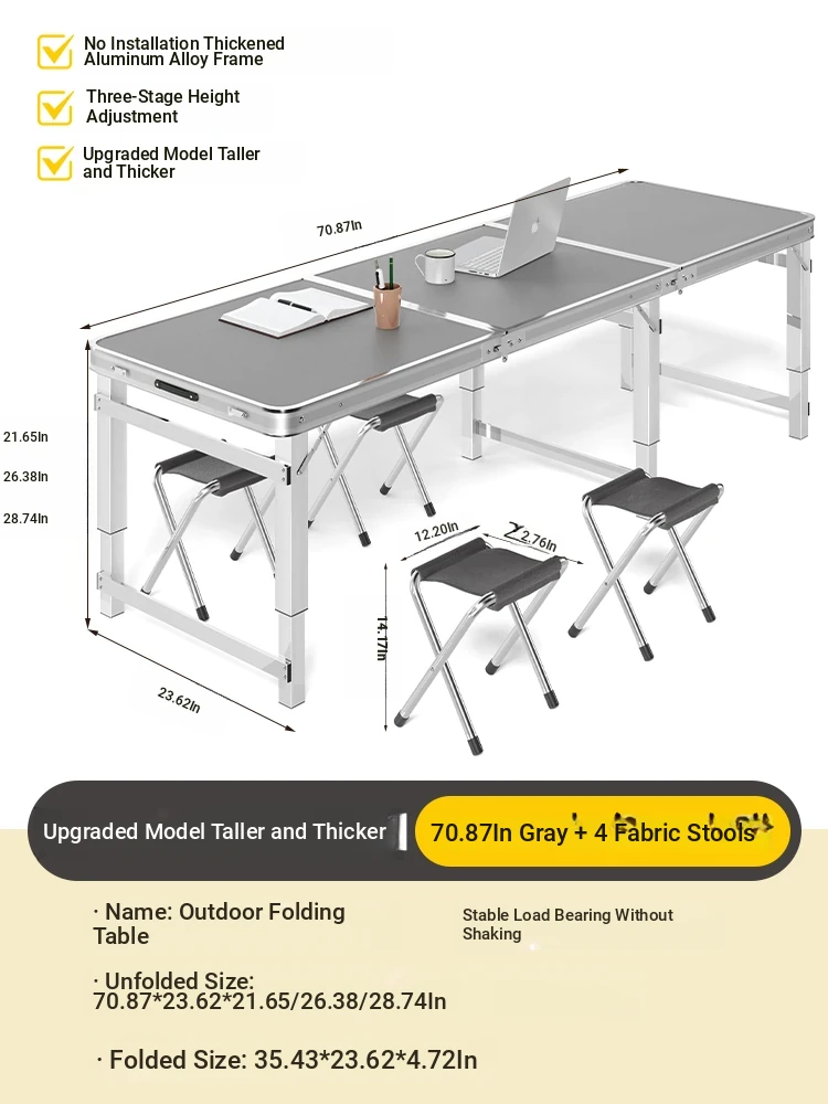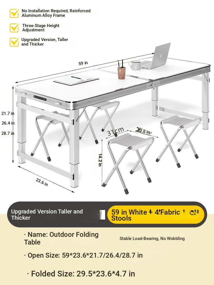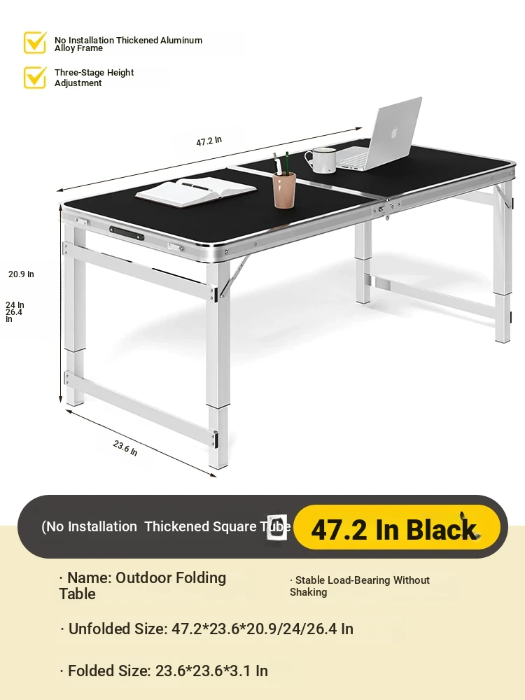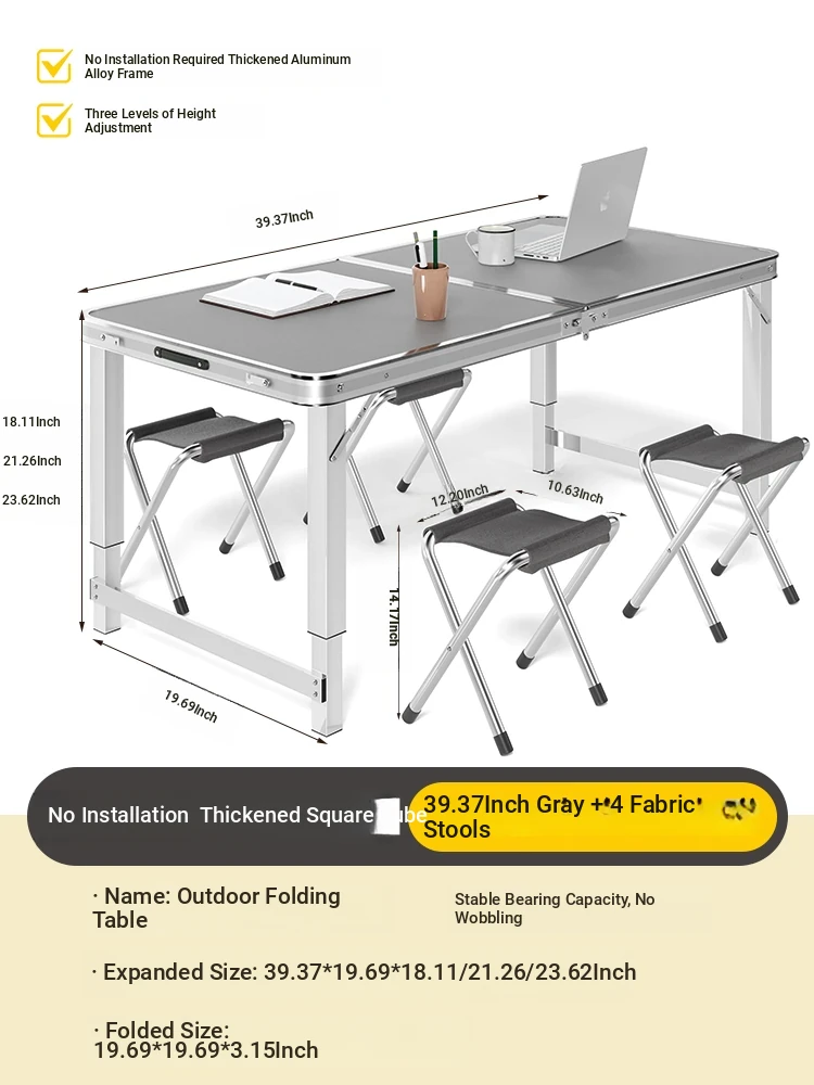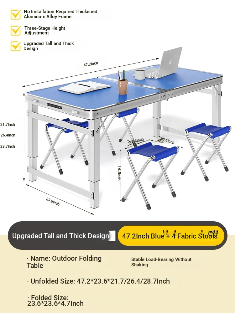 Portable Folding Outdoor Table - Adjustable Aluminum Camping Picnic Table, Easy Setup for Night Market Stalls and Chairs