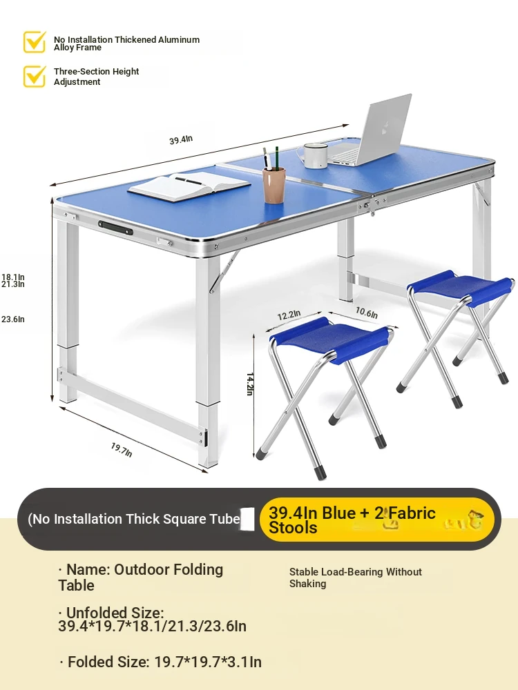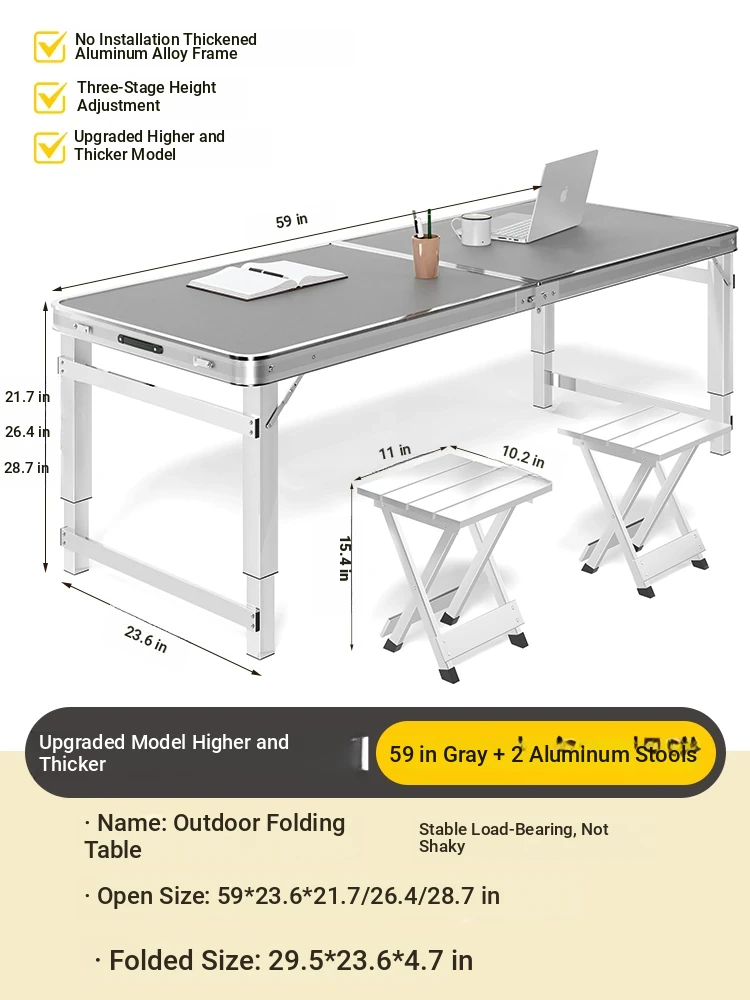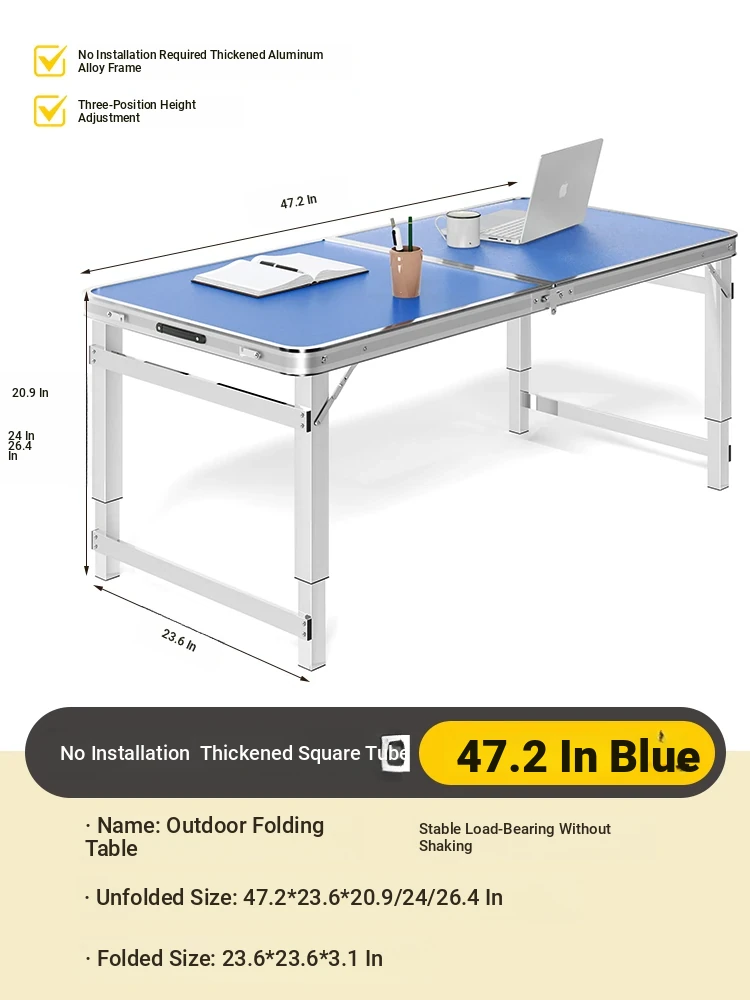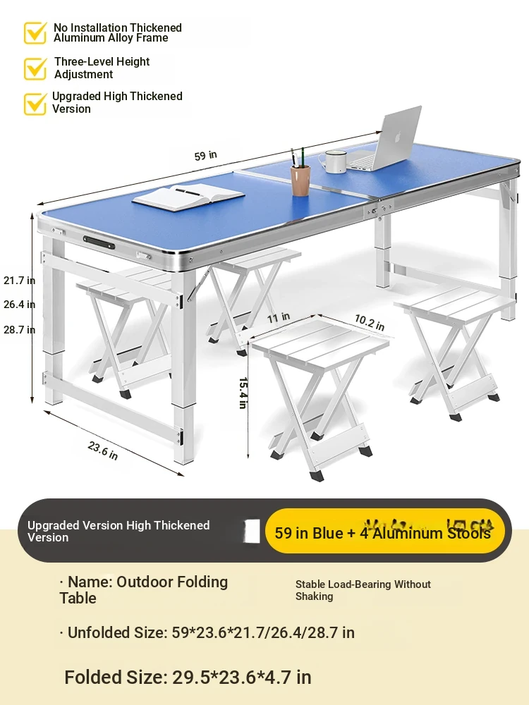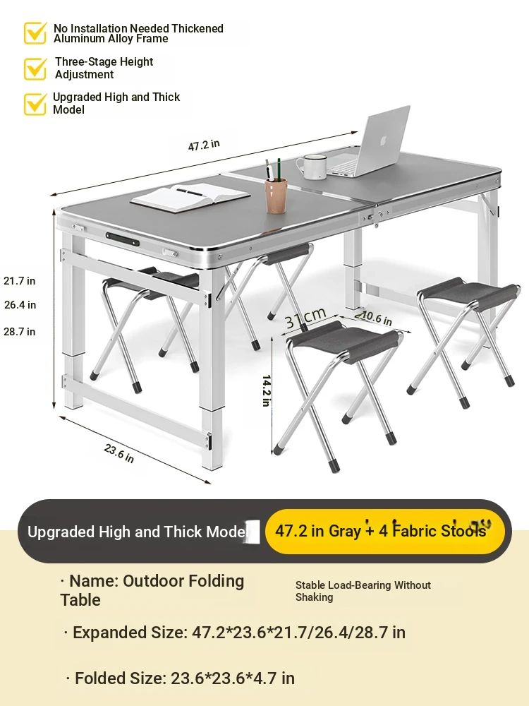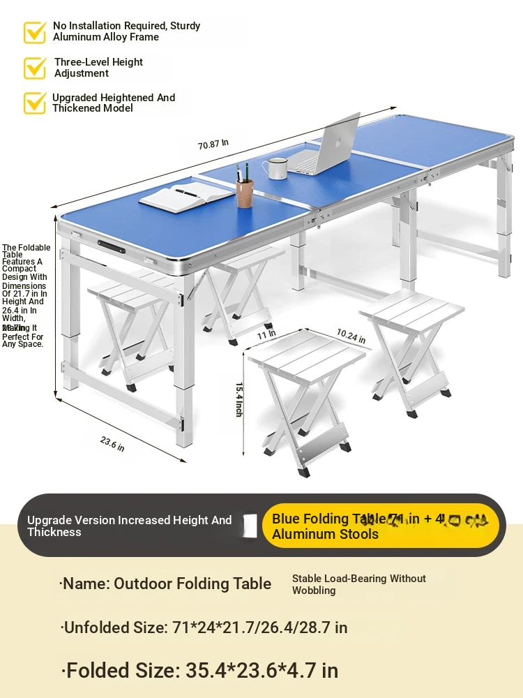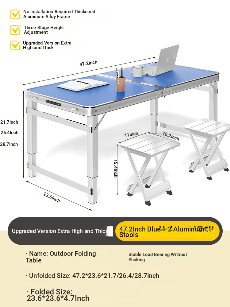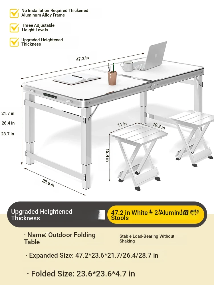 Portable Folding Outdoor Table - Adjustable Aluminum Camping Picnic Table, Easy Setup for Night Market Stalls and Chairs