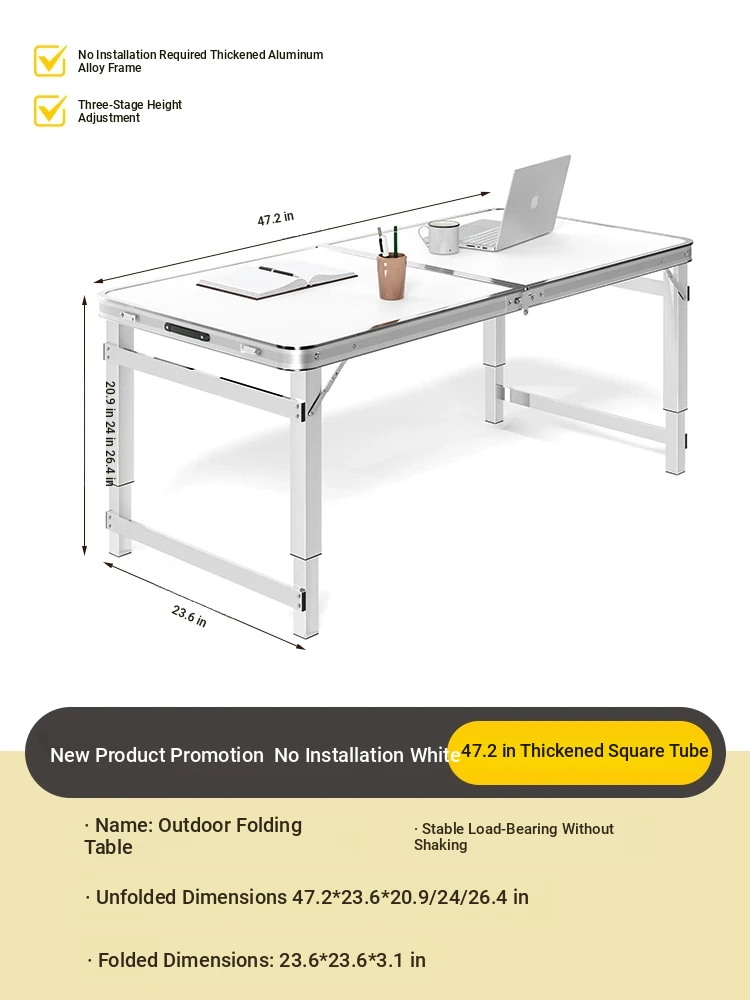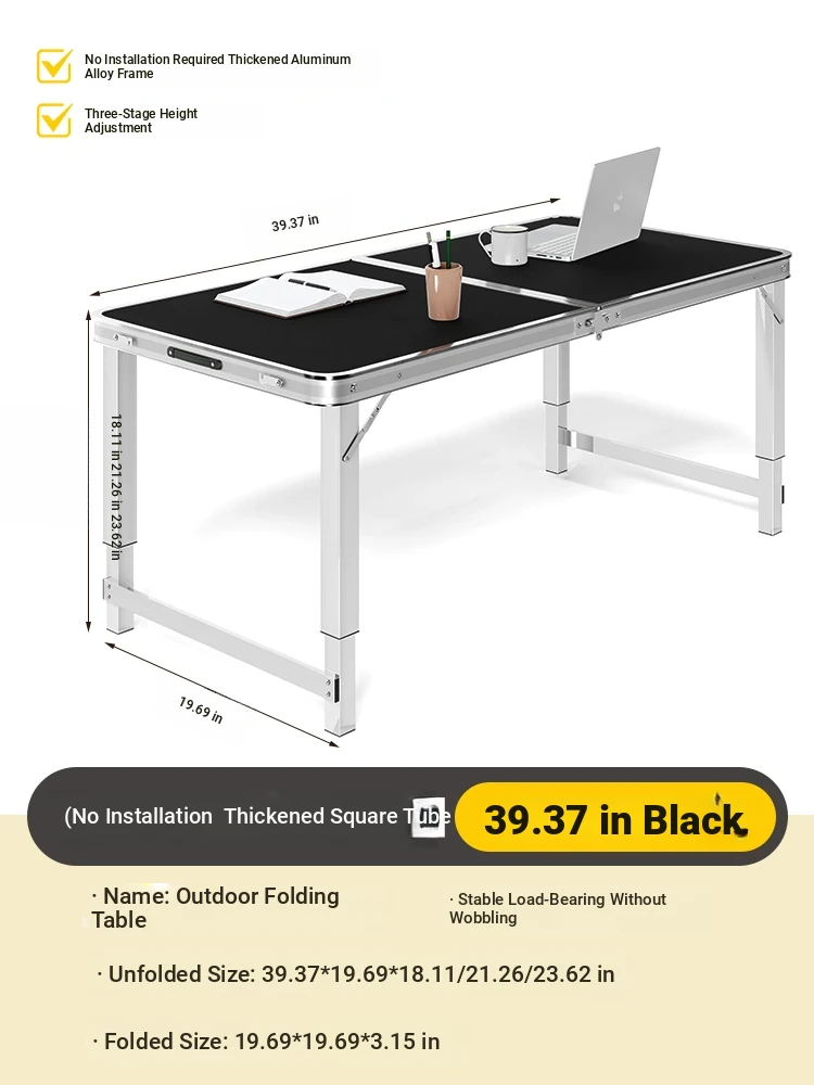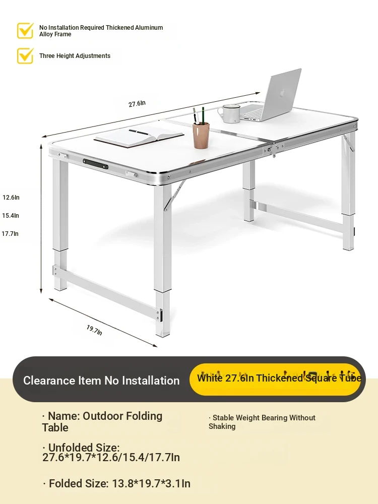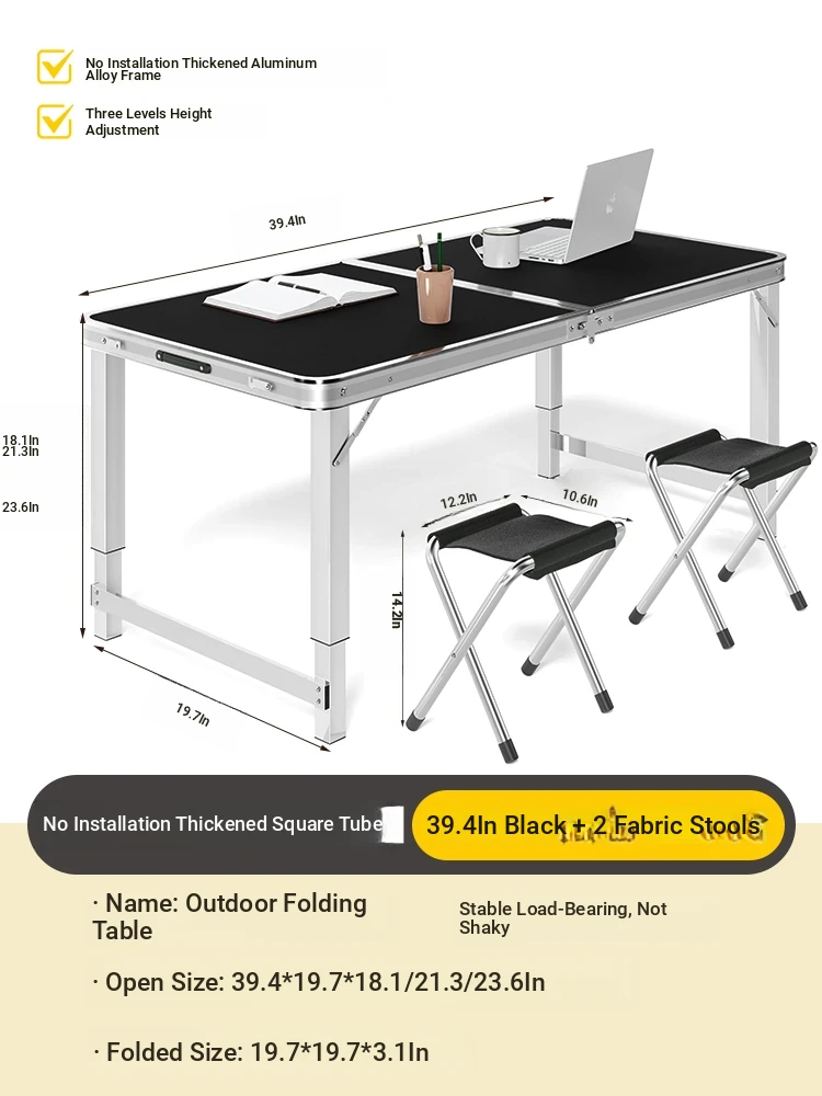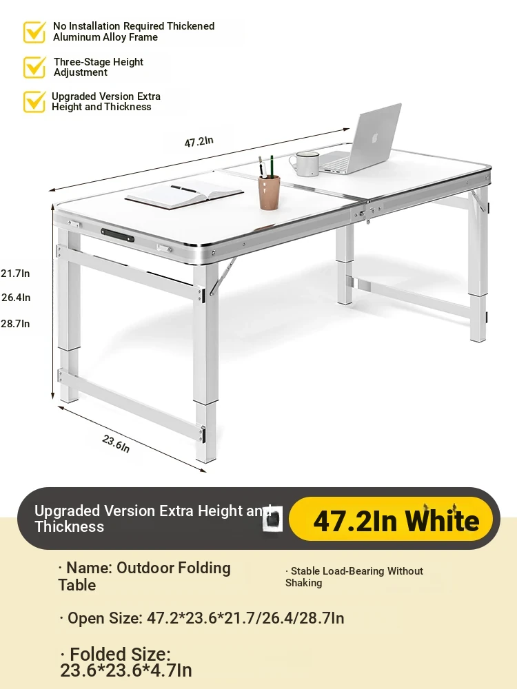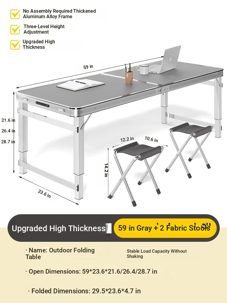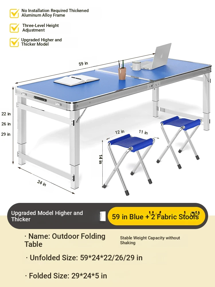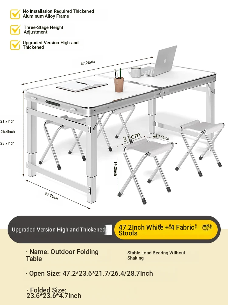 Portable Folding Outdoor Table - Adjustable Aluminum Camping Picnic Table, Easy Setup for Night Market Stalls and Chairs