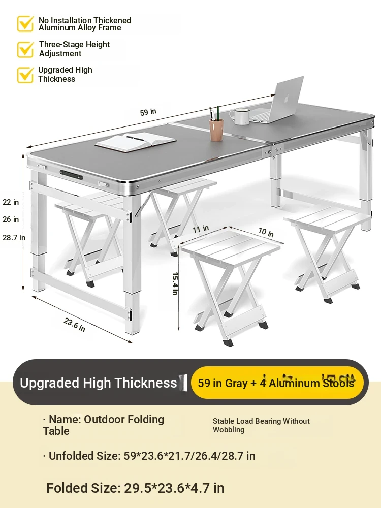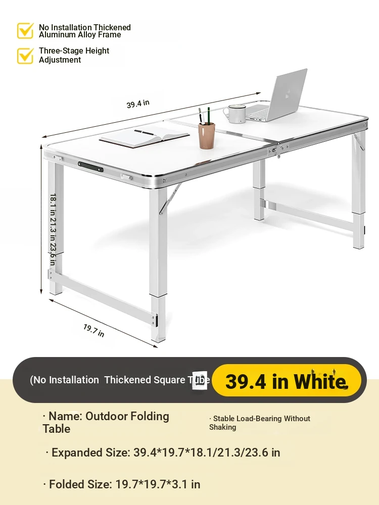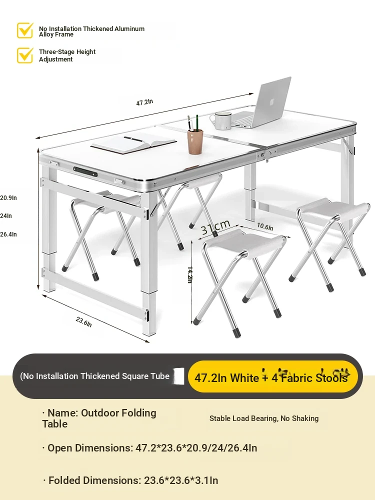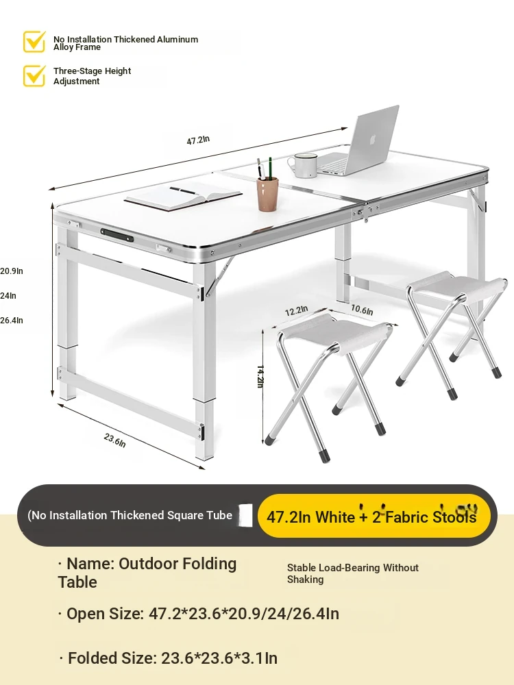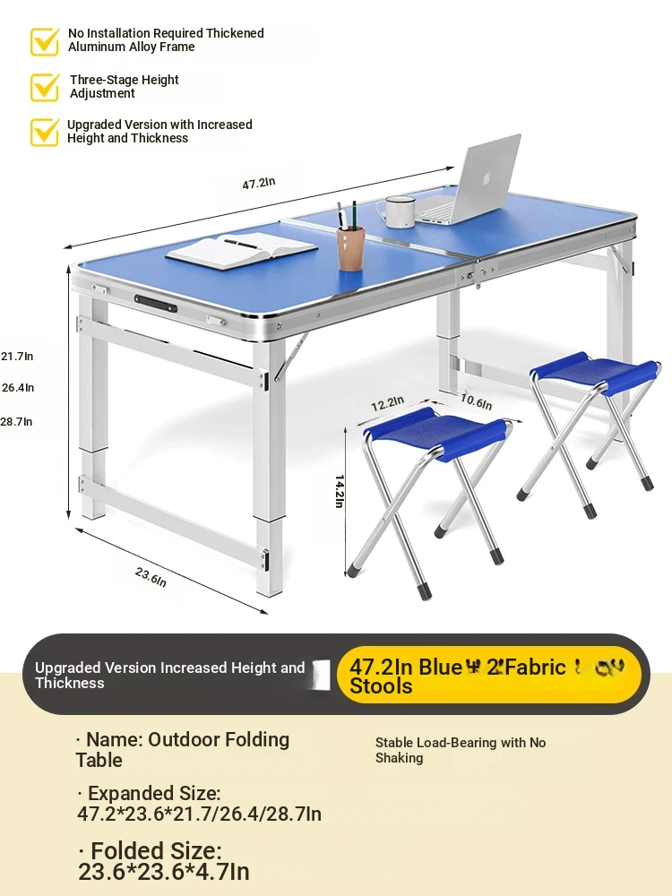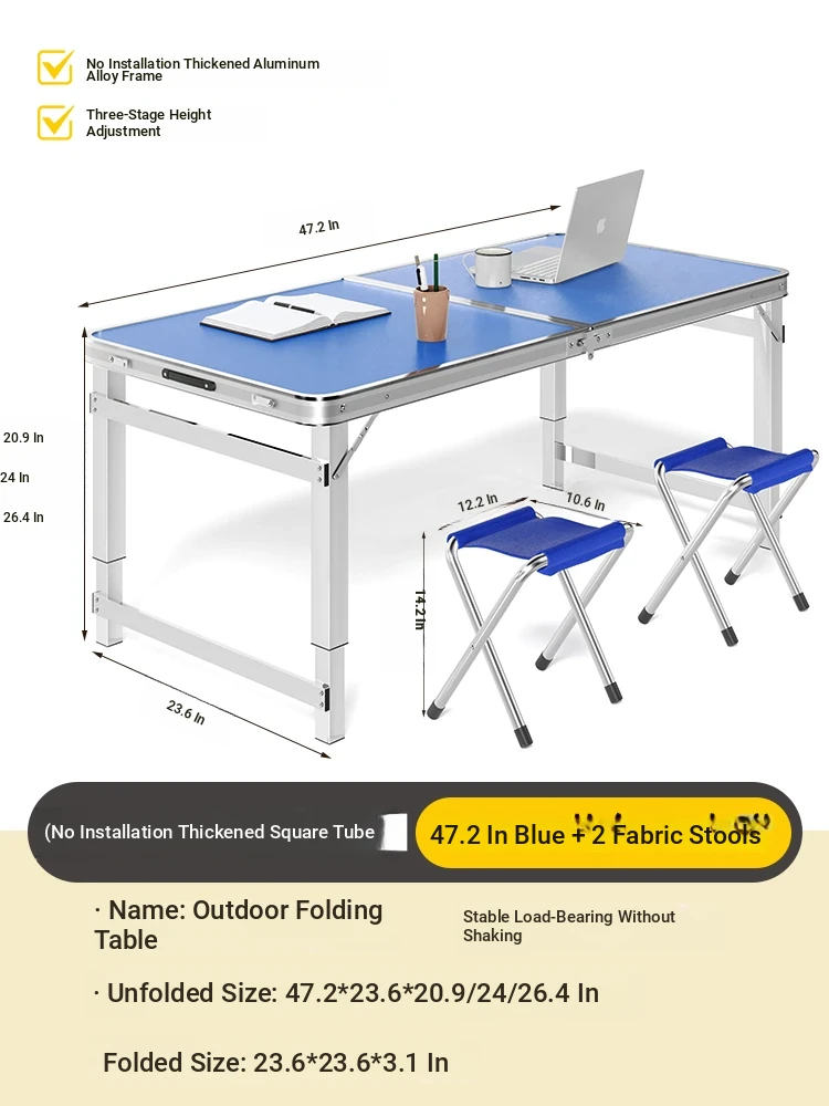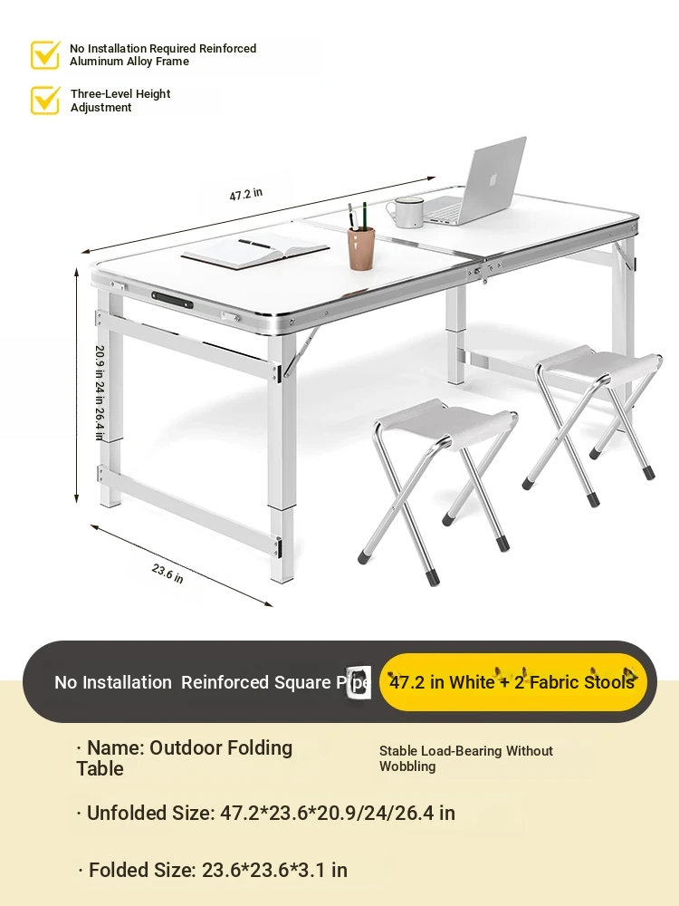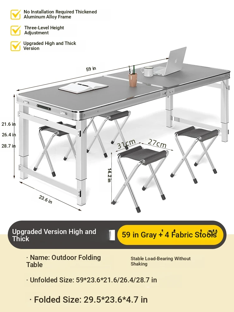 Portable Folding Outdoor Table - Adjustable Aluminum Camping Picnic Table, Easy Setup for Night Market Stalls and Chairs