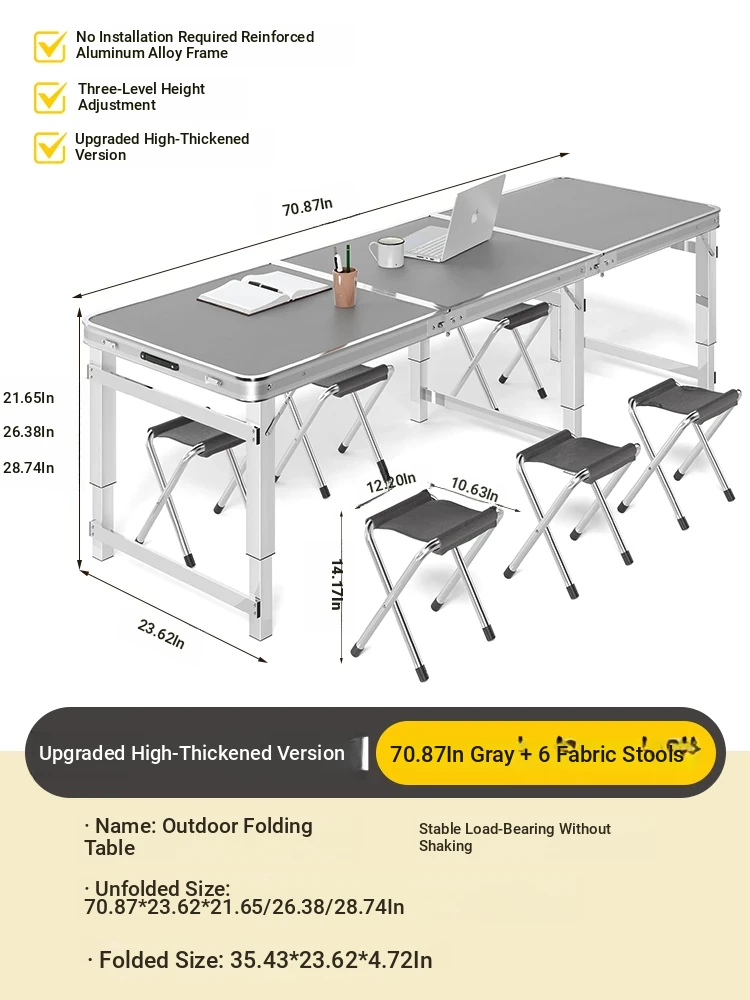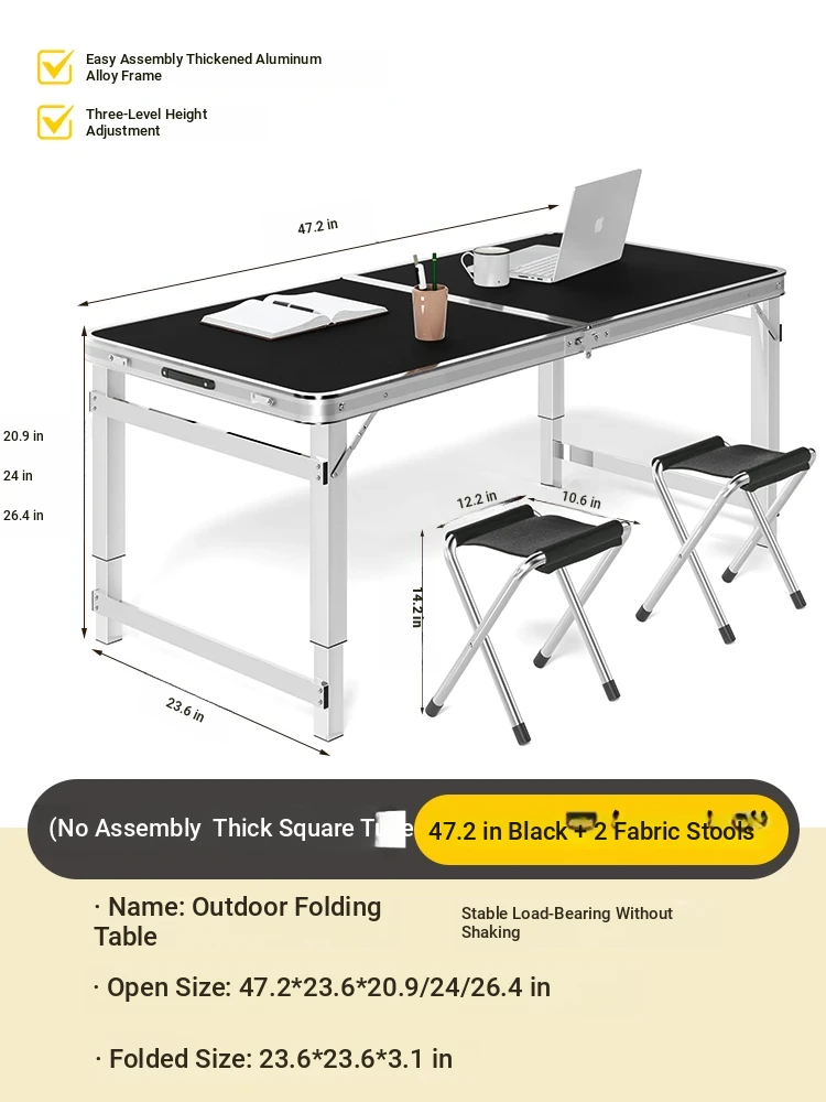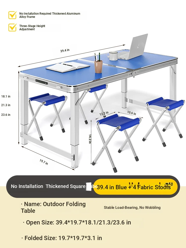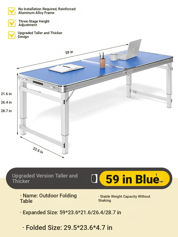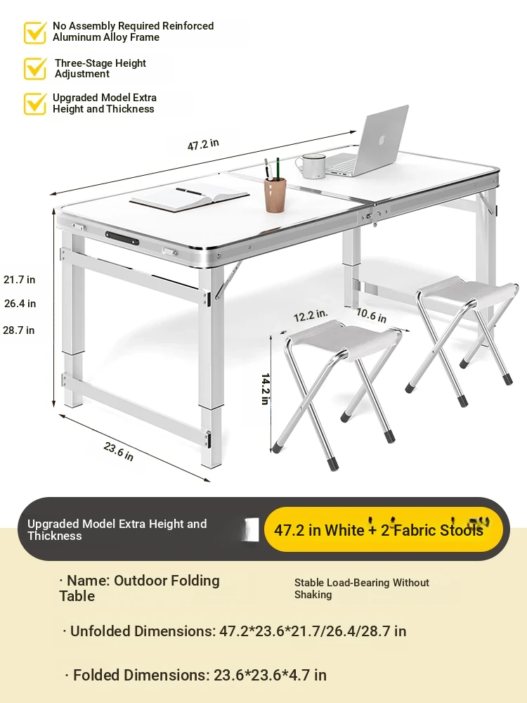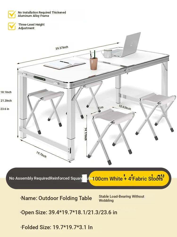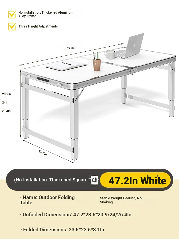 Portable Folding Outdoor Table - Adjustable Aluminum Camping Picnic Table, Easy Setup for Night Market Stalls and Chairs