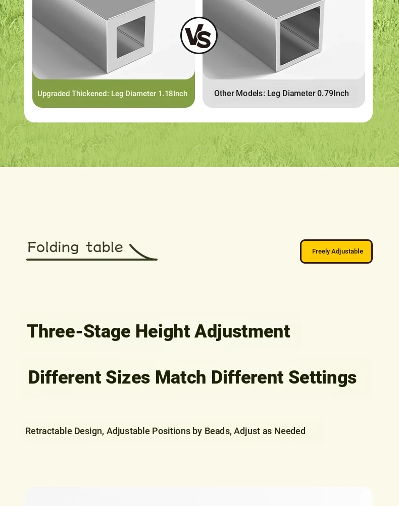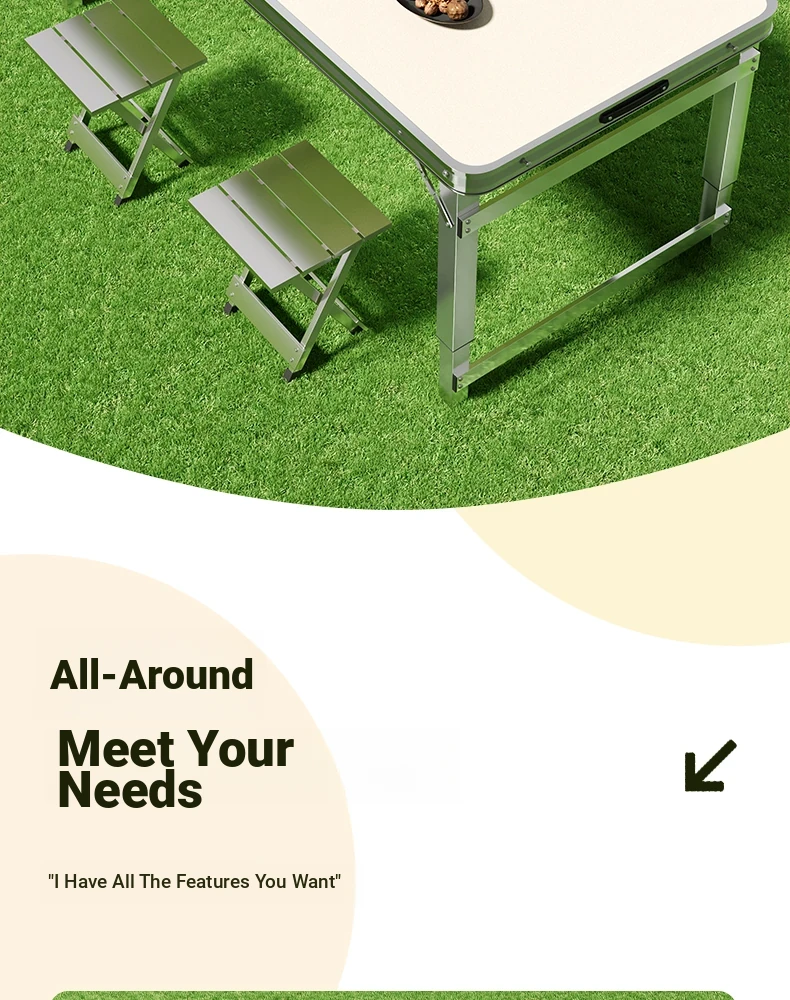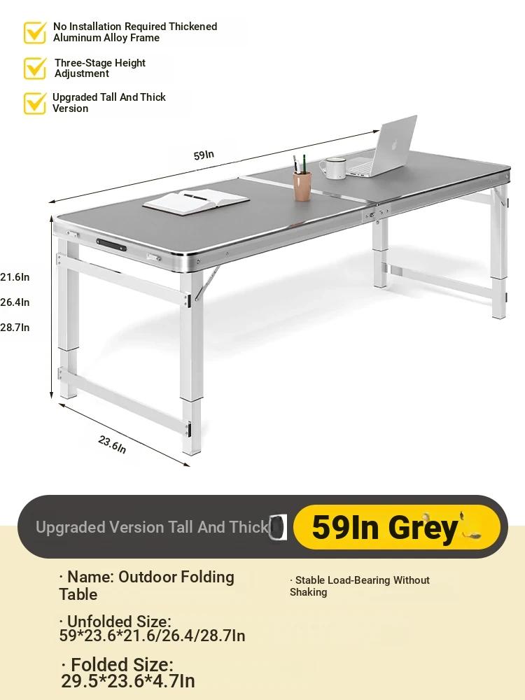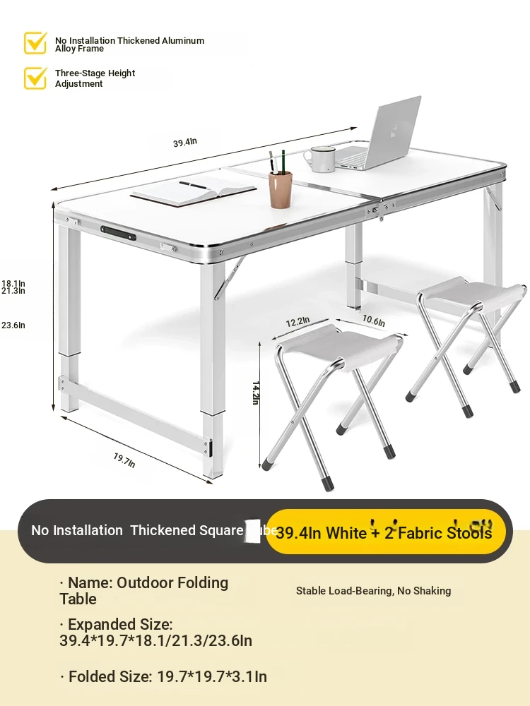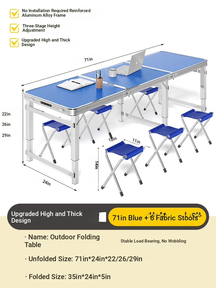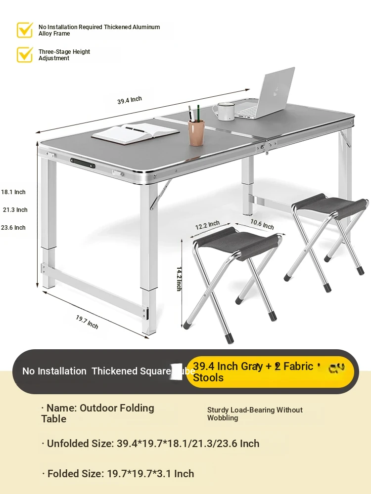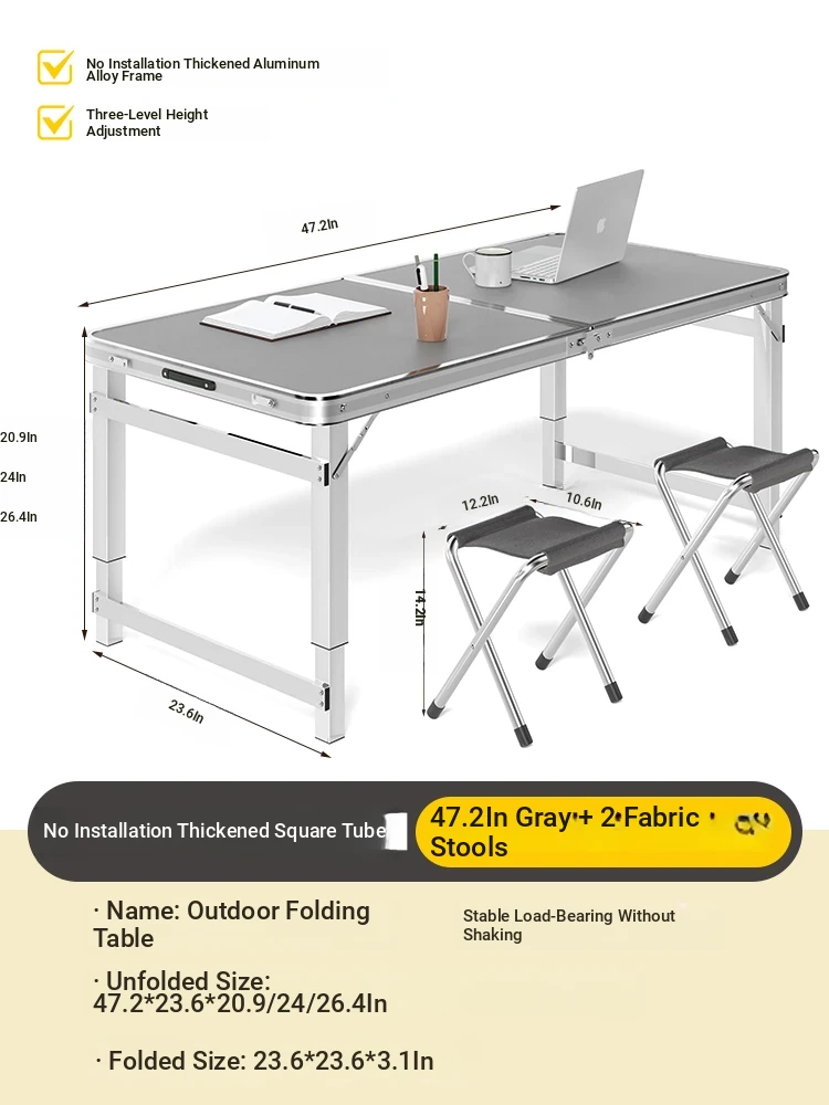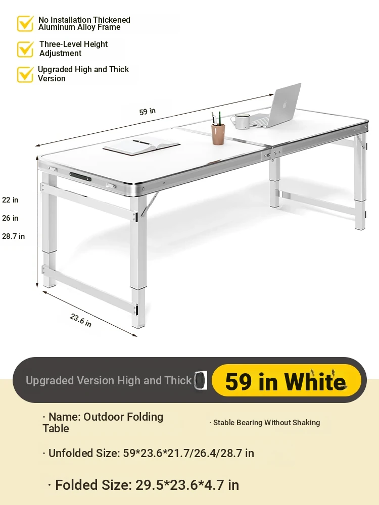 Portable Folding Outdoor Table - Adjustable Aluminum Camping Picnic Table, Easy Setup for Night Market Stalls and Chairs