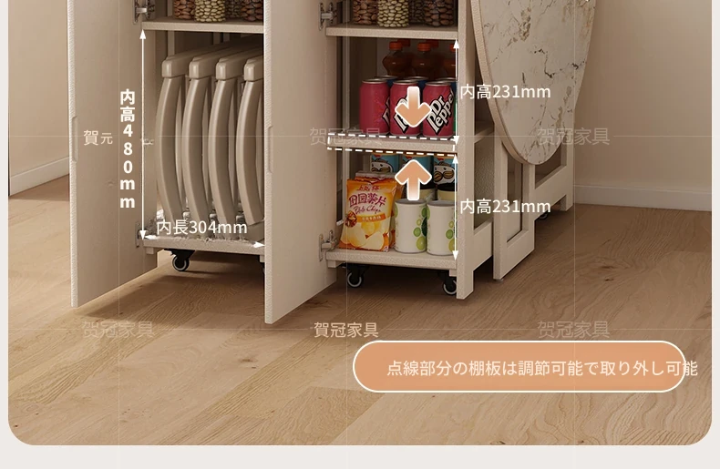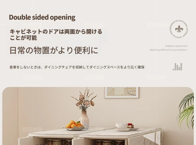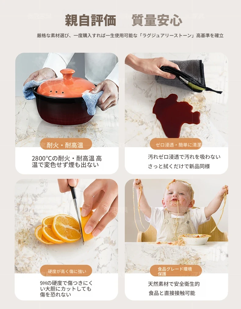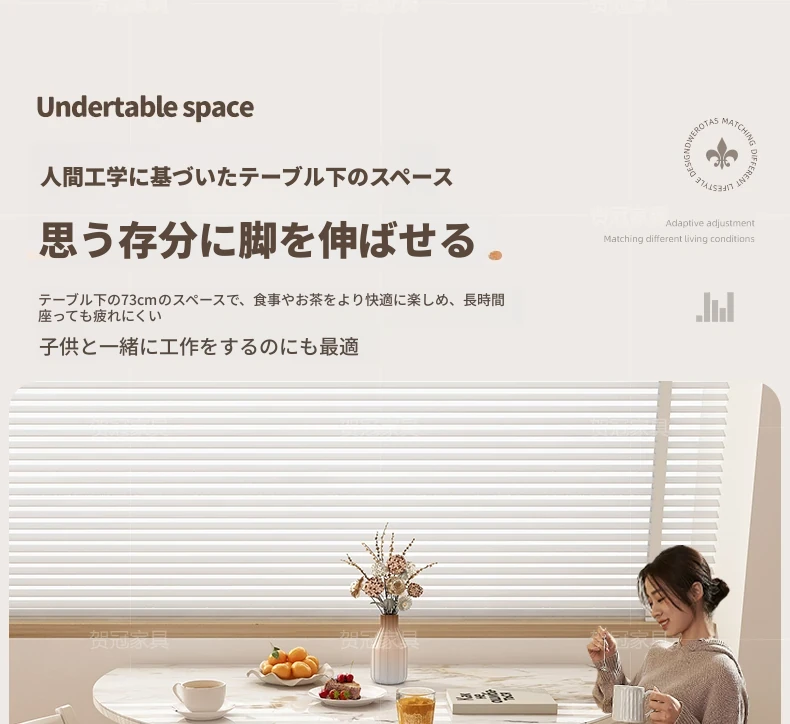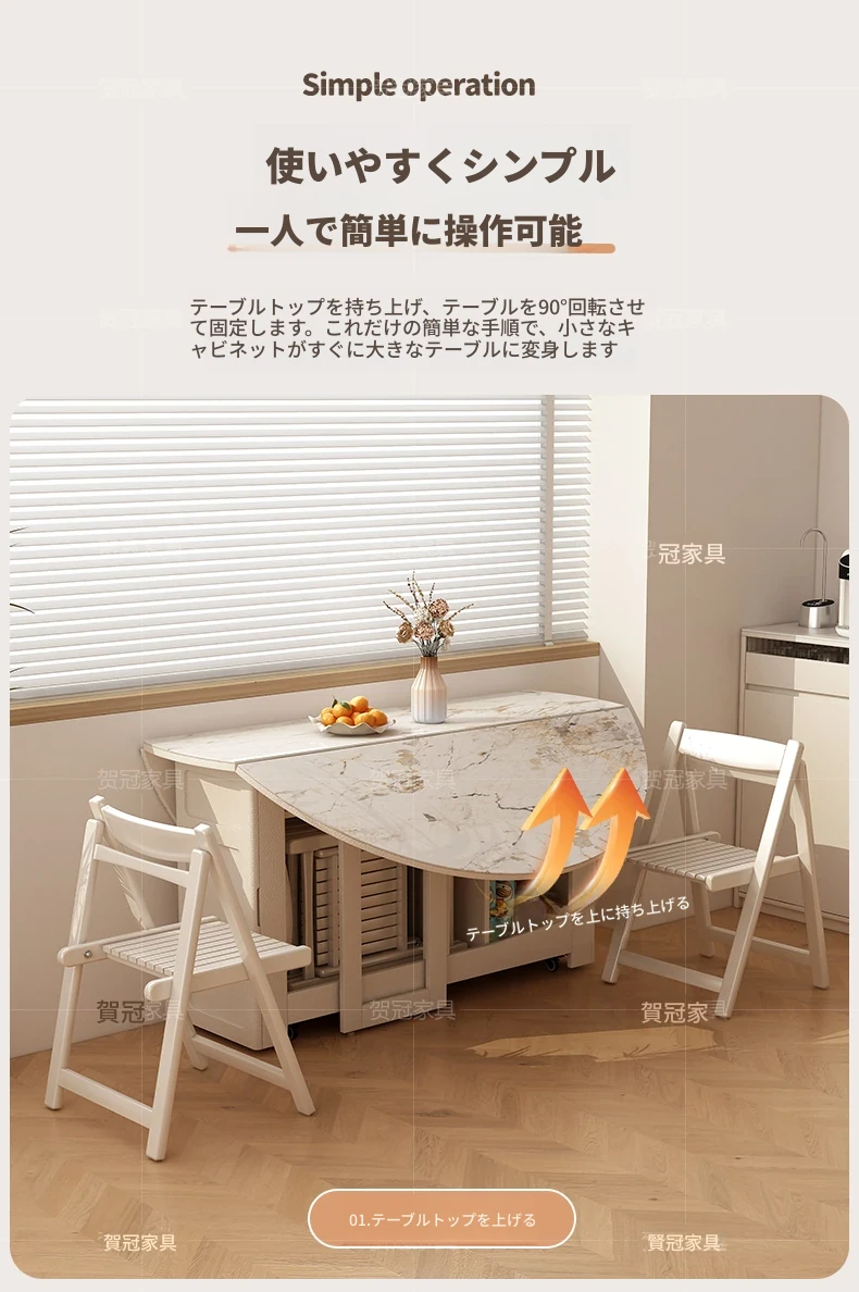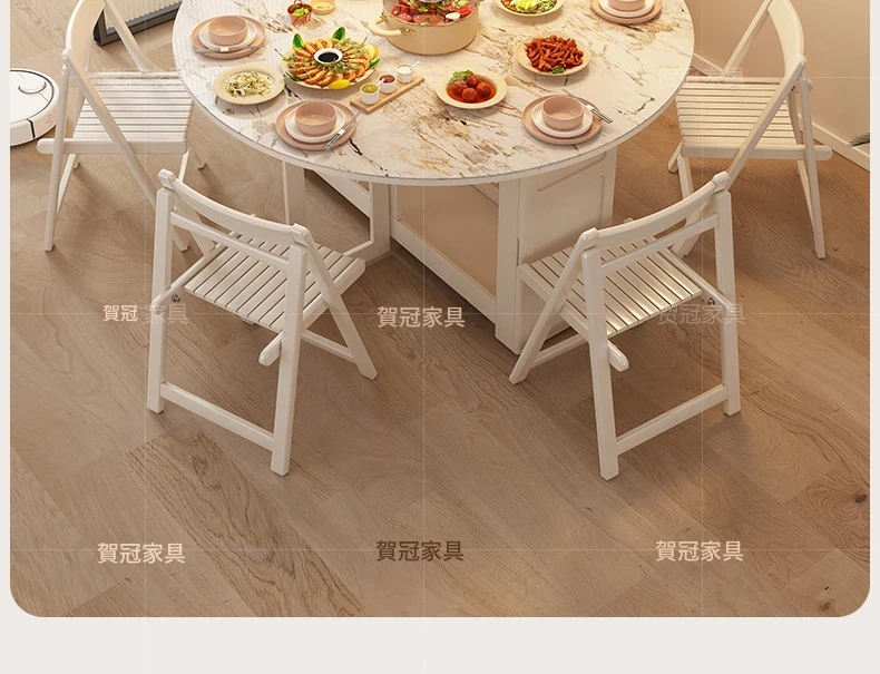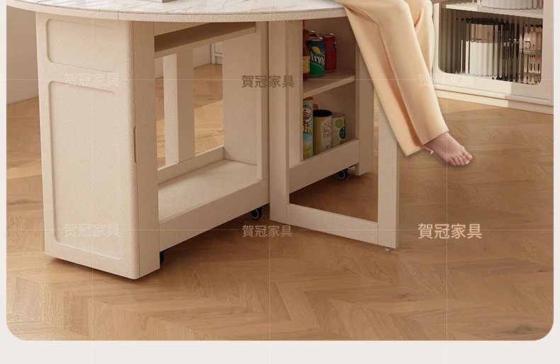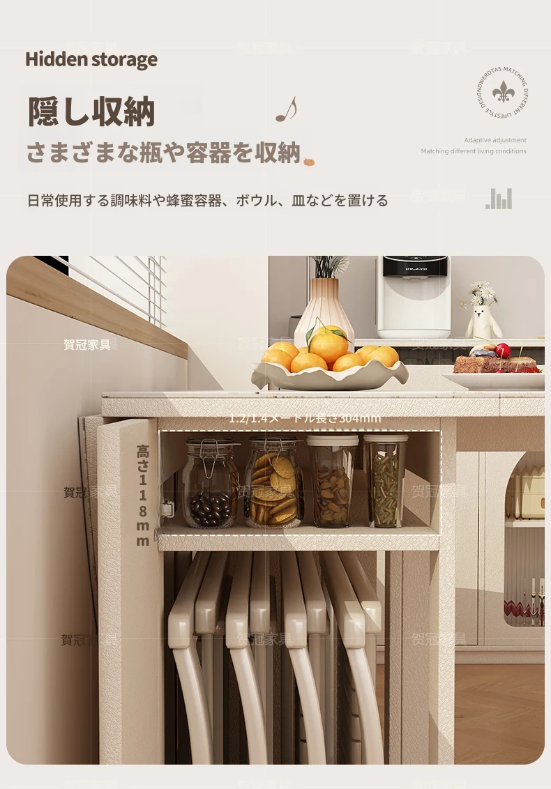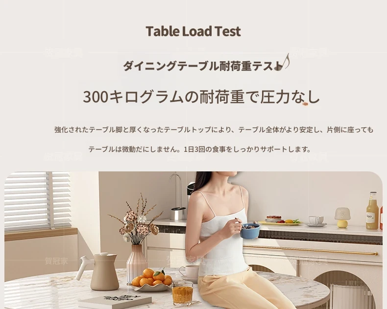 【魅力十足】クリーム風岩板伸縮ダイニングセット・電磁調理器付き、多機能丸型/長方形テーブル・10人用実木製食卓